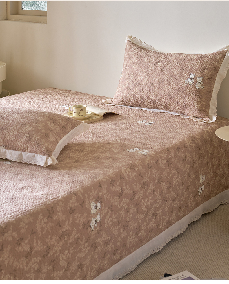 漫仙阁家纺 2025新款热卖法式花边款加厚床盖床盖三件套 暗香