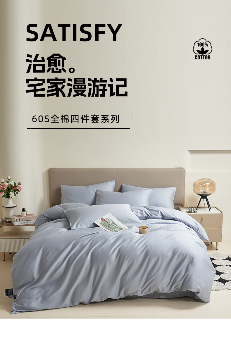当前位置: 91家纺网 > 商品网购 > 床品套件 > 四件套 > 全棉普通四件套 > 暖芯家纺 2025新款60S黑标全棉四件套 浅蓝灰