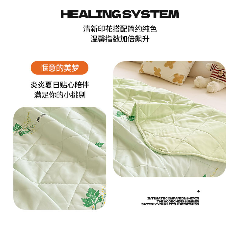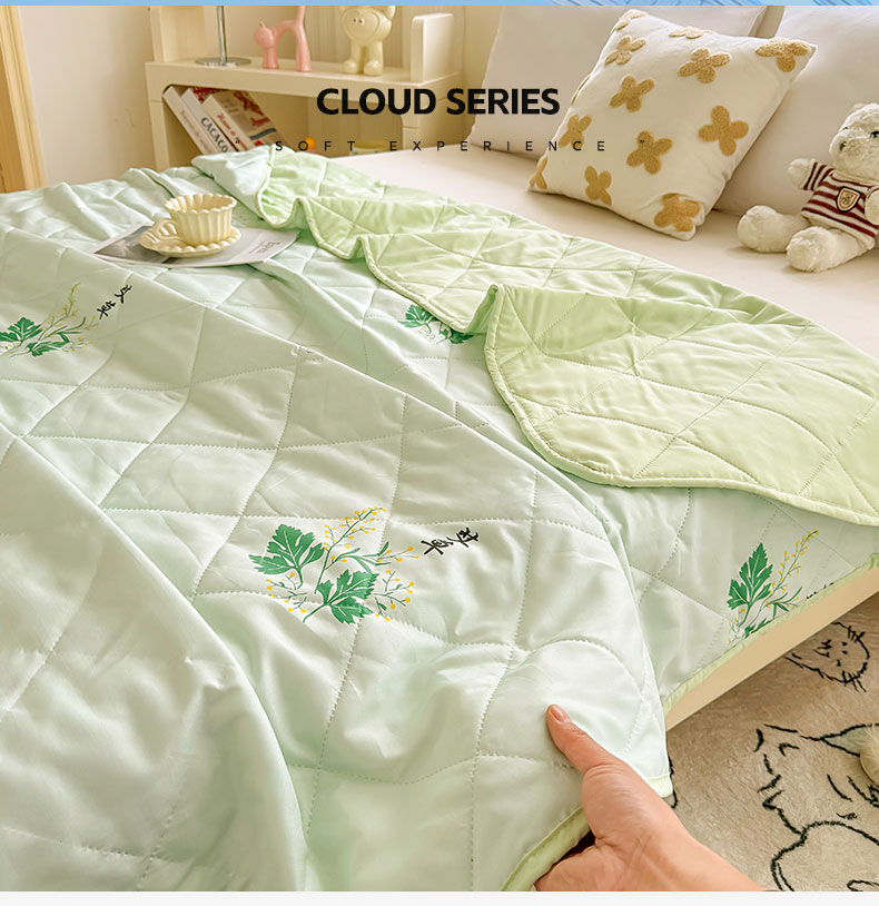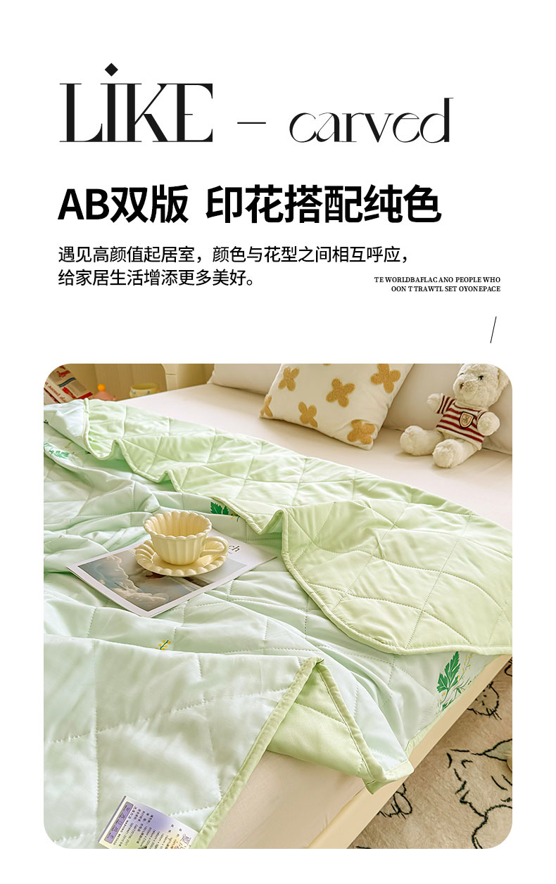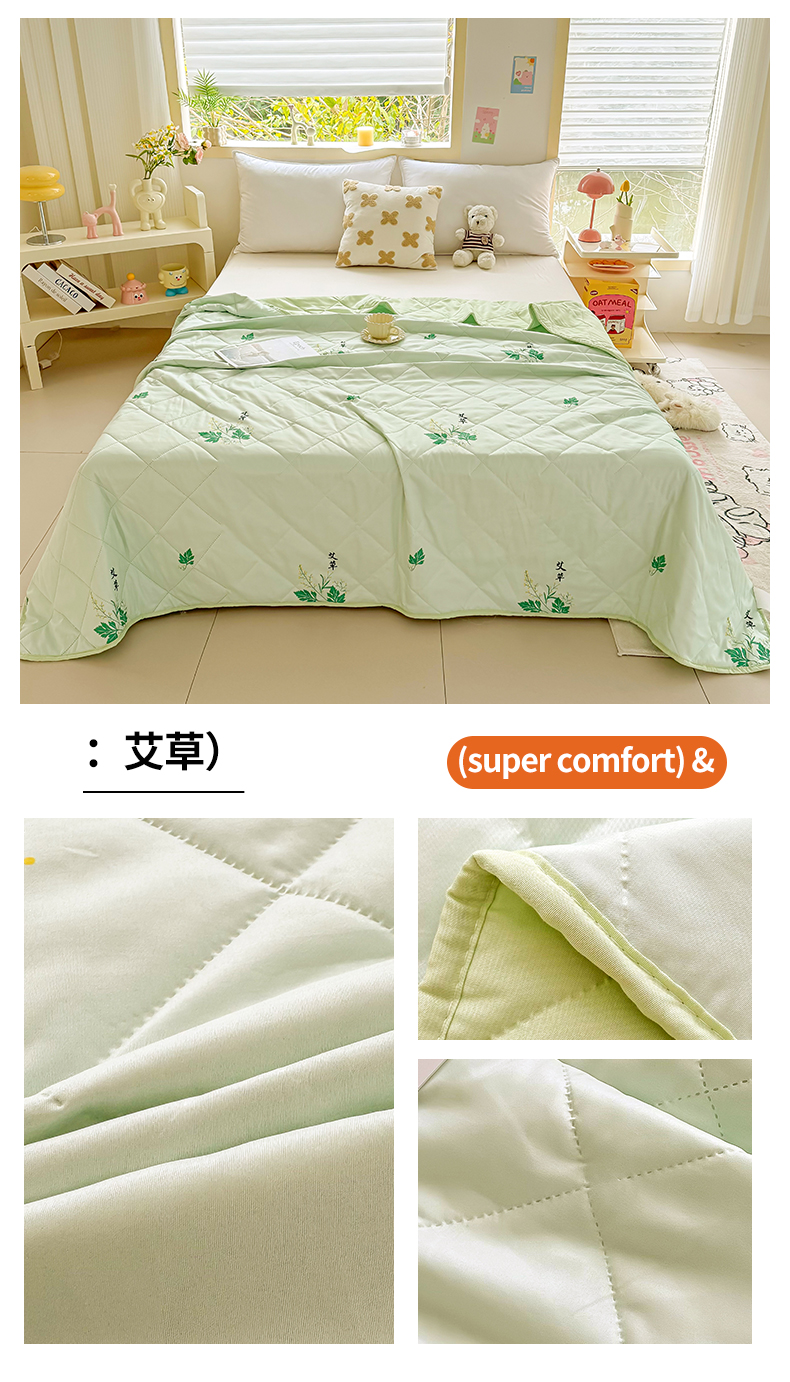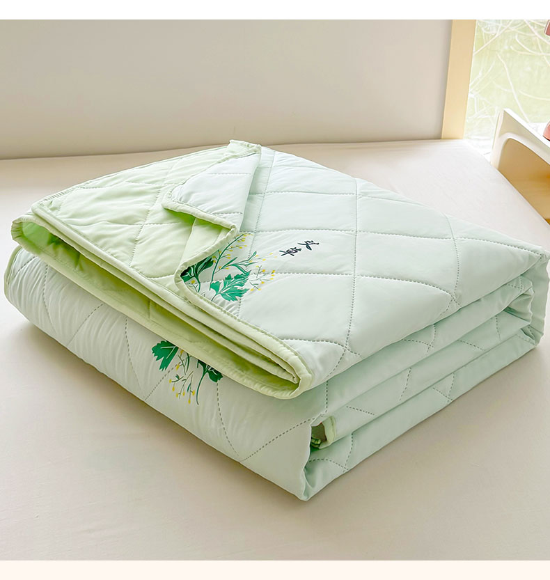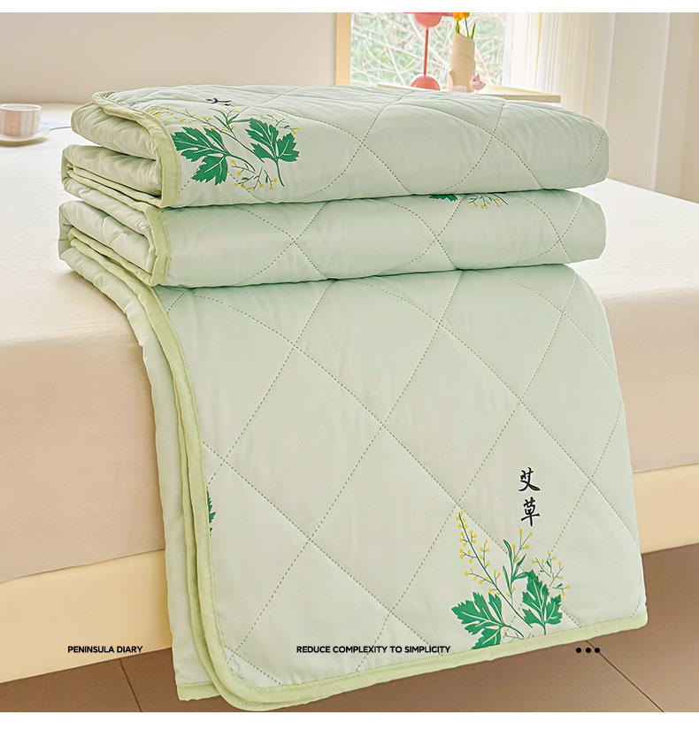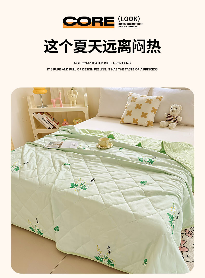 憨豆家纺 2025新款纳米印花超声波夏被简约可机洗空调被夏凉被礼品被直播跨境 艾草