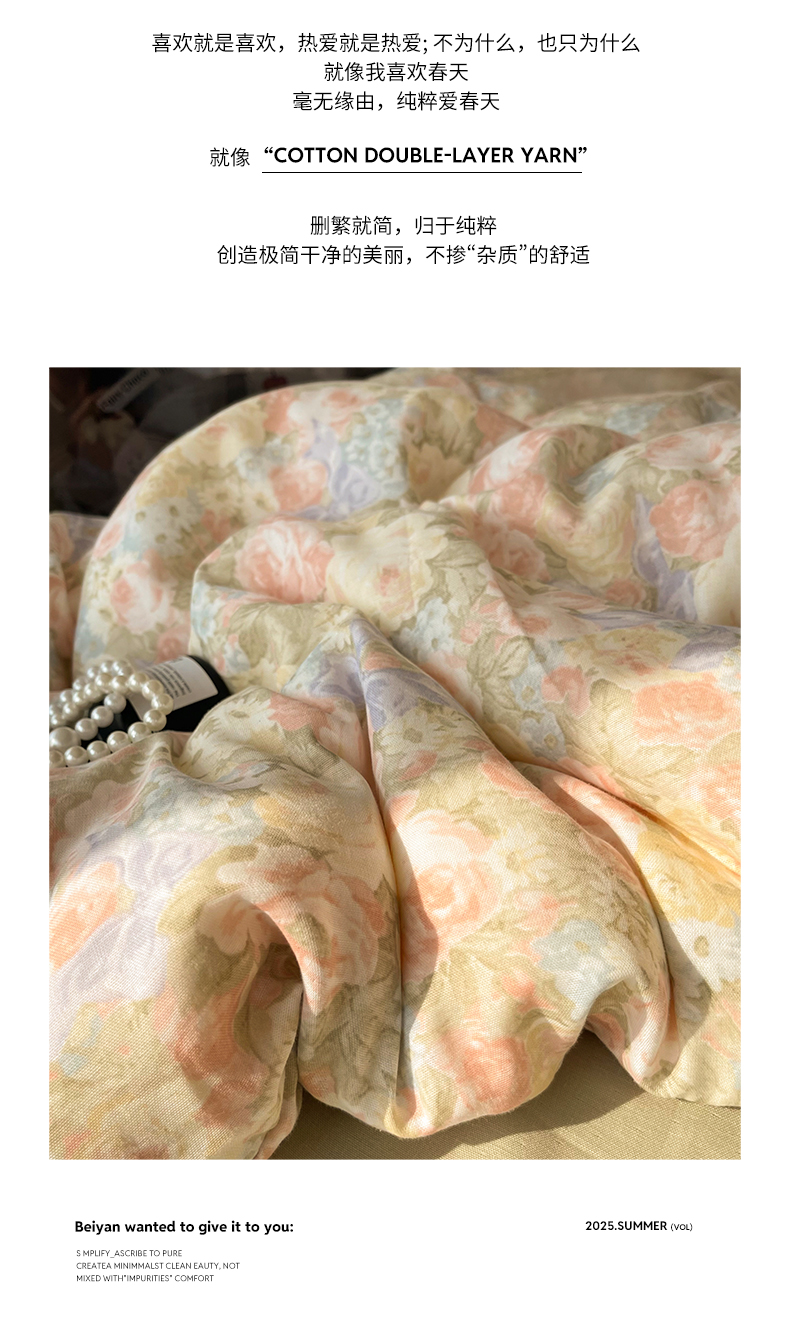 HL原创 2025法式花边油画风全棉双层纱四件套 花涧