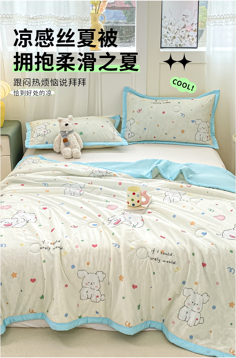 顺顺家纺 2025新款凉感丝印花夏被空调被 快乐小狗