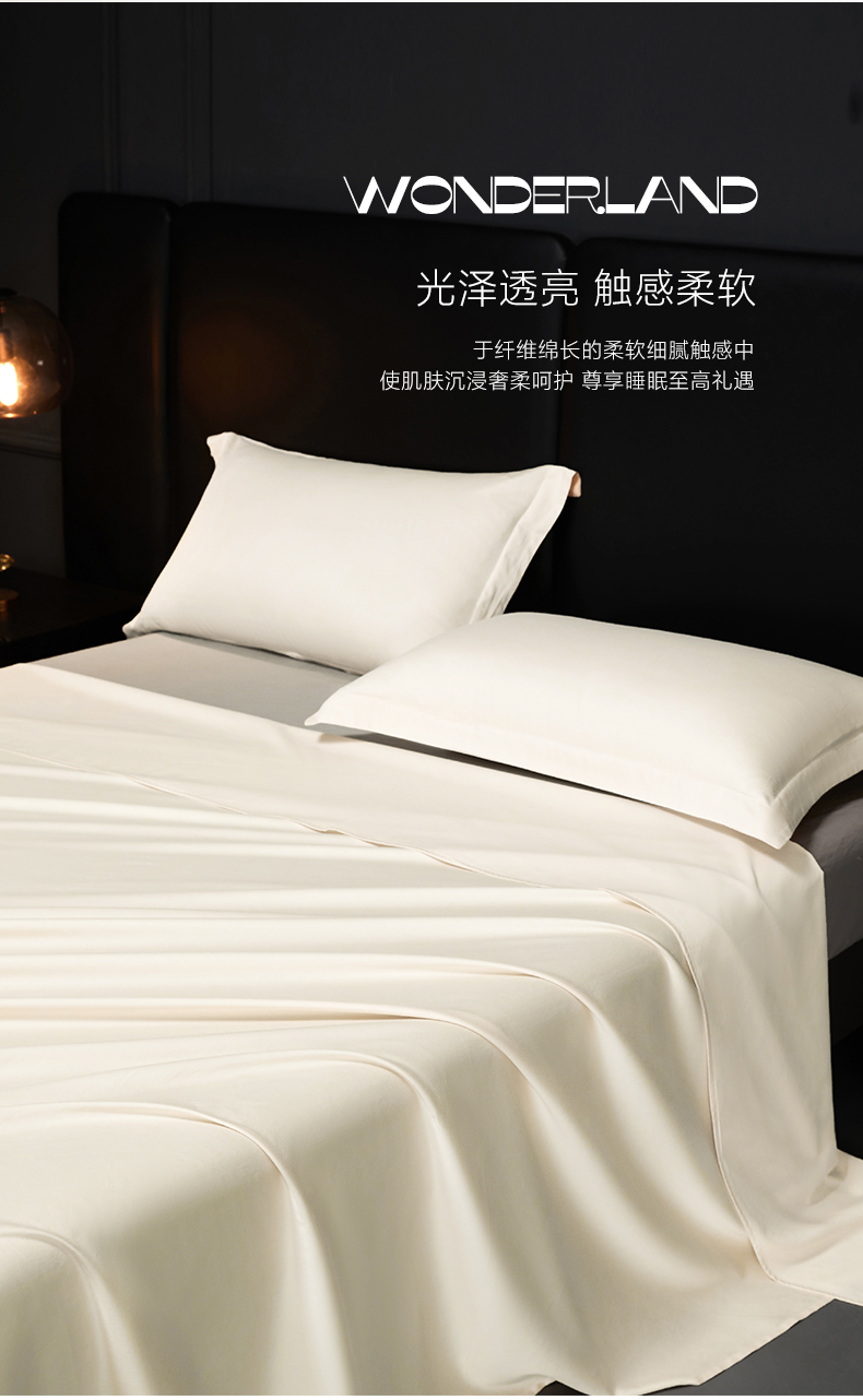 商品名称:秀色2025新款A类高端100s新疆长绒棉纯棉床单单件全棉单人贡缎加厚被单三件套 莫奈-皓月白