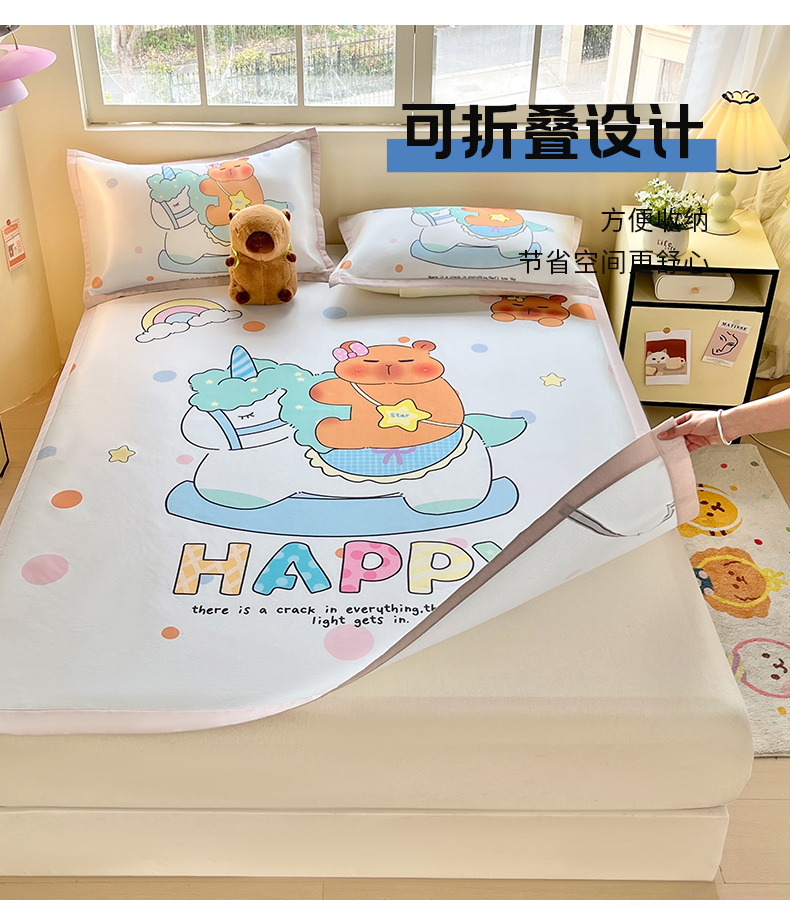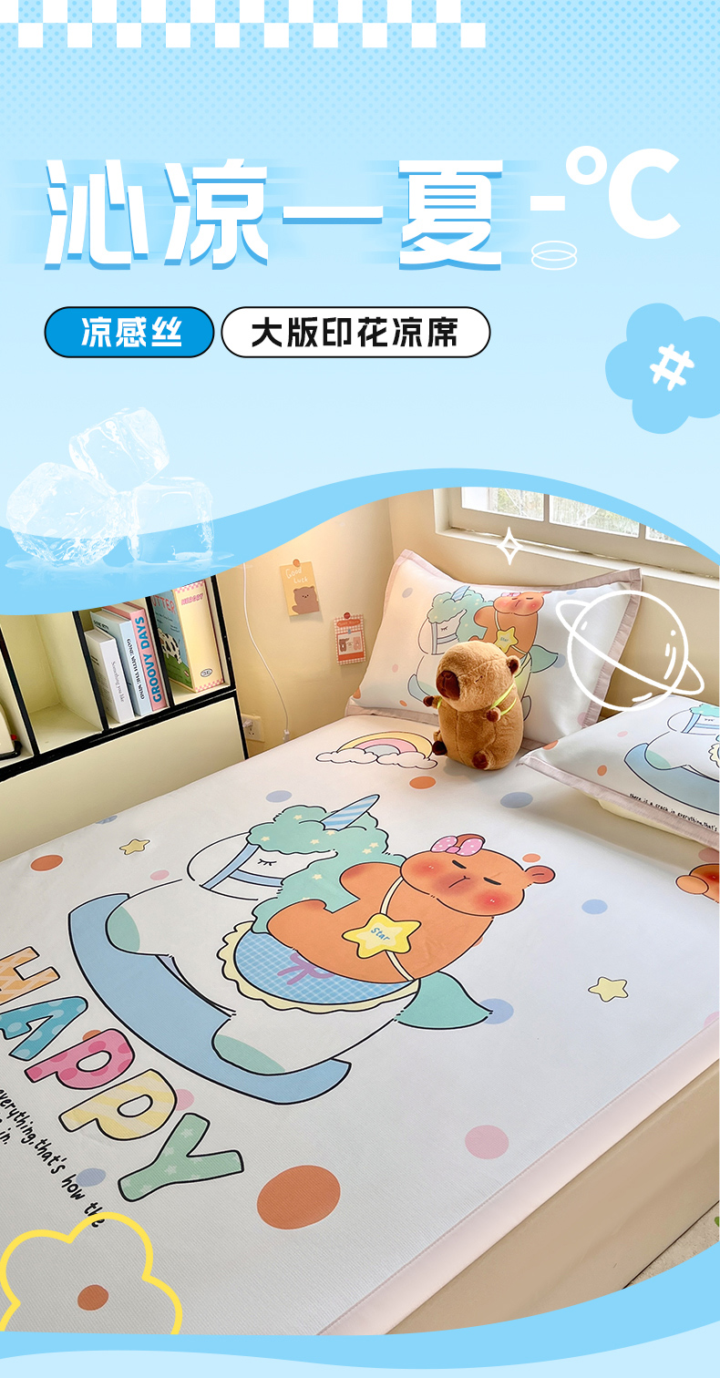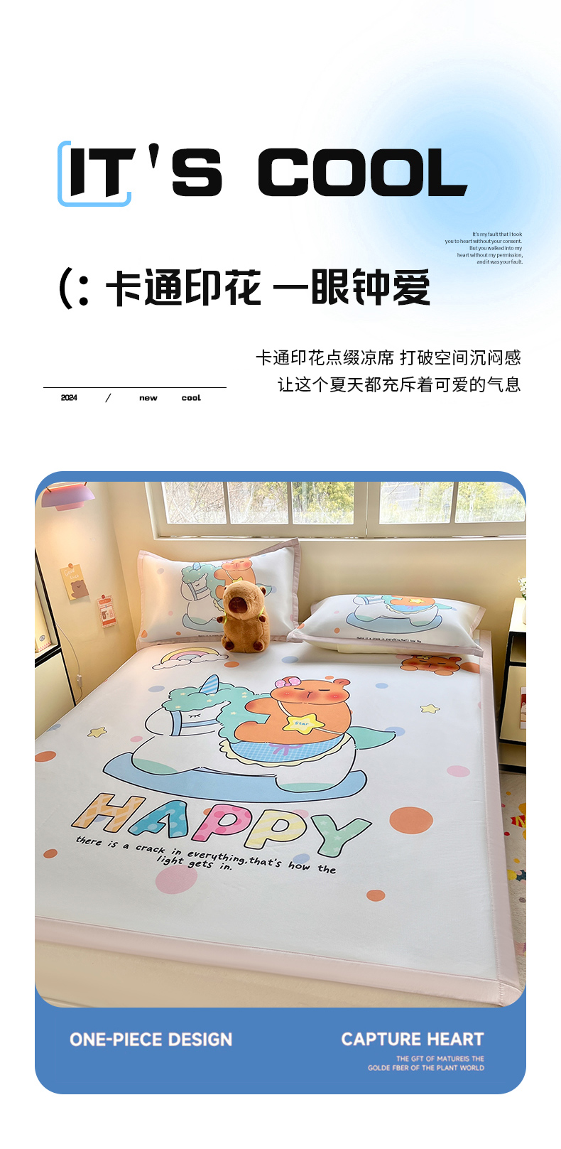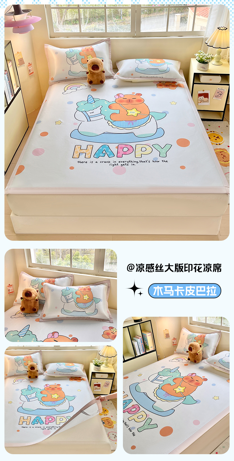 博雅 2025新款独家版权A类大版数码印花1200D冰丝凉席 木马卡皮巴拉