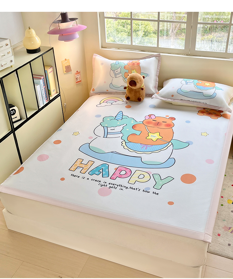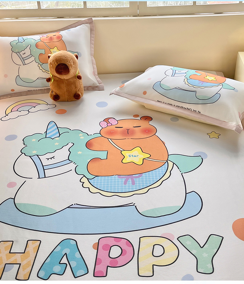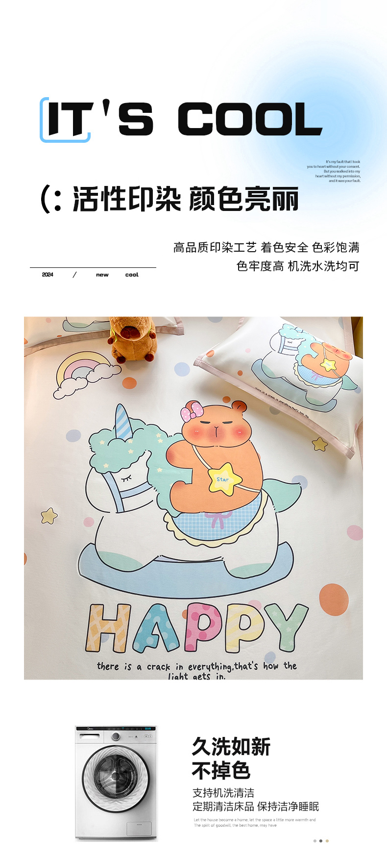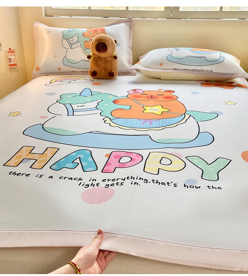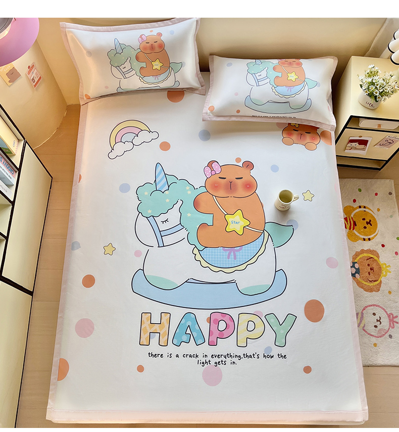 博雅 2025新款独家版权A类大版数码印花1200D冰丝凉席 木马卡皮巴拉