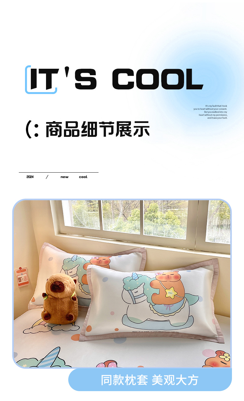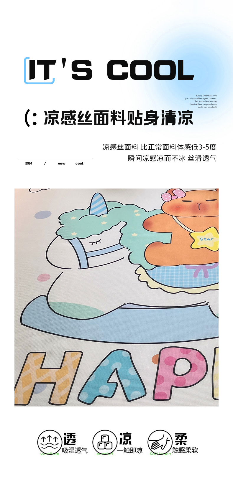 商品名称:博雅 2025新款独家版权A类大版数码印花1200D冰丝凉席 木马卡皮巴拉