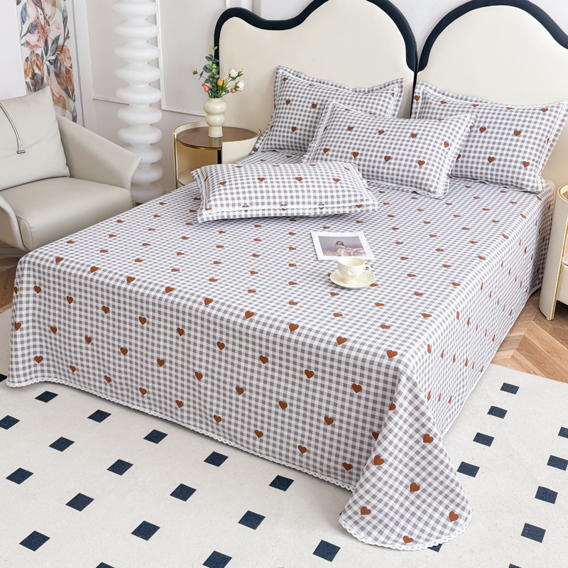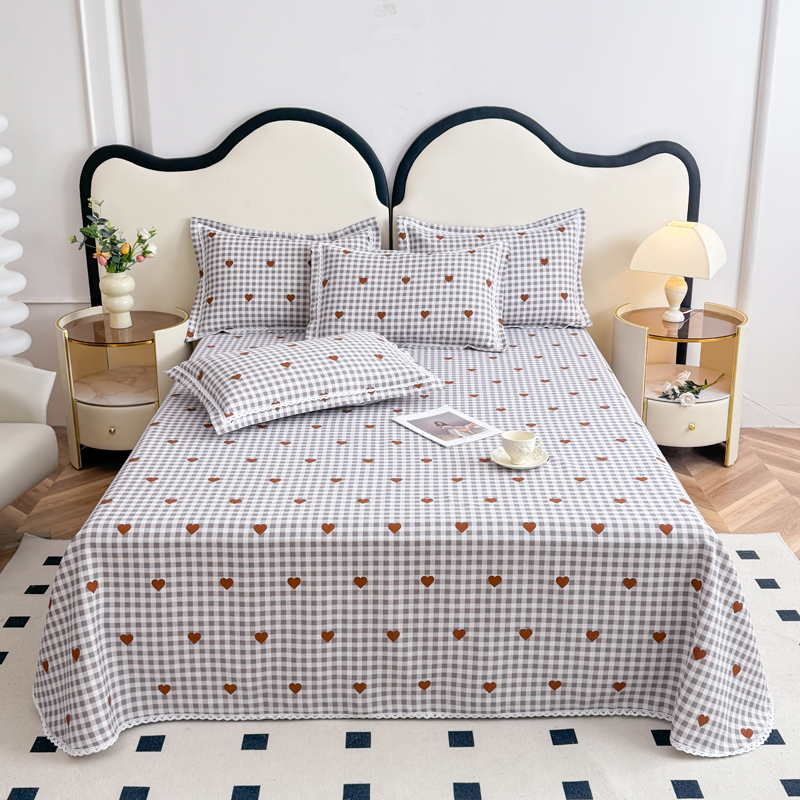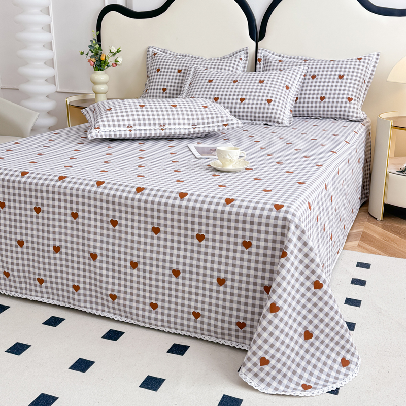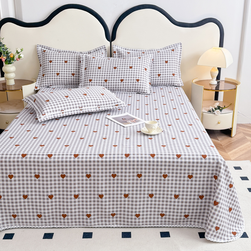 商品名称:仟网汇 2025全棉老粗布蕾丝花边三件套(无纺布手提包装) 格子爱心