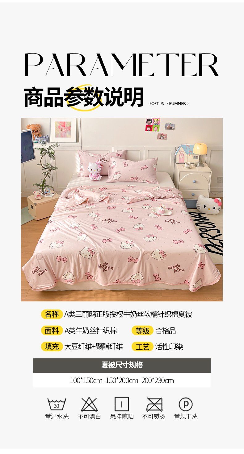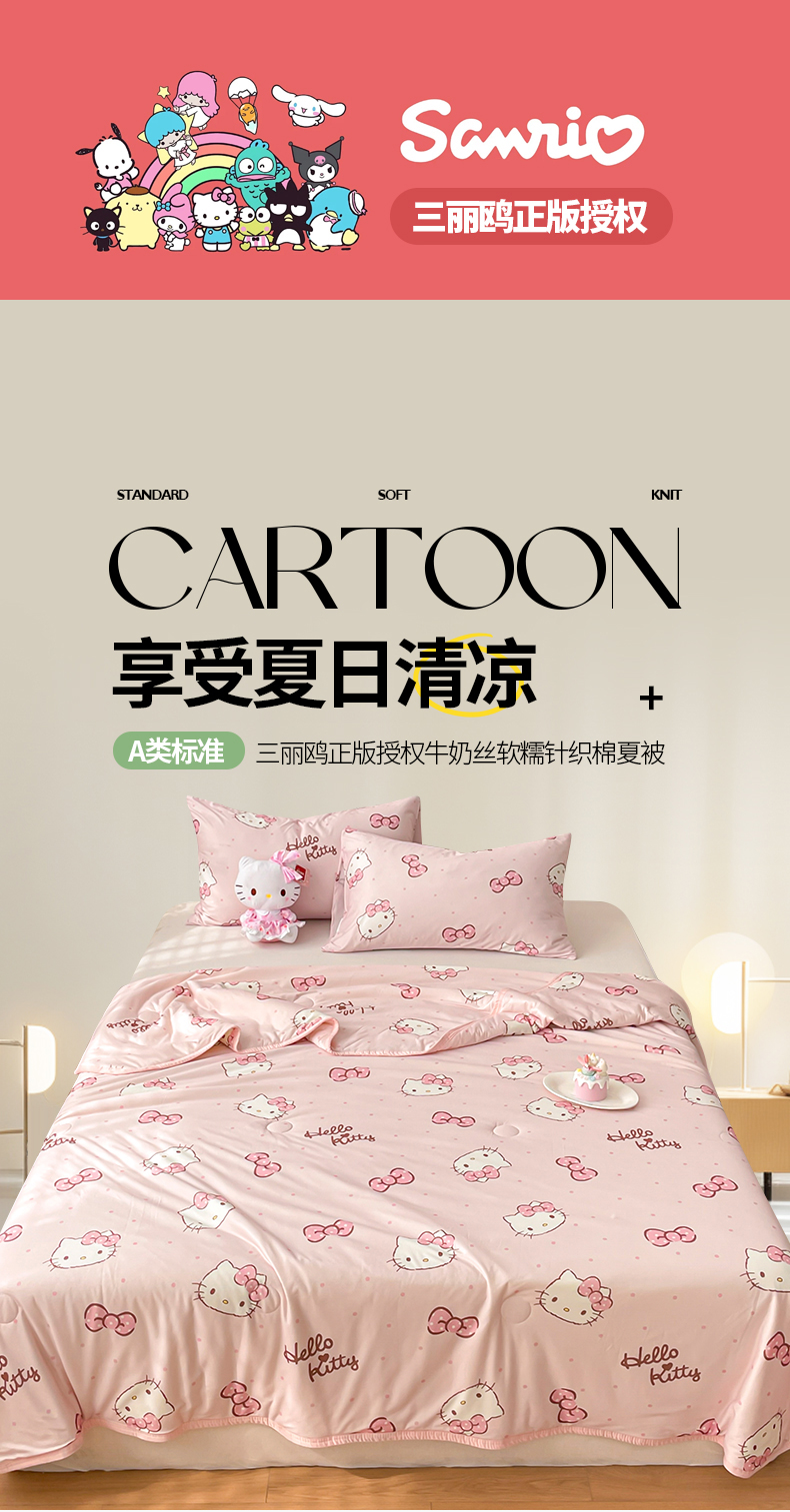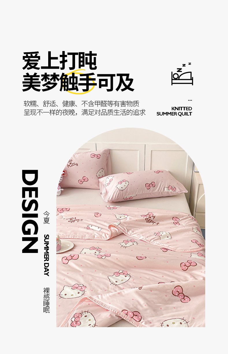 • 91家纺网 家纺一手货源 找家纺 桃子家居 2025新款A类三丽鸥正版授权高品质牛奶丝软糯针织棉大豆夏被系列 针织棉三丽鸥-爱心美少女kitty