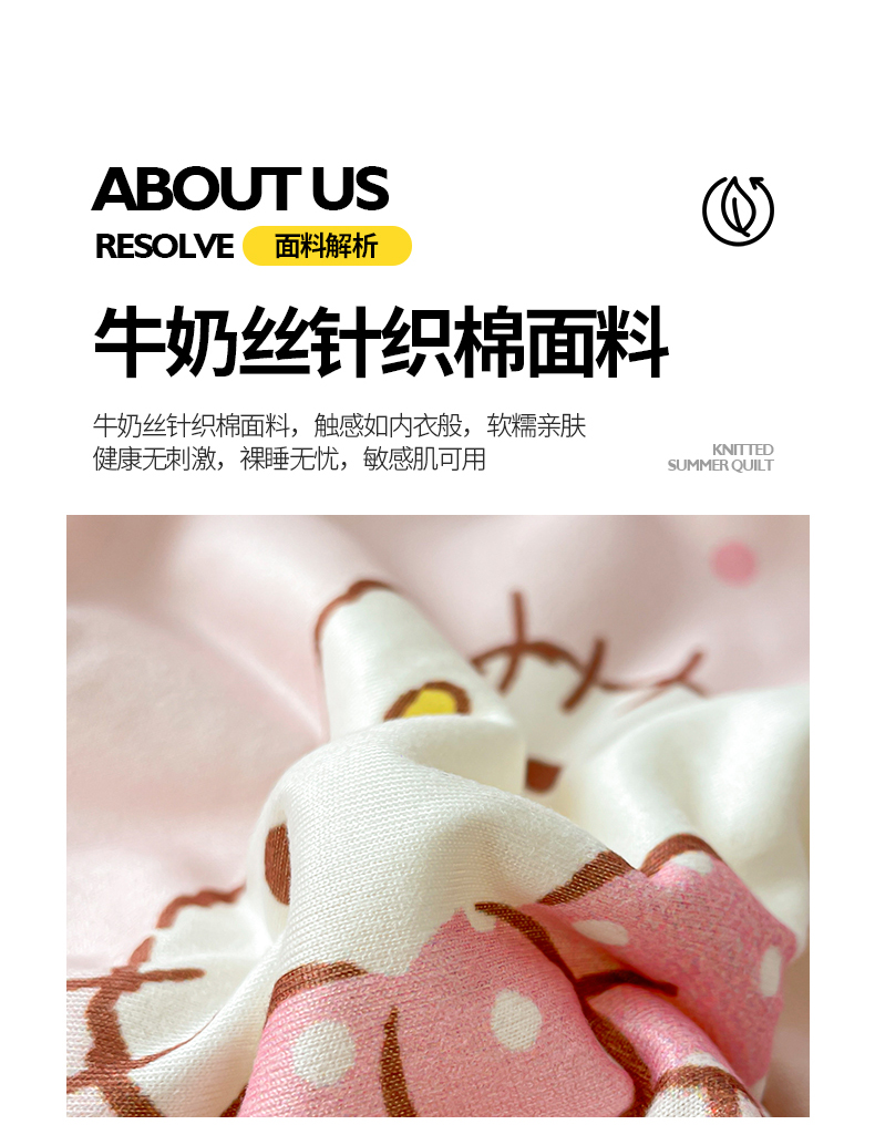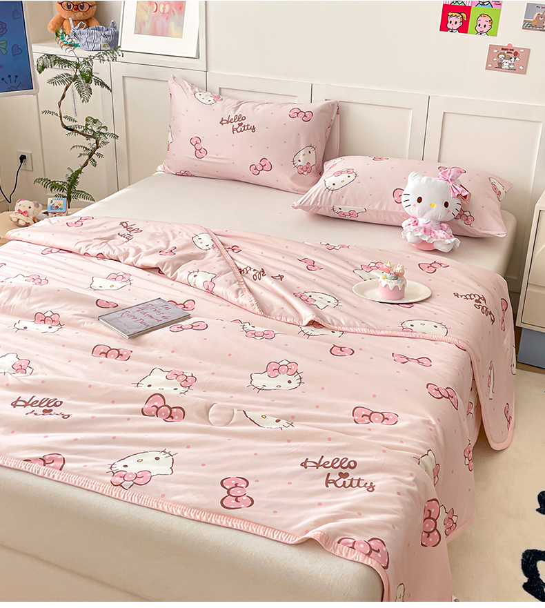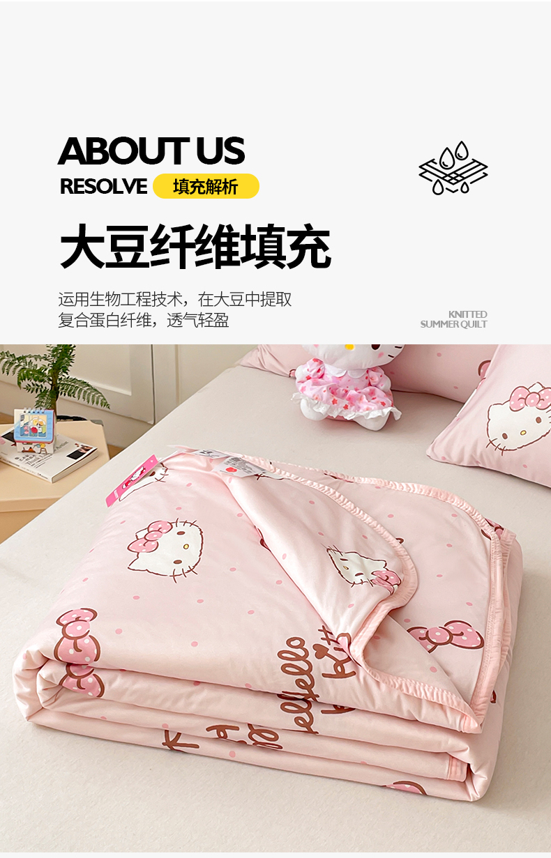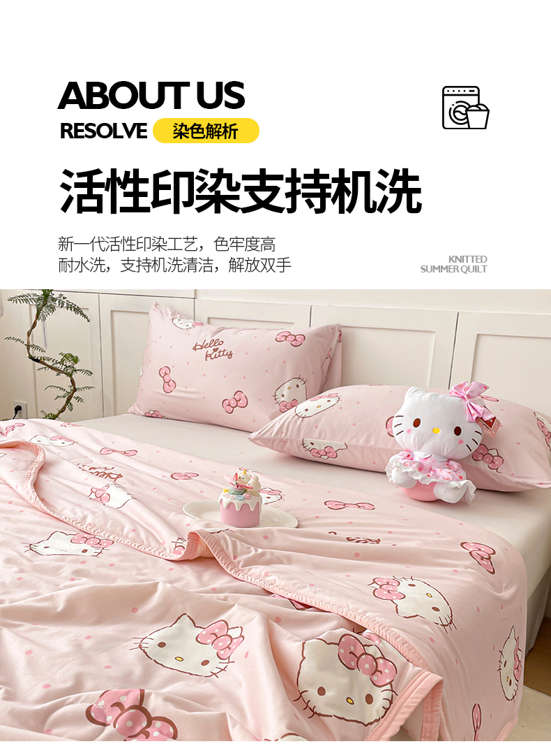• 91家纺网 家纺一手货源 找家纺 桃子家居 2025新款A类三丽鸥正版授权高品质牛奶丝软糯针织棉大豆夏被系列 针织棉三丽鸥-爱心美少女kitty