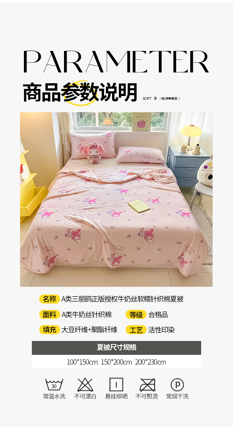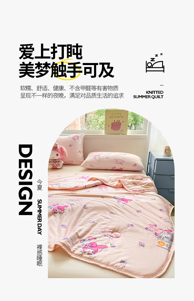 • 91家纺网 家纺一手货源 找家纺 桃子家居 2025新款A类三丽鸥正版授权高品质牛奶丝软糯针织棉大豆夏被系列 针织棉三丽鸥-气球美乐蒂
