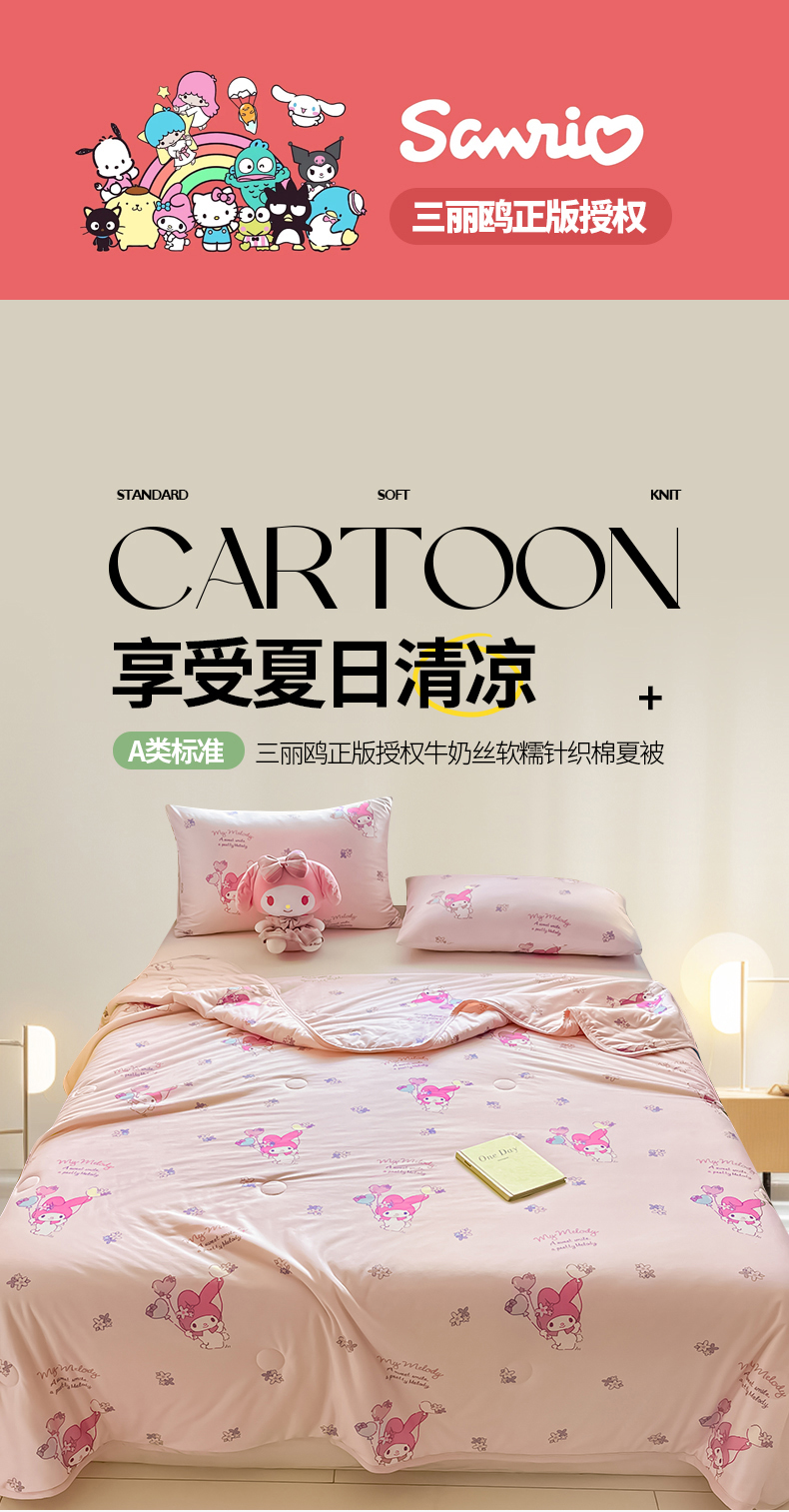 • 91家纺网 家纺一手货源 找家纺 桃子家居 2025新款A类三丽鸥正版授权高品质牛奶丝软糯针织棉大豆夏被系列 针织棉三丽鸥-气球美乐蒂 91家纺网 家纺一手货源 找家纺 桃子家居 2025新款A类三丽鸥正版授权高品质牛奶丝软糯针织棉大豆夏被系列 针织棉三丽鸥-气球美乐蒂