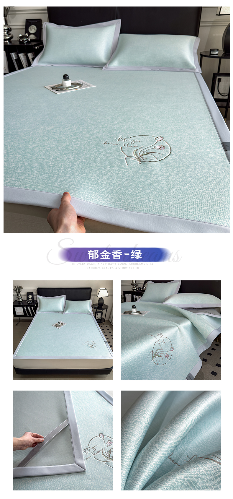 倾慕家纺 2025新款PE50凉感刺绣凉席 郁金香卡其PE刺绣款
