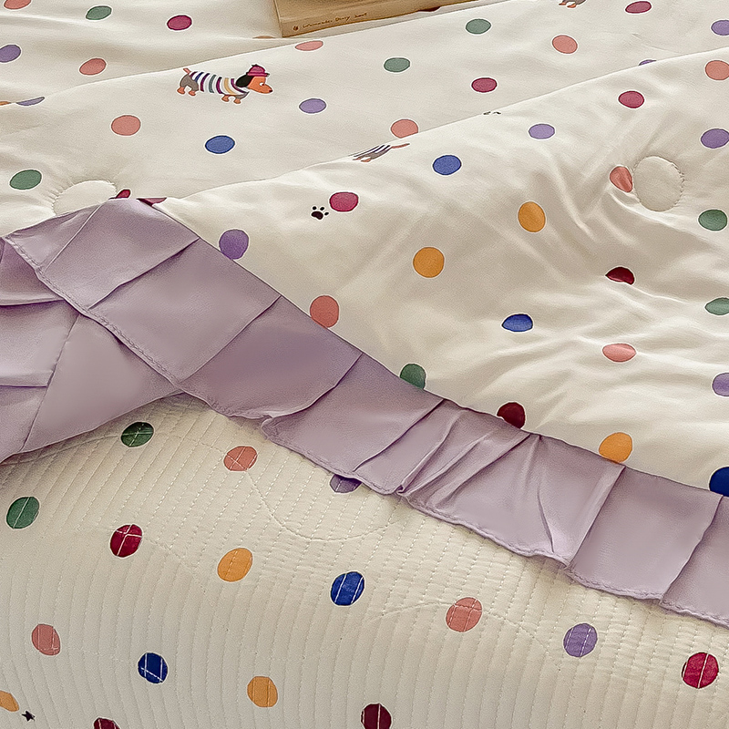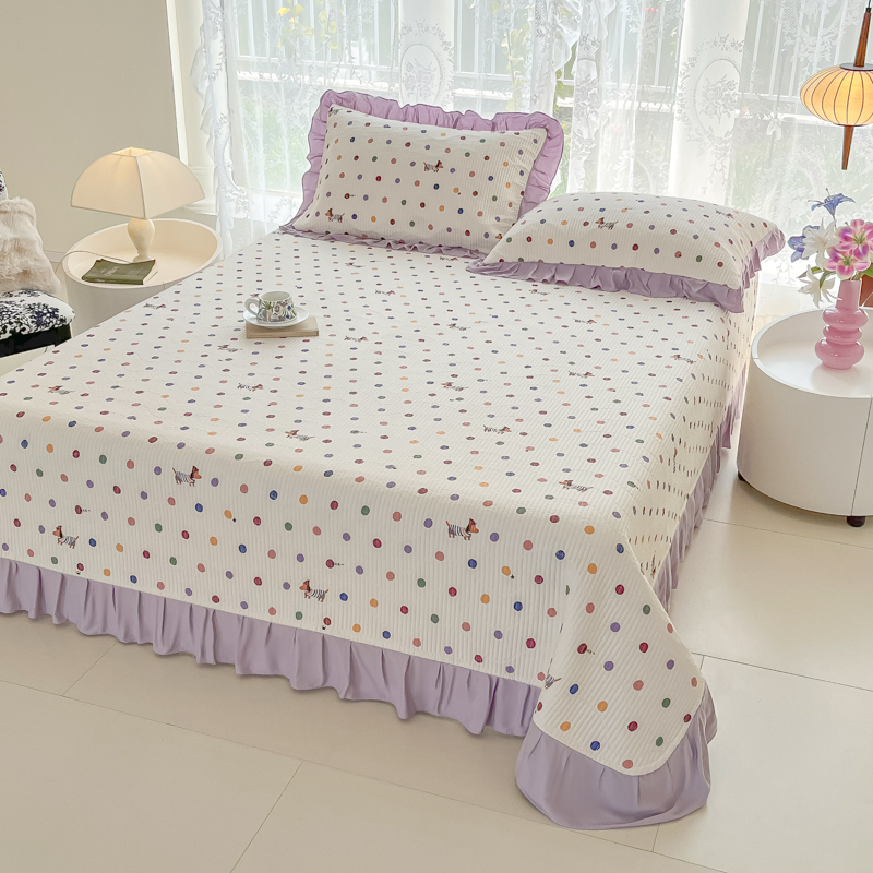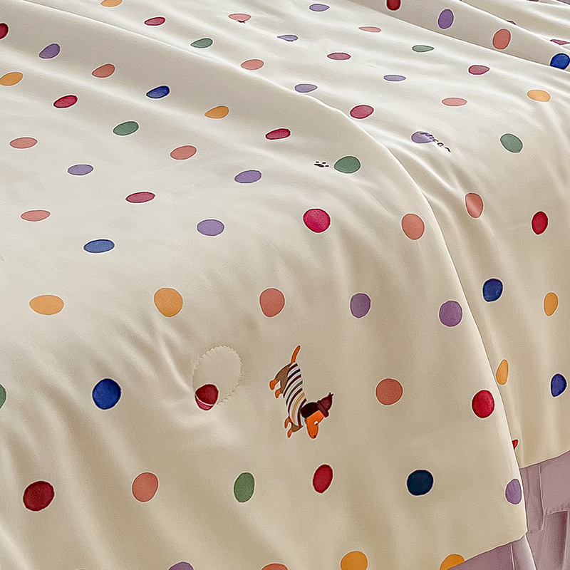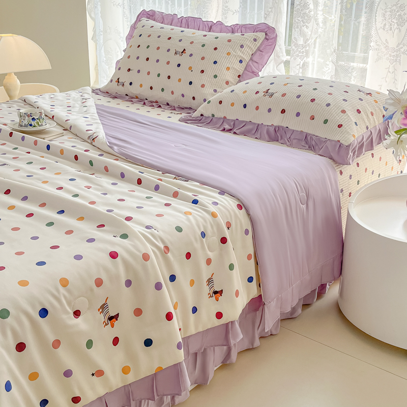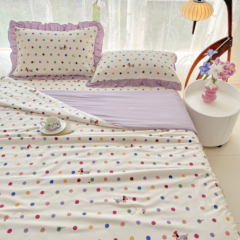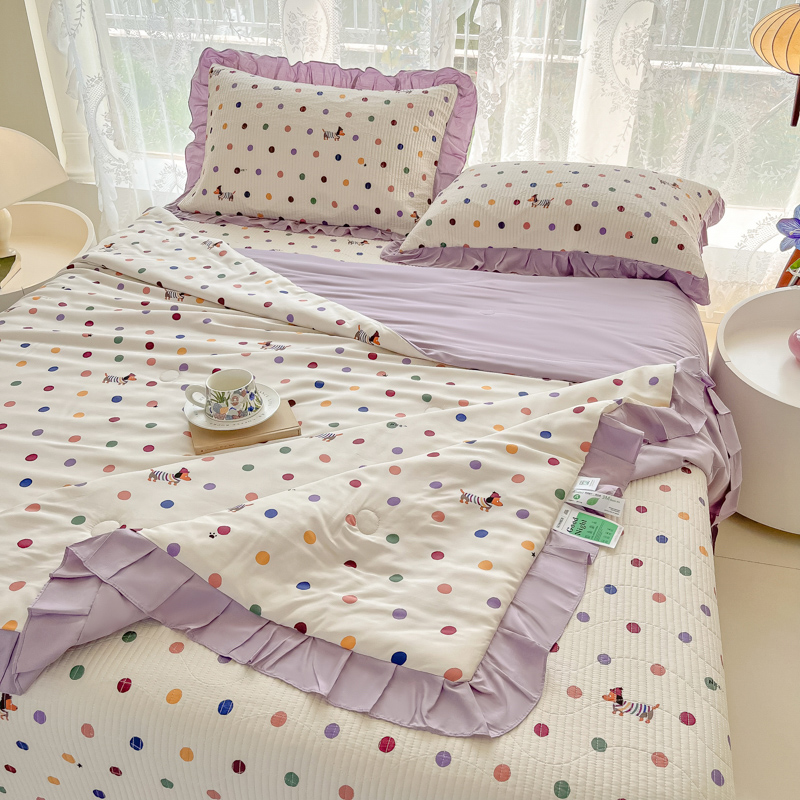 慕晨 2025新品天丝莫代尔夏被床盖四件套天丝夏凉被直播热款夏被四件套 波点狗狗
