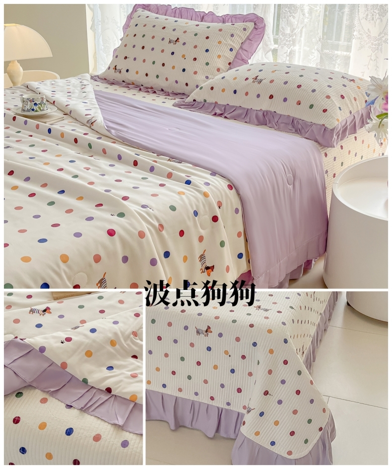 商品名称:慕晨 2025新品天丝莫代尔夏被床盖四件套天丝夏凉被直播热款夏被四件套 波点狗狗