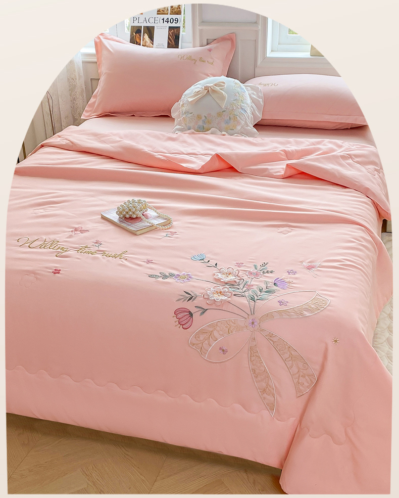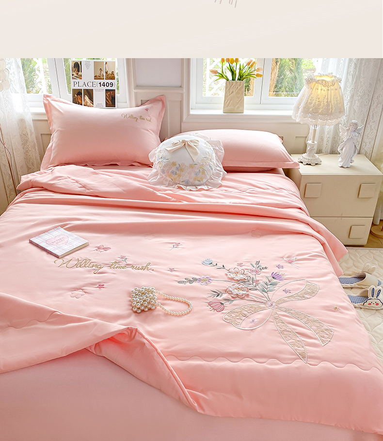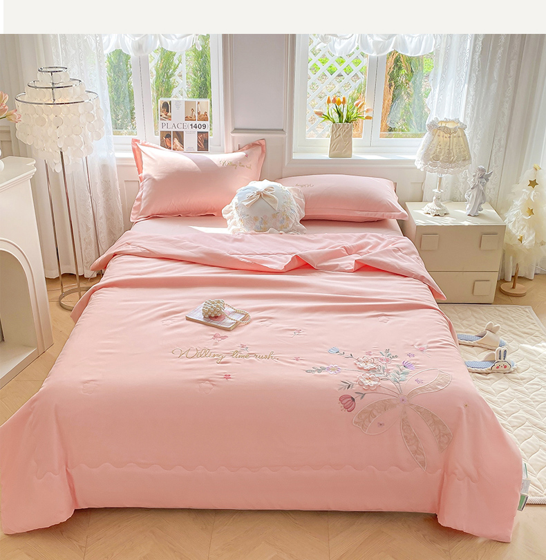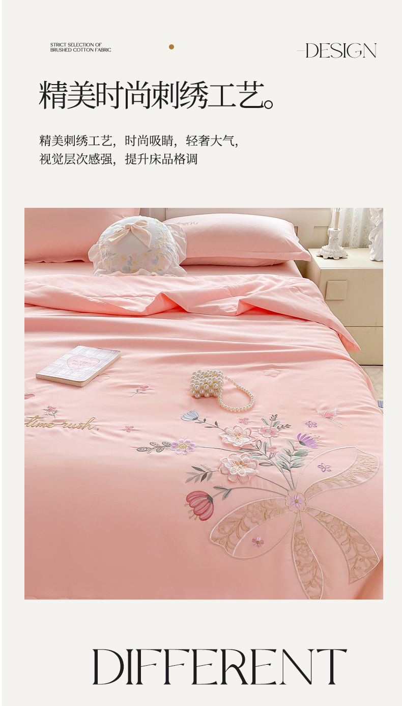 (总)帝菲妮 2025新款国潮风刺绣夏被四件套-如意系列,如意-粉色,如意-橘色,如意-月影蓝