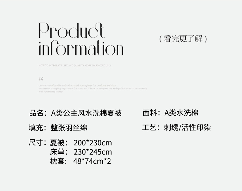 商品名称:(总)帝菲妮 2025新款超柔水洗棉立体花刺绣夏被四件套-半夏