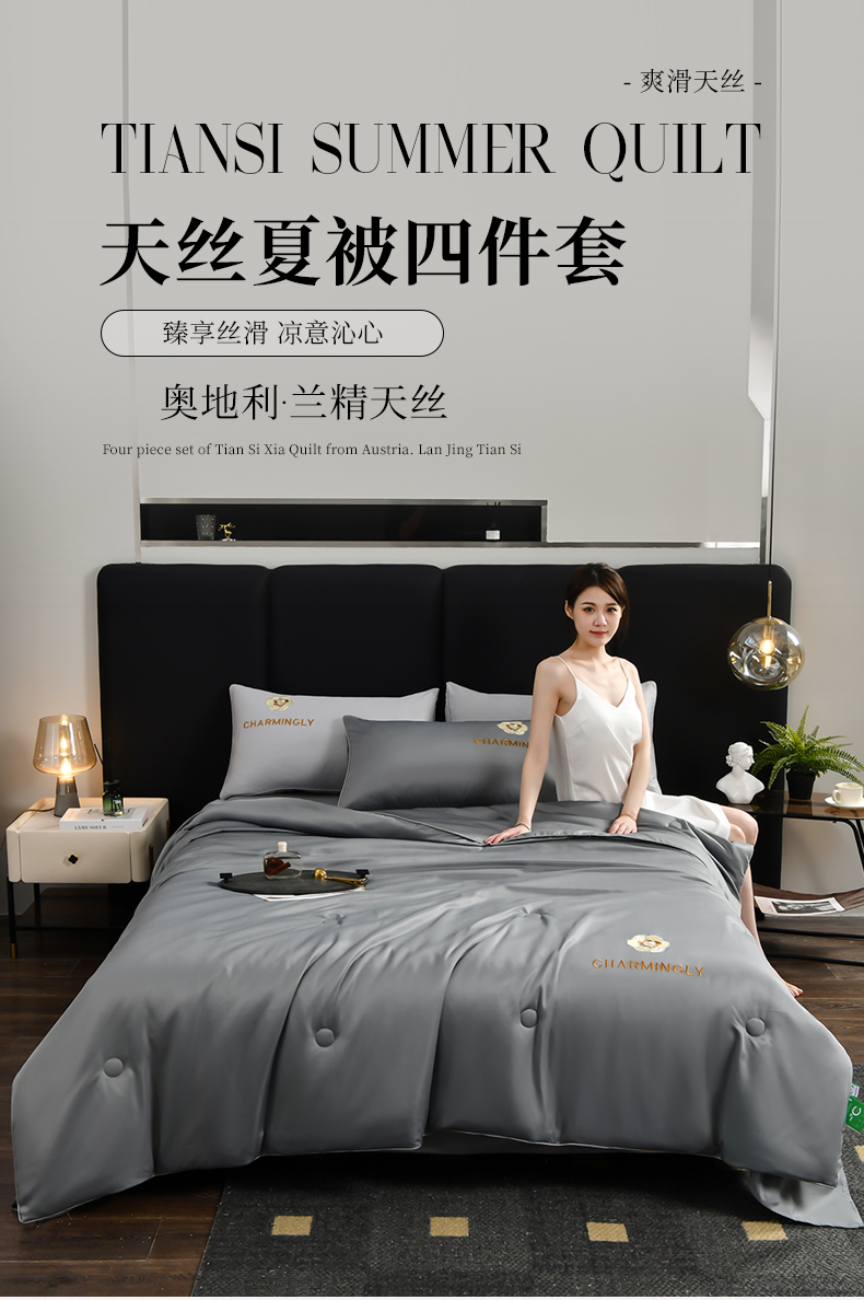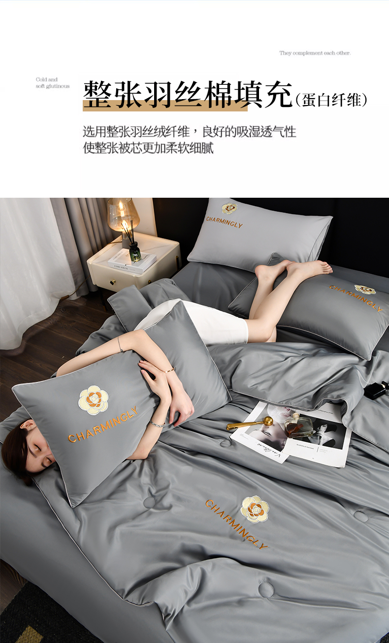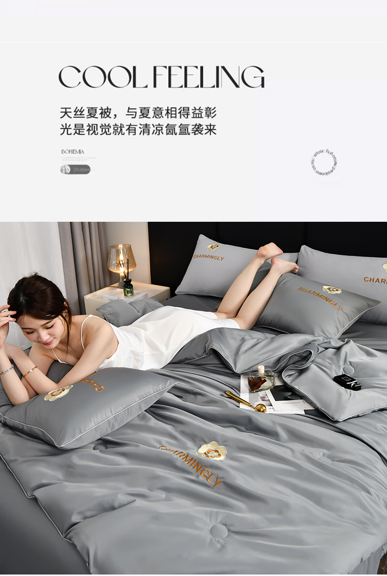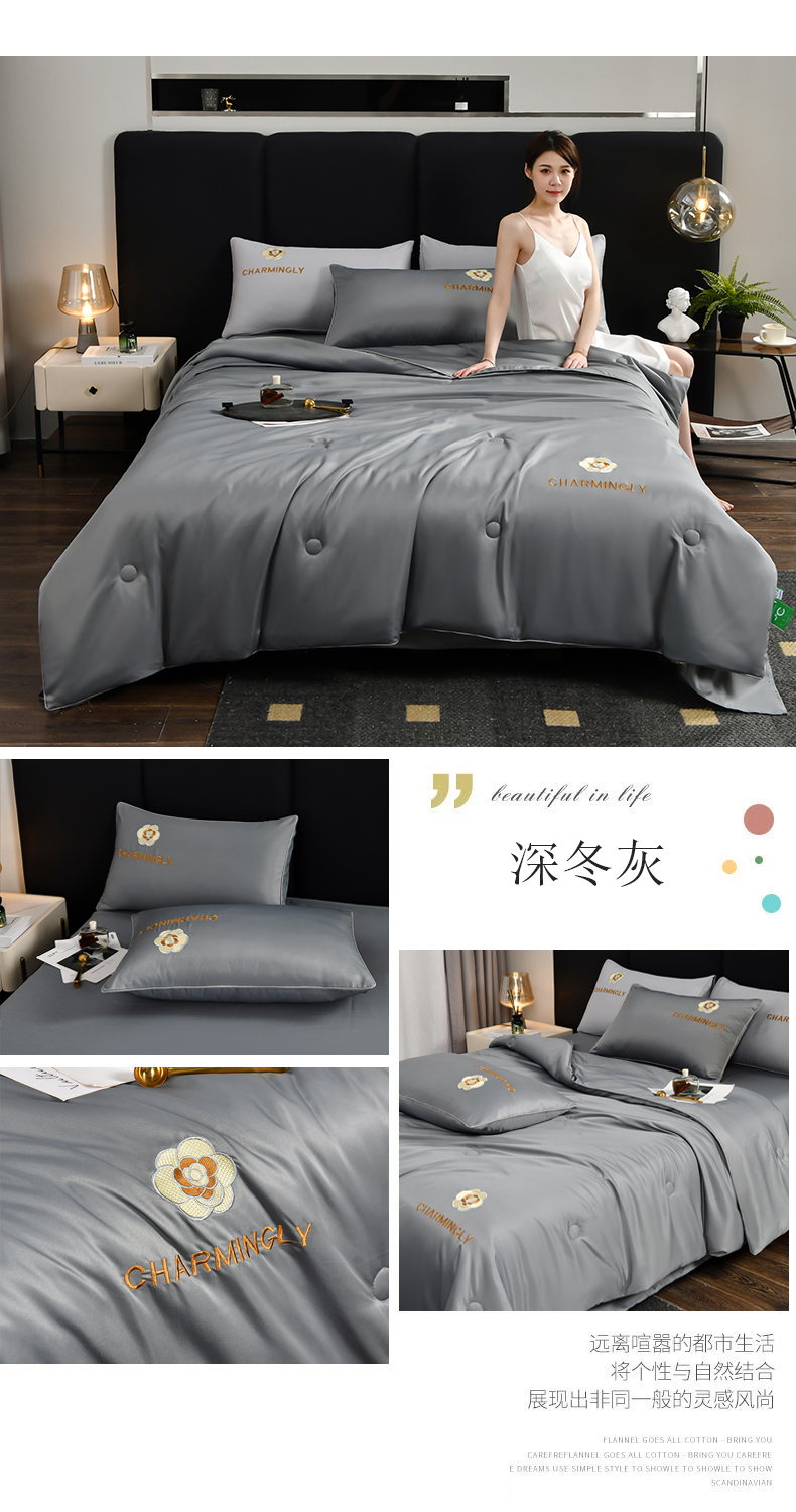 优尚家纺 2025新款水洗天丝刺绣夏被夏被四件套 深冬灰