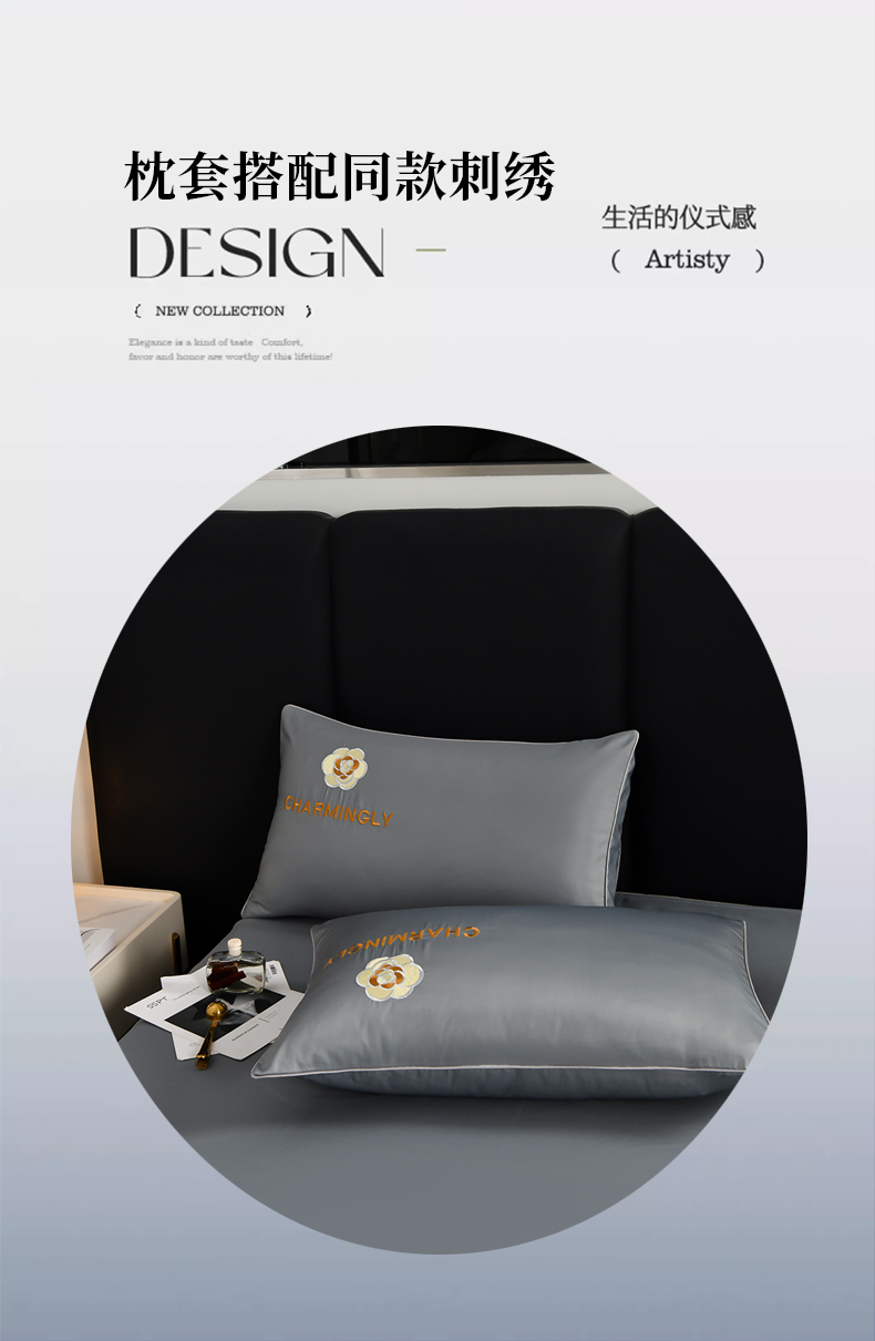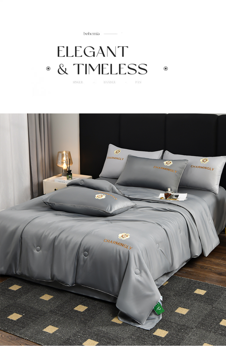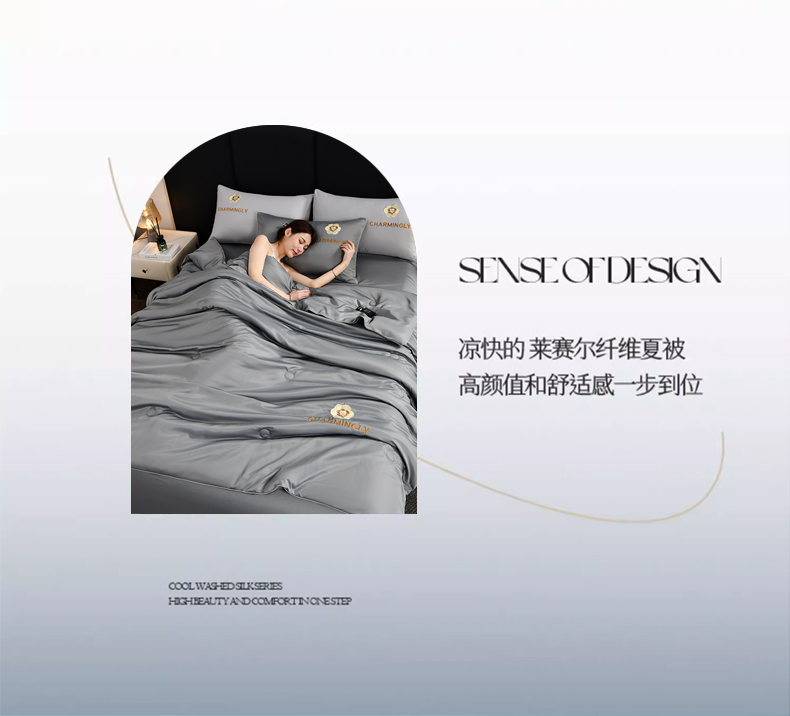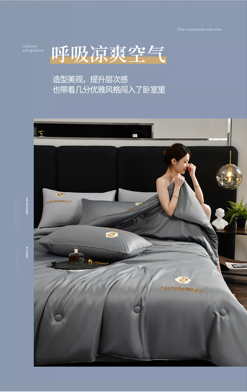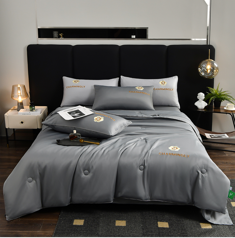优尚家纺 2025新款水洗天丝刺绣夏被夏被四件套 深冬灰