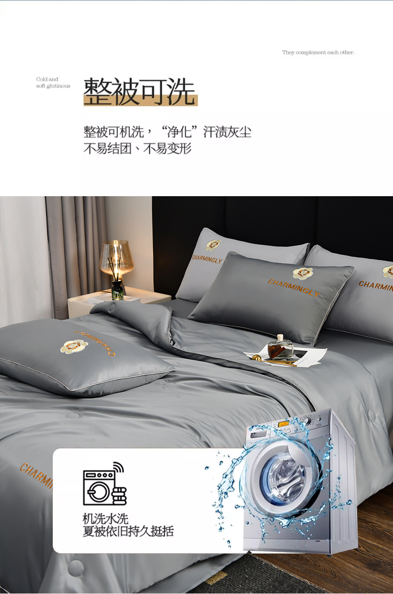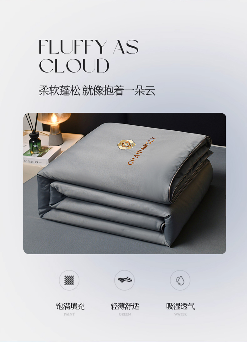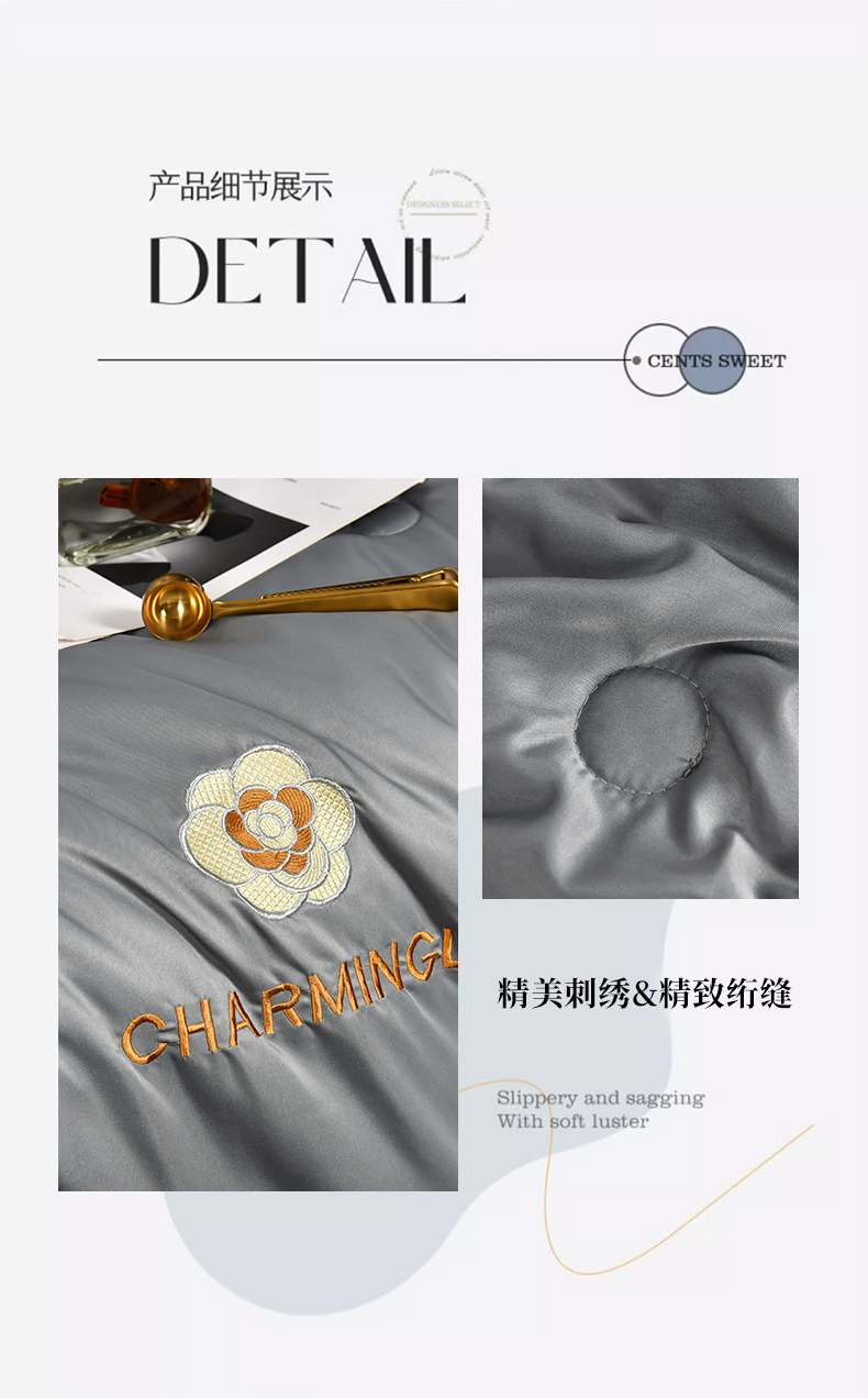 商品名称:优尚家纺 2025新款水洗天丝刺绣夏被夏被四件套 深冬灰