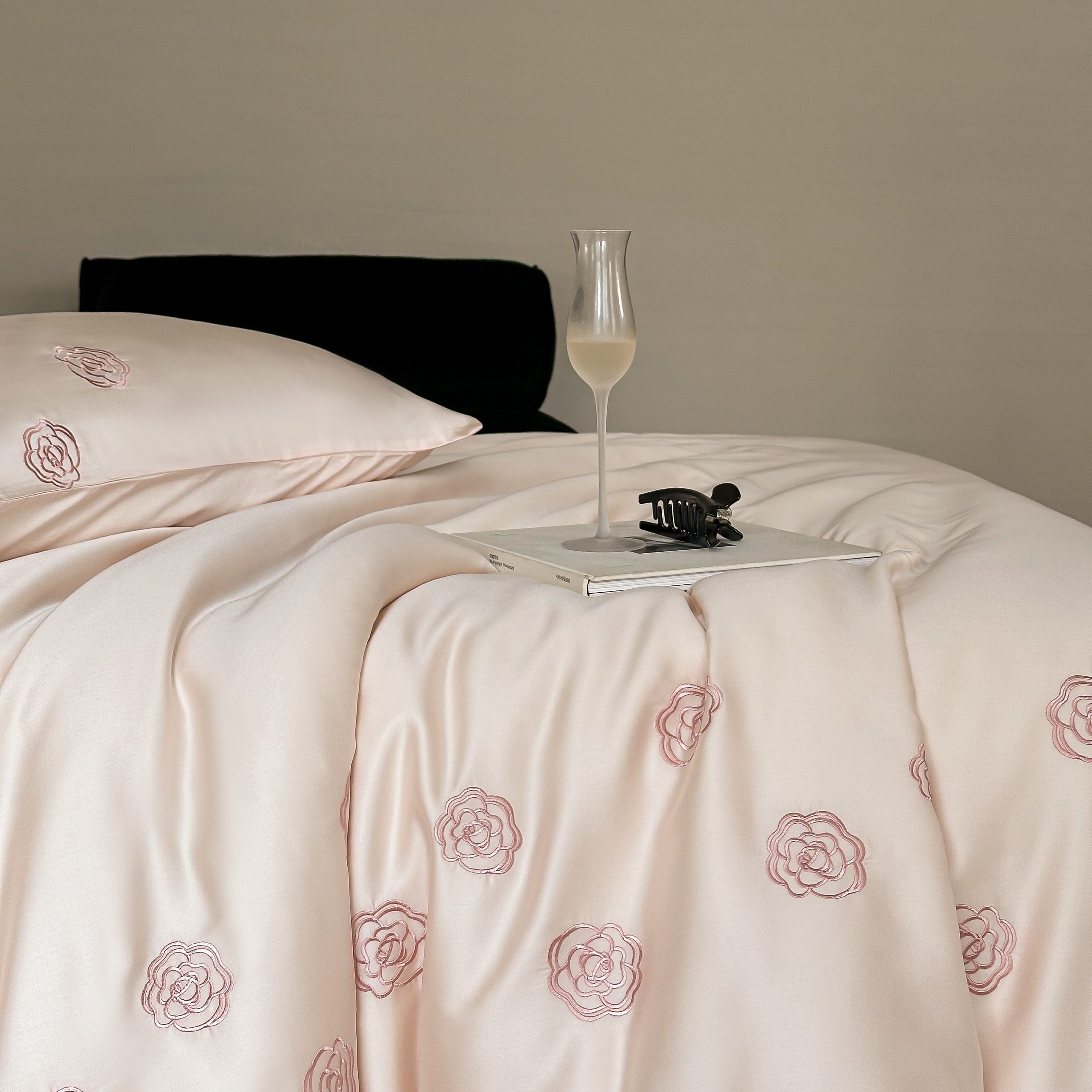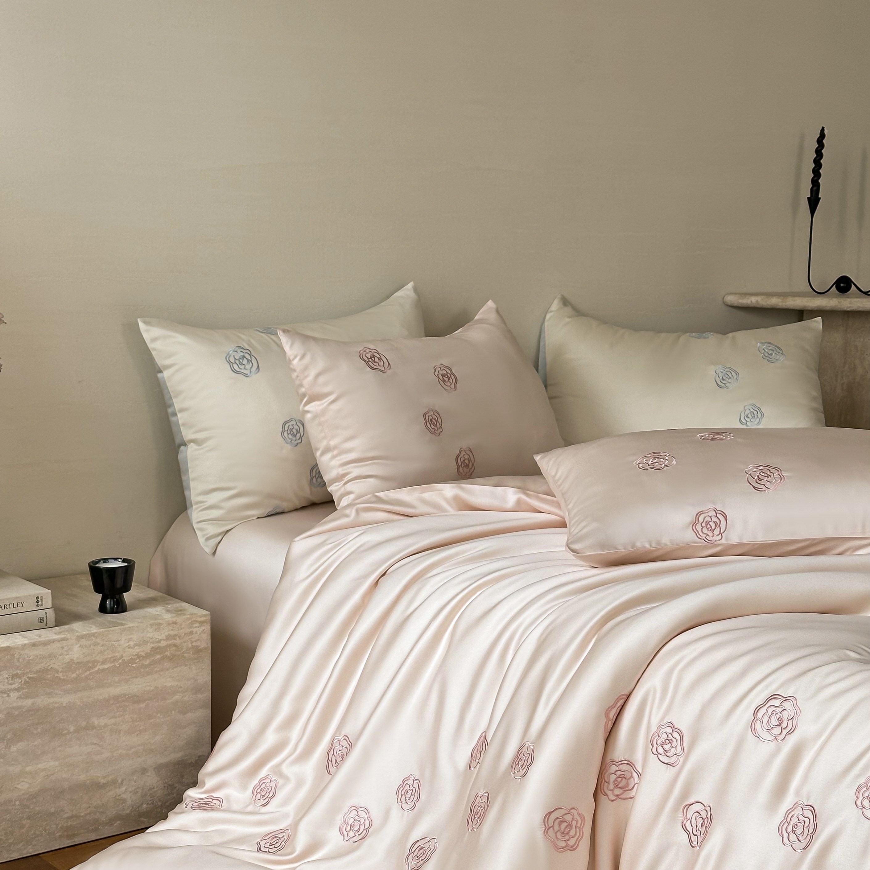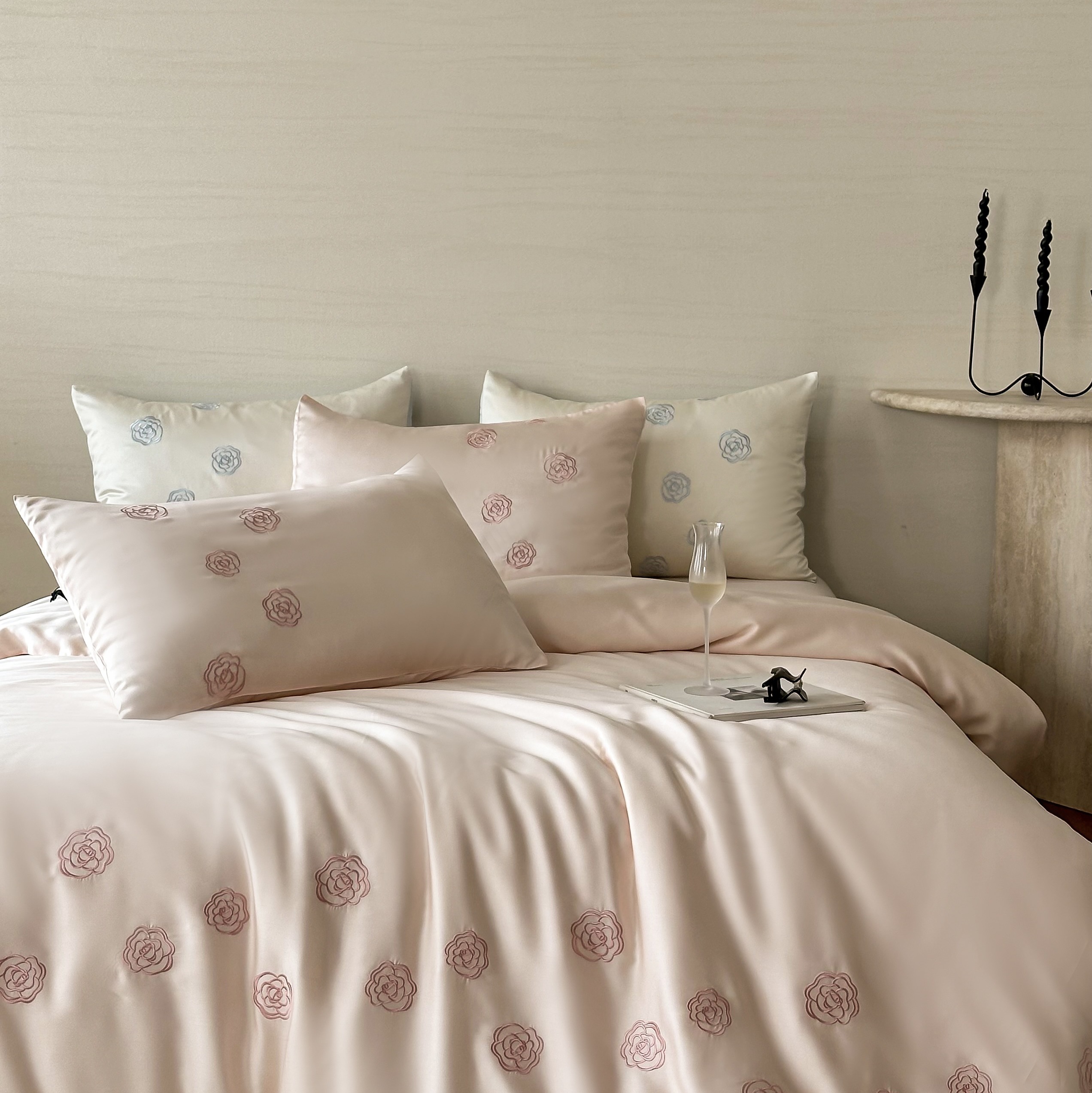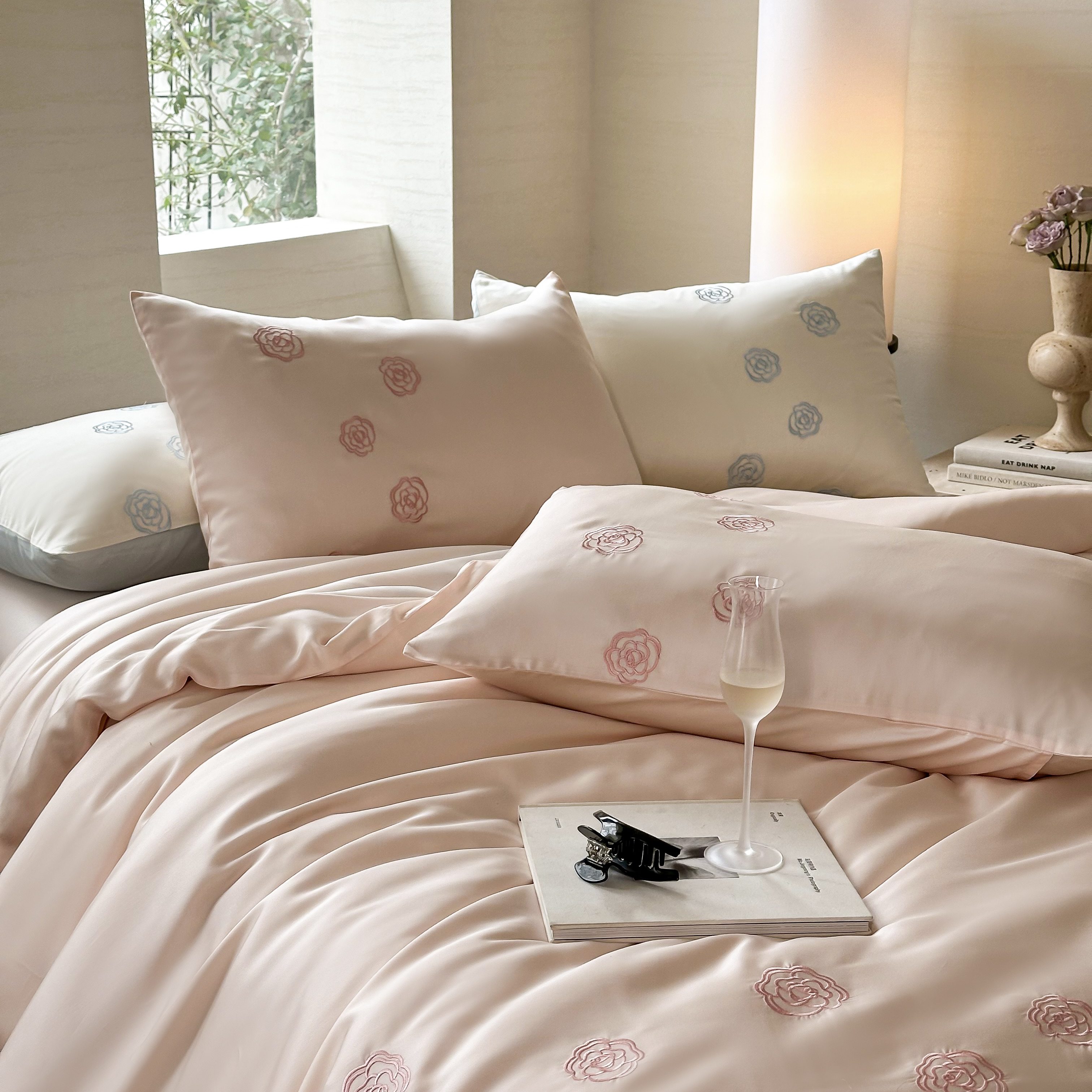 佳汐蓝家纺 2025春夏新款60S兰精天丝绣花四件套-玉茗系列 玉茗·珍珠蓝