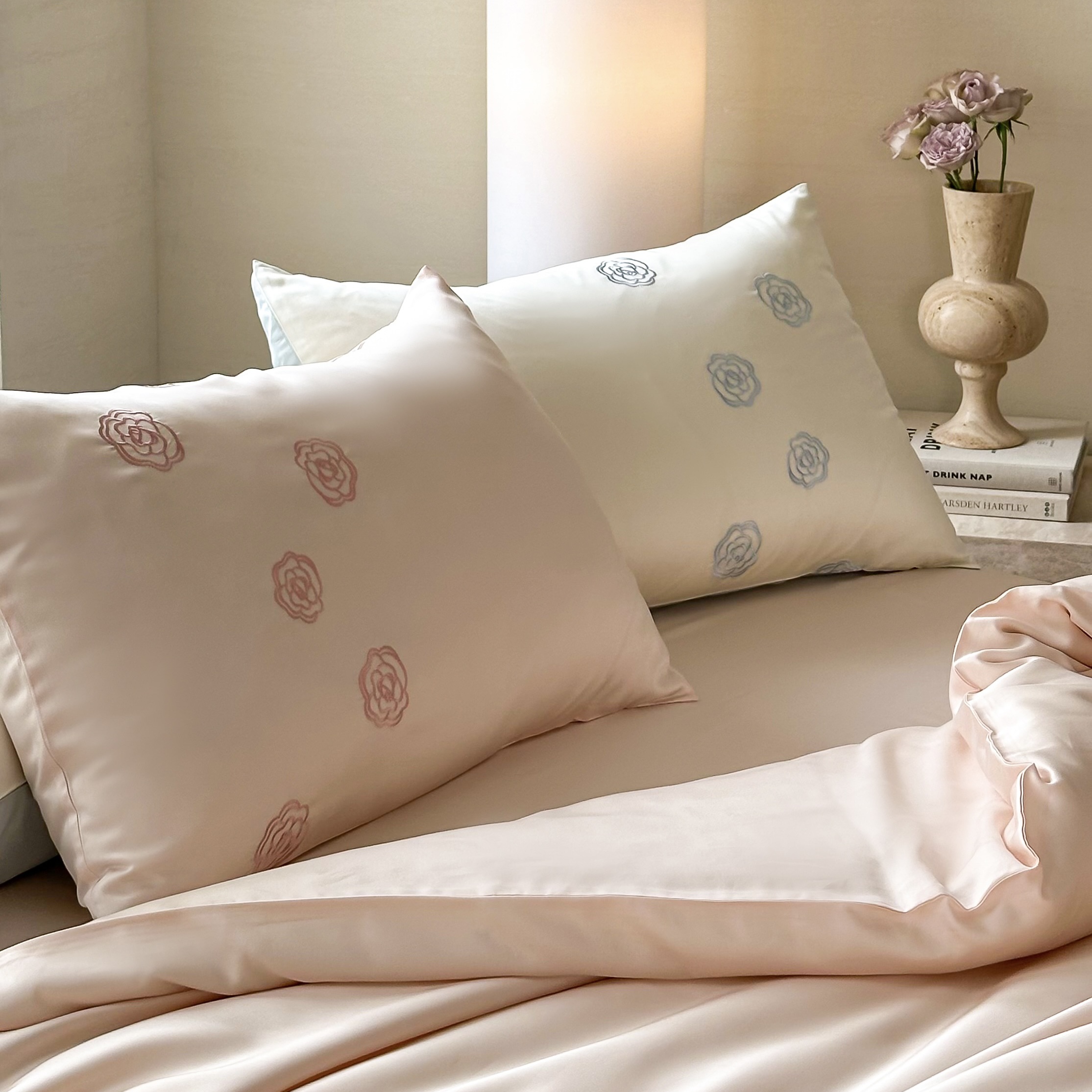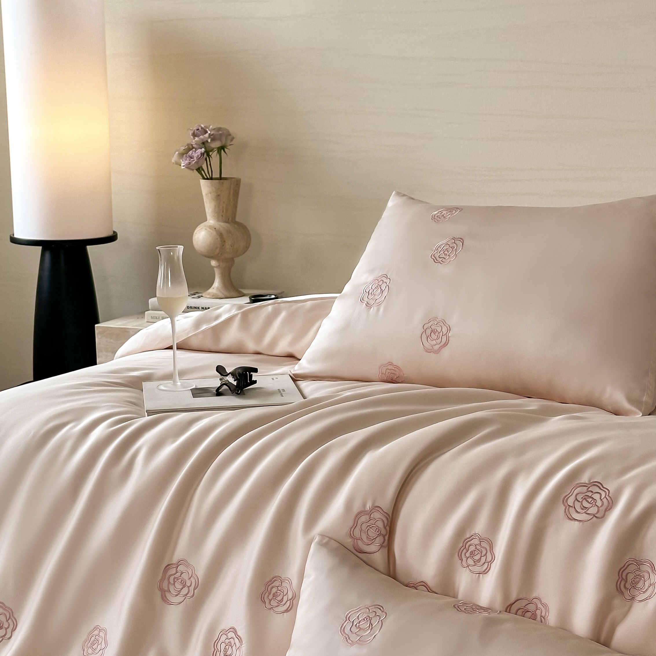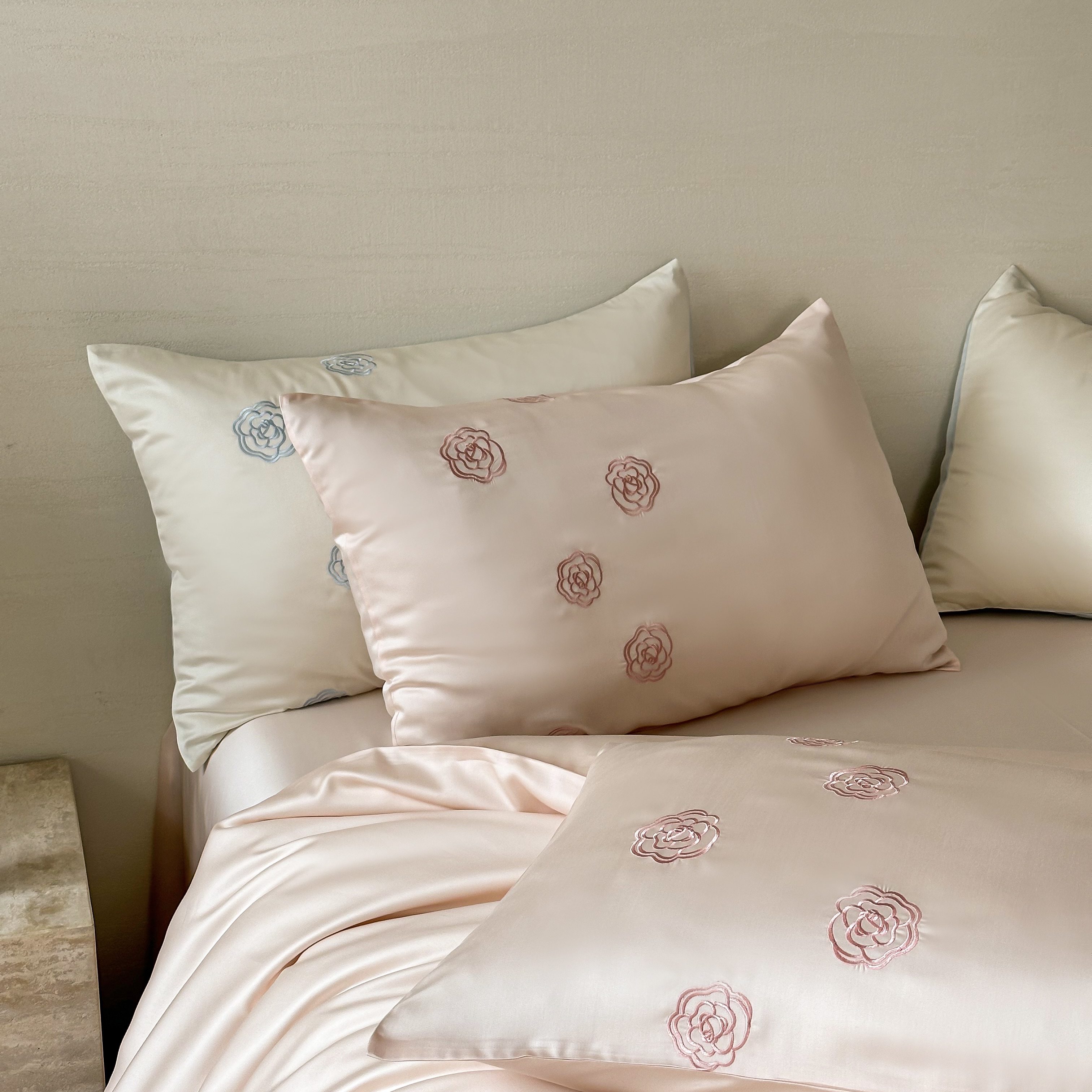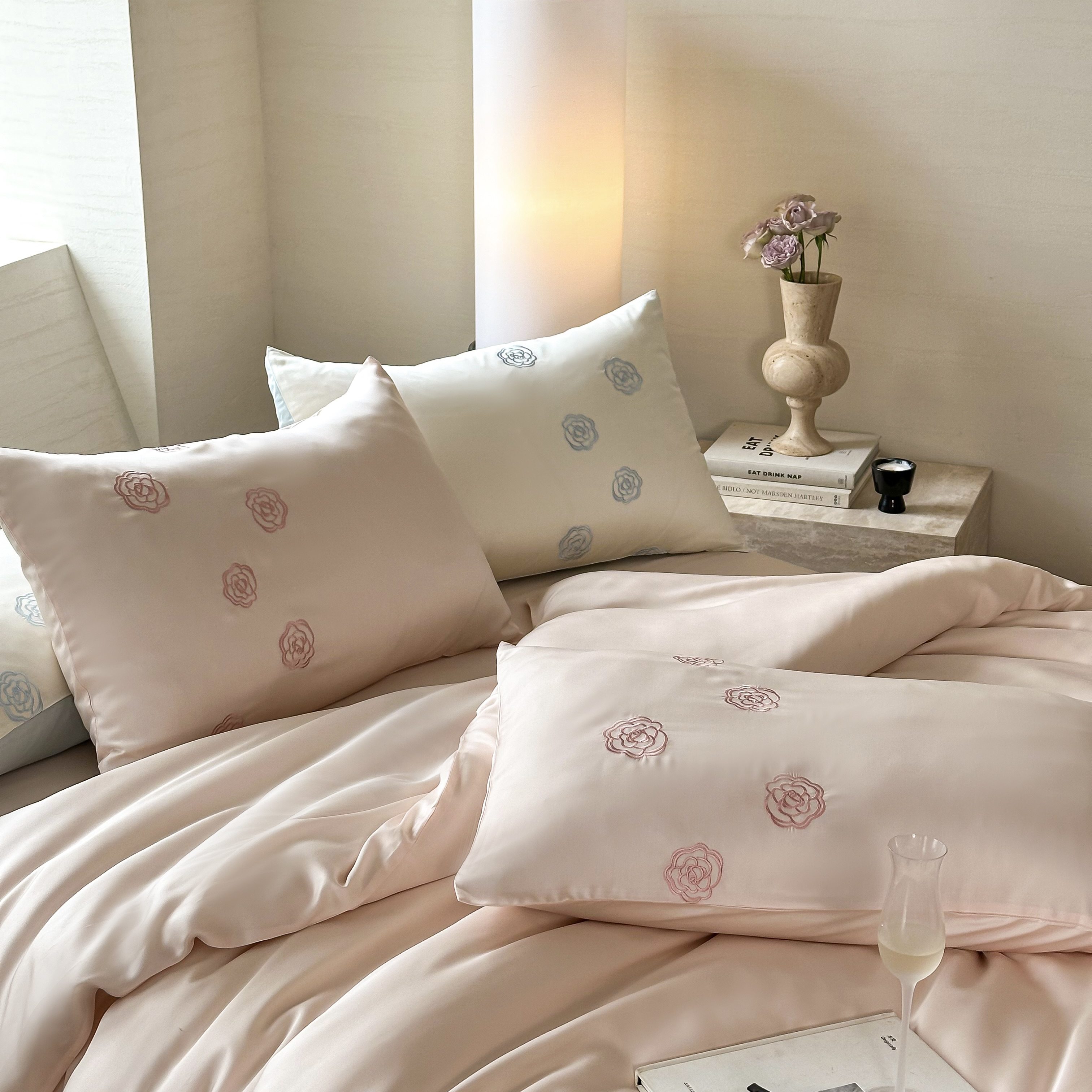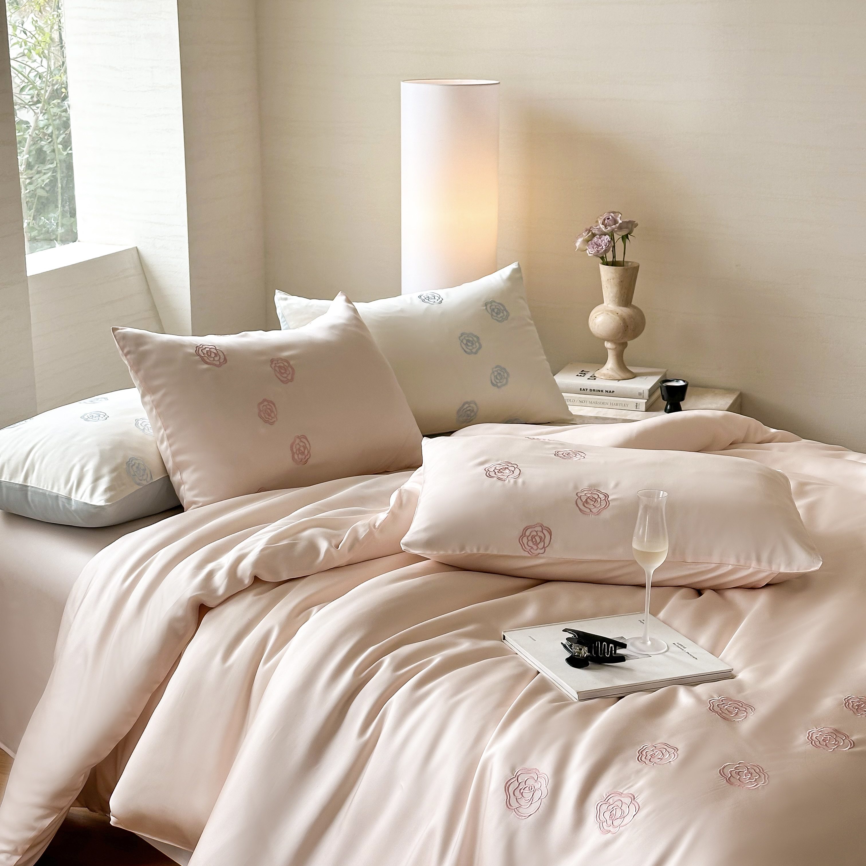 佳汐蓝家纺 2025春夏新款60S兰精天丝绣花四件套-玉茗系列 玉茗·珍珠蓝