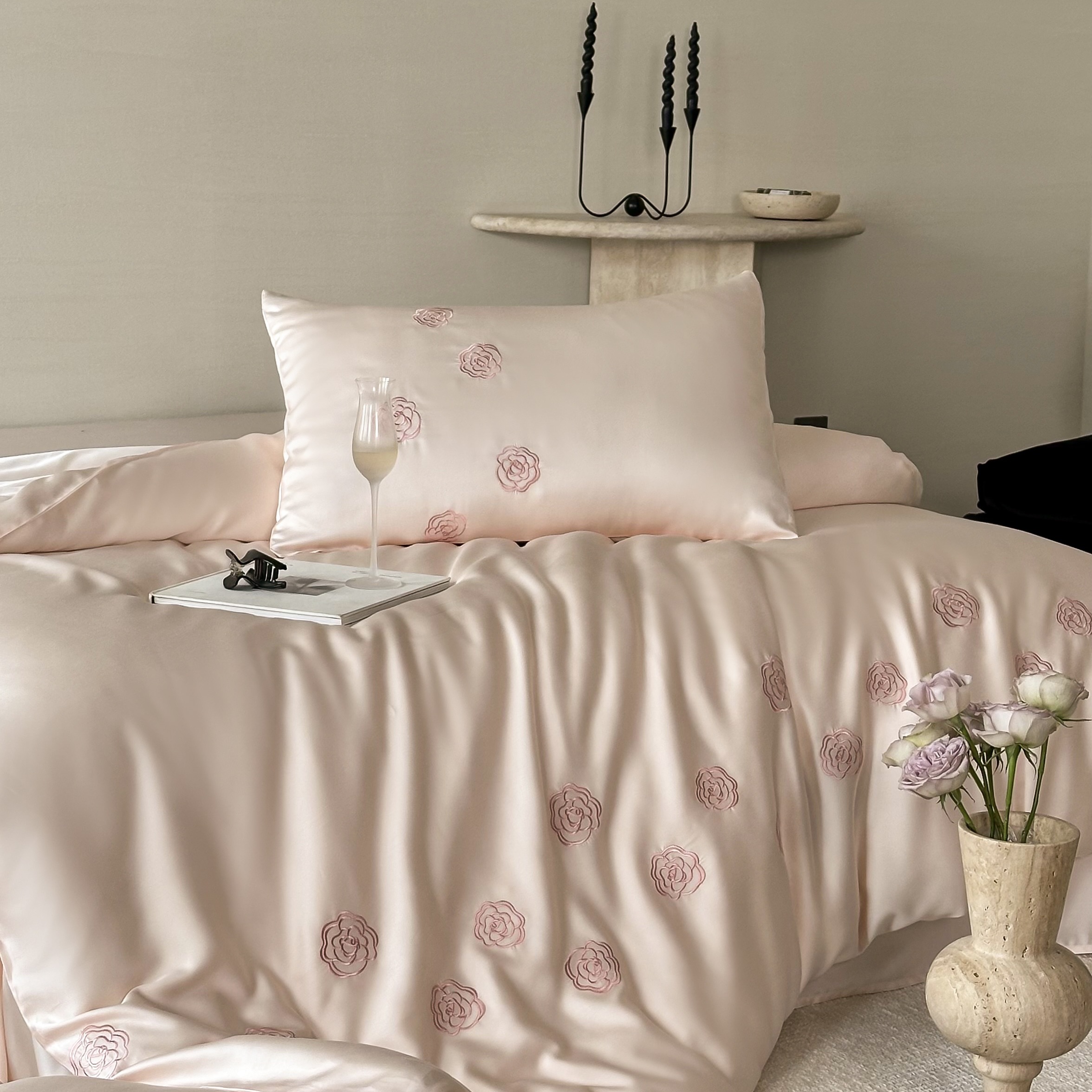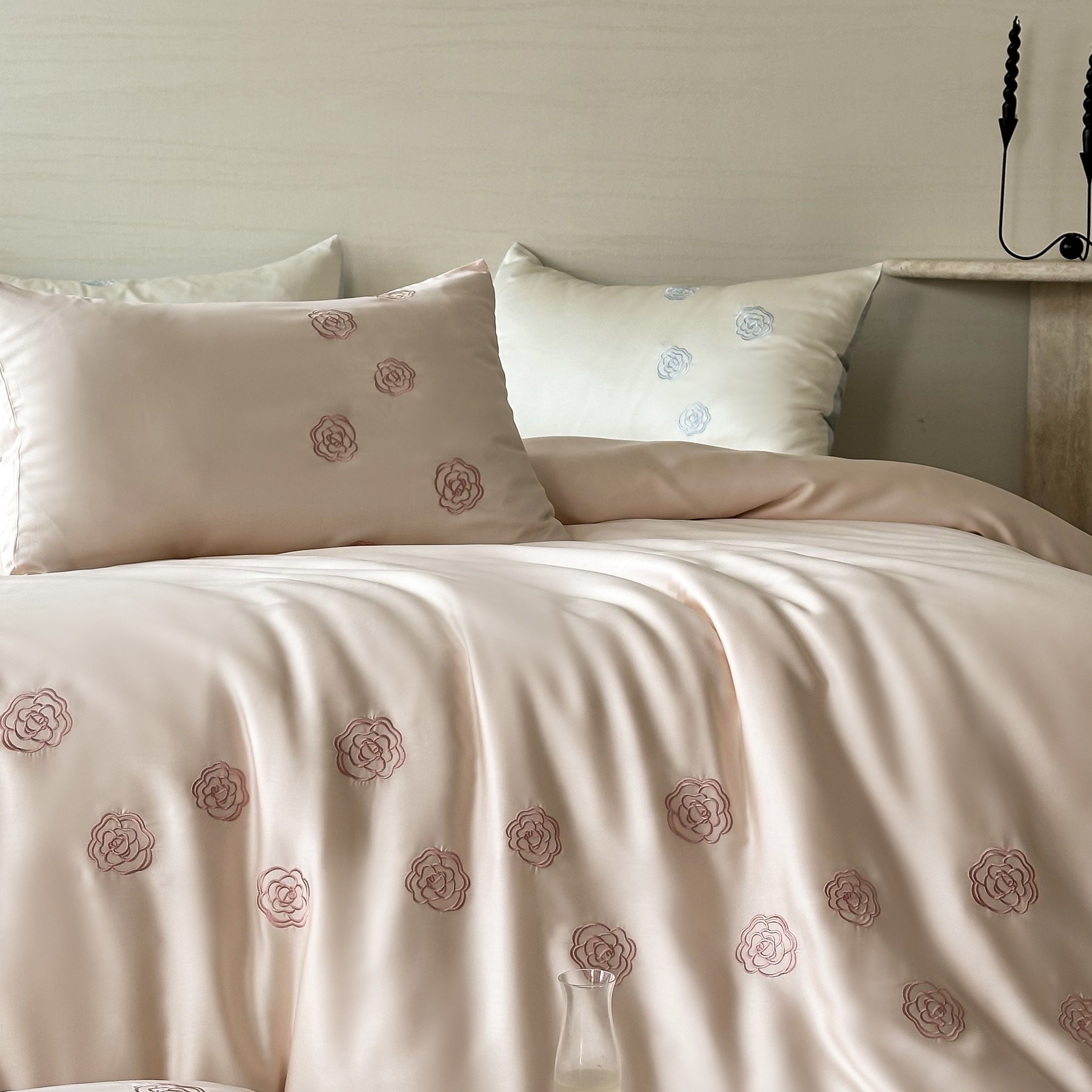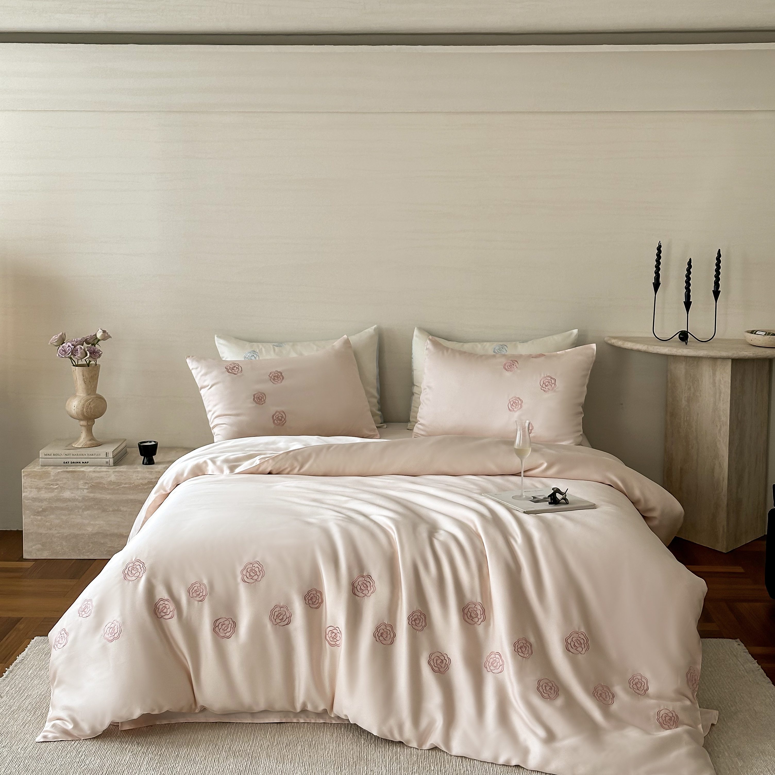 (总)佳汐蓝家纺 2025新款春夏新品TENCEL兰精天丝四件套绣花系列,花颜如梦·珍珠粉,花颜如梦·珍珠绿