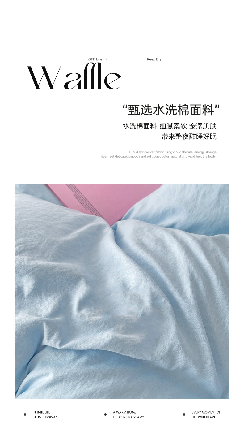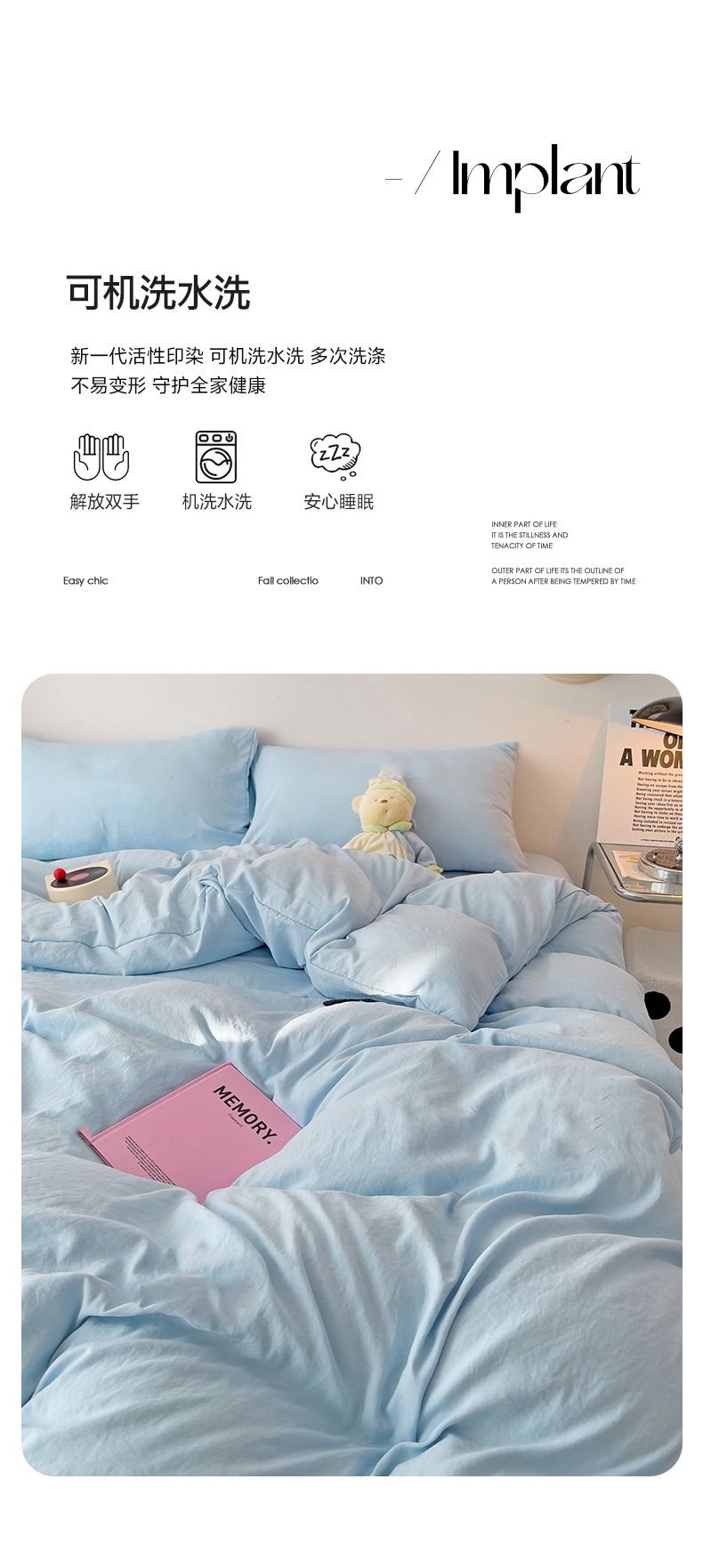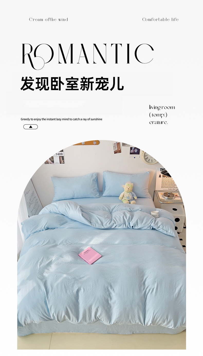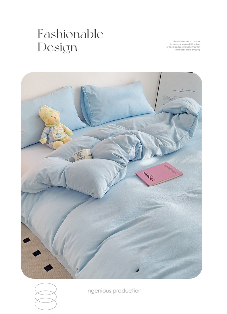 当前位置: 91家纺网 > 商品网购 > 床品套件 > 四件套 > 水洗棉四件套 > 艾特你 2025新款简约纯色水洗棉四件套 时尚简约-蓝