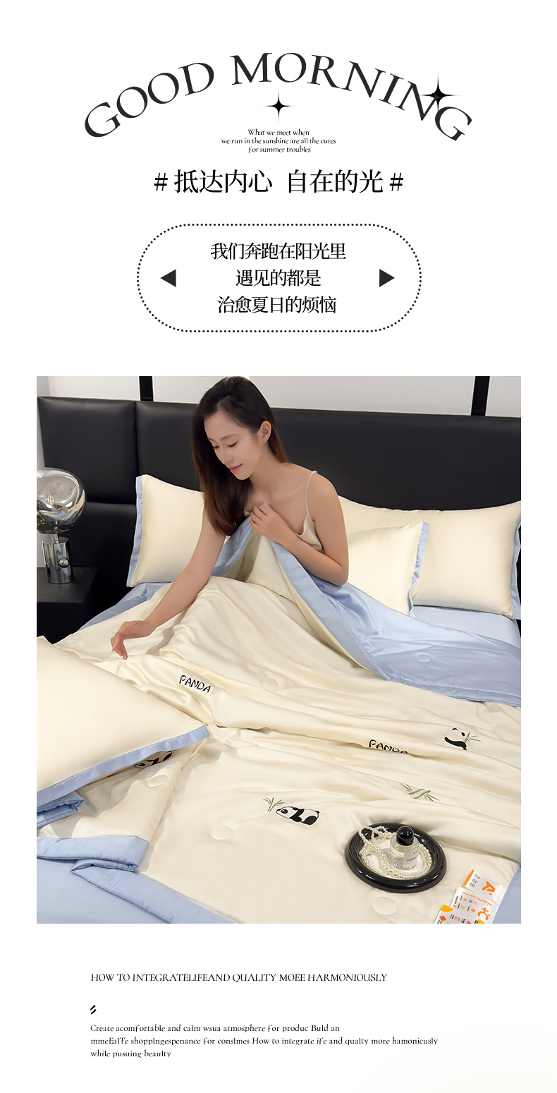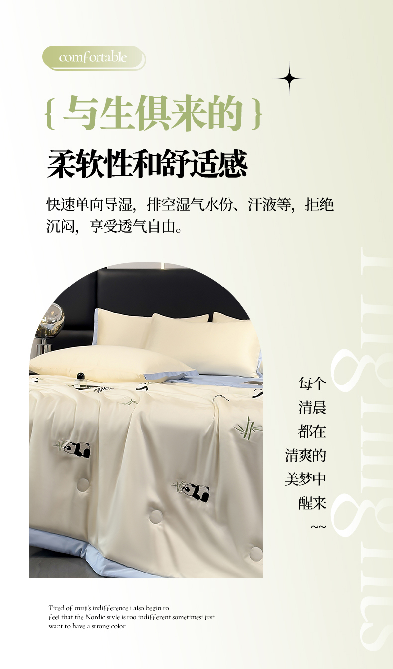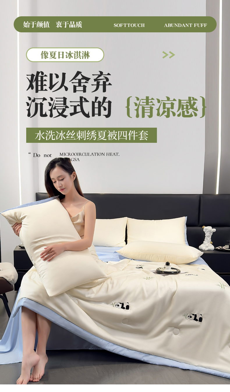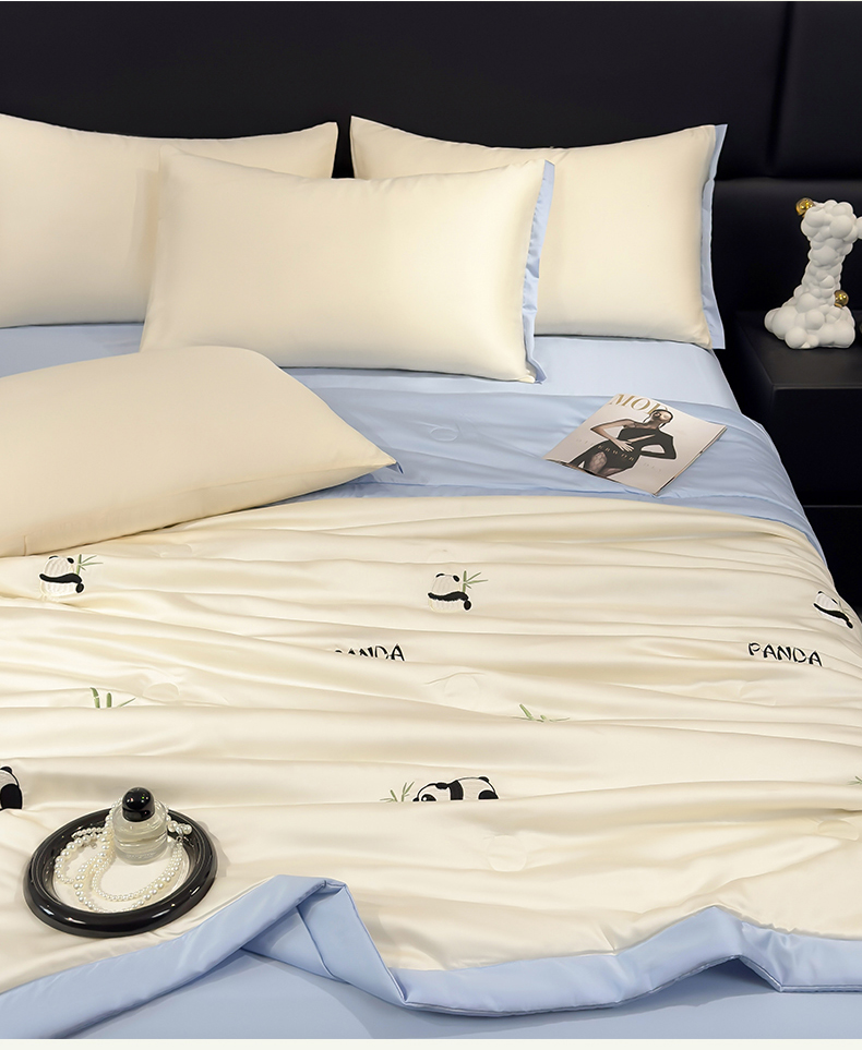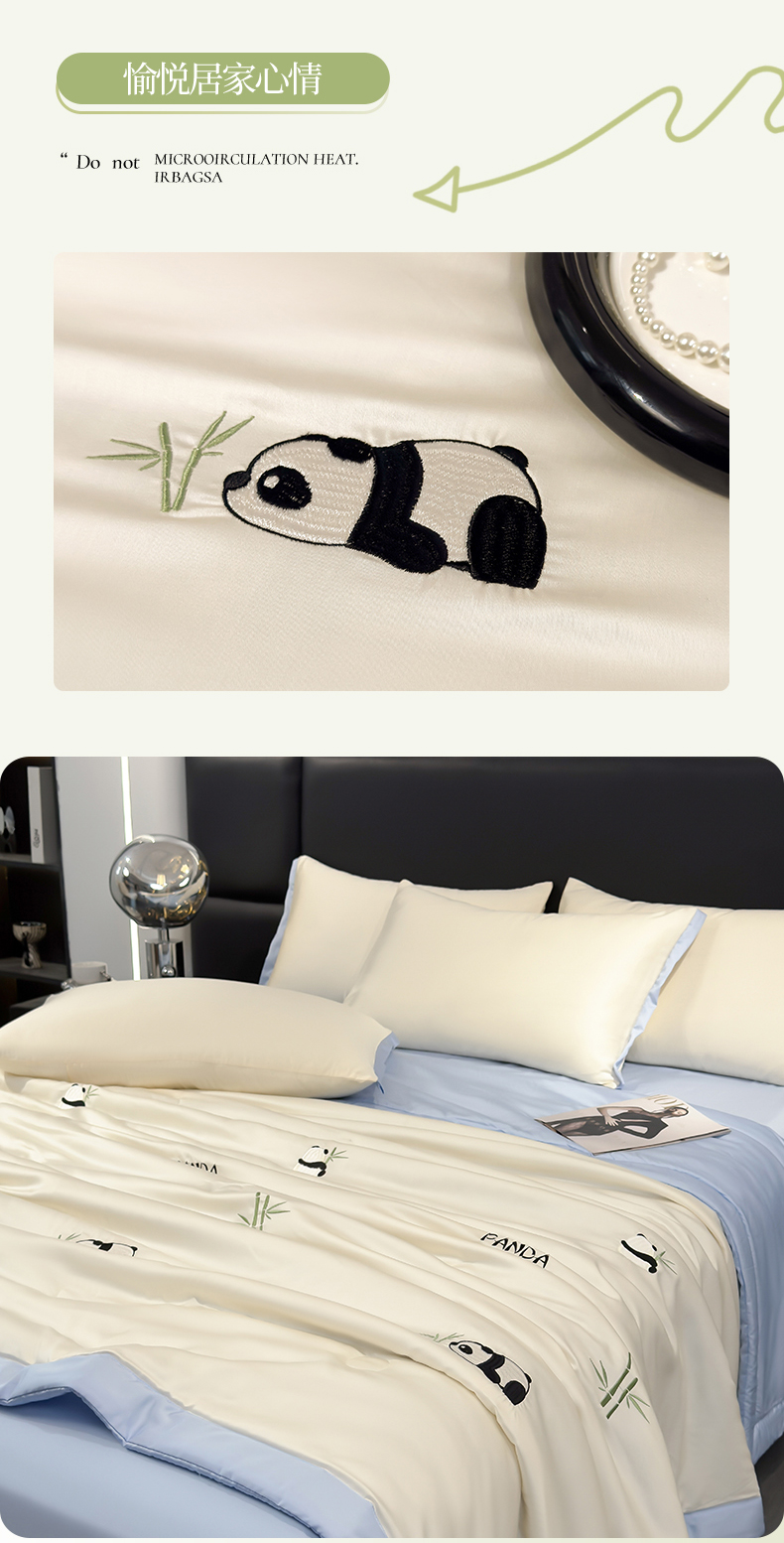 商品名称:(总)雨洋家纺 2025新款清凉舒适水洗冰丝刺绣夏被四件套 熊猫