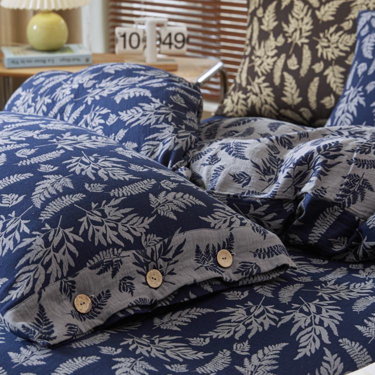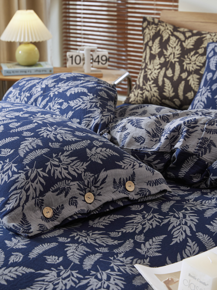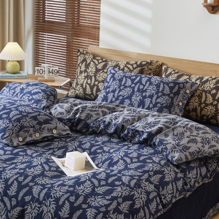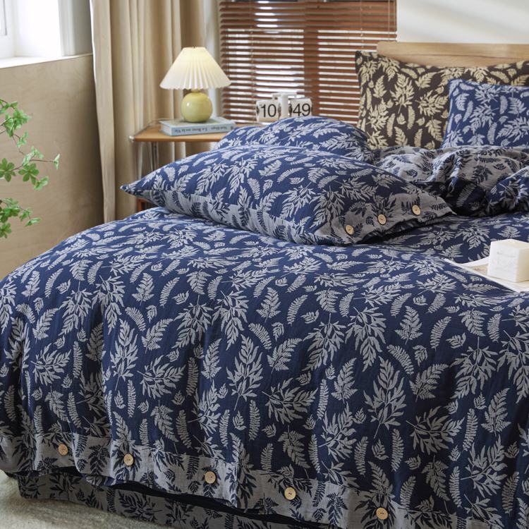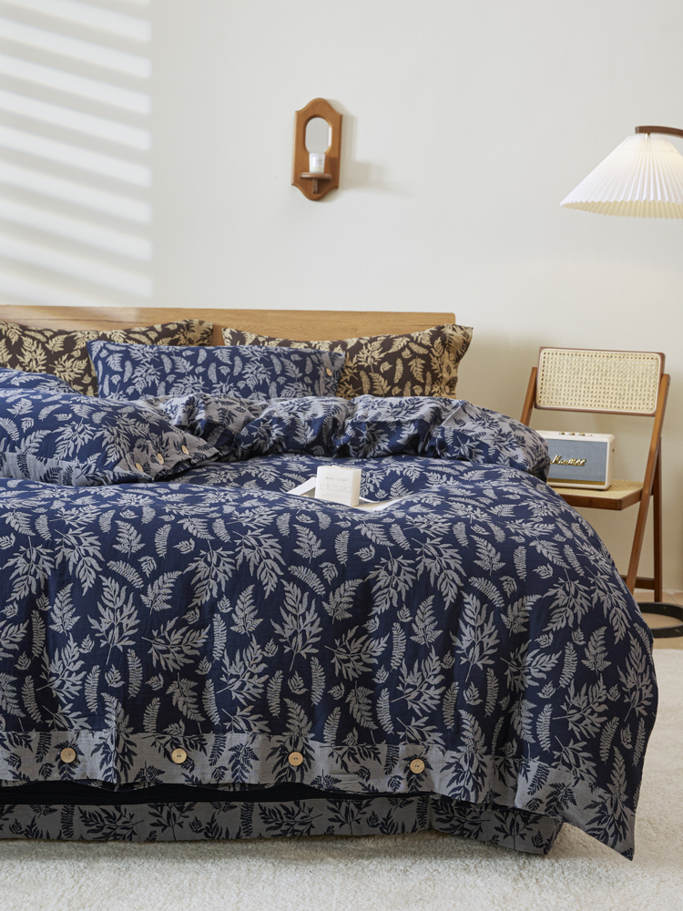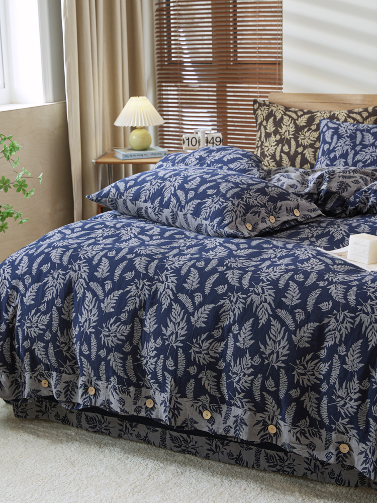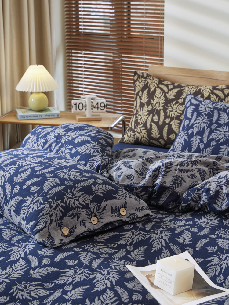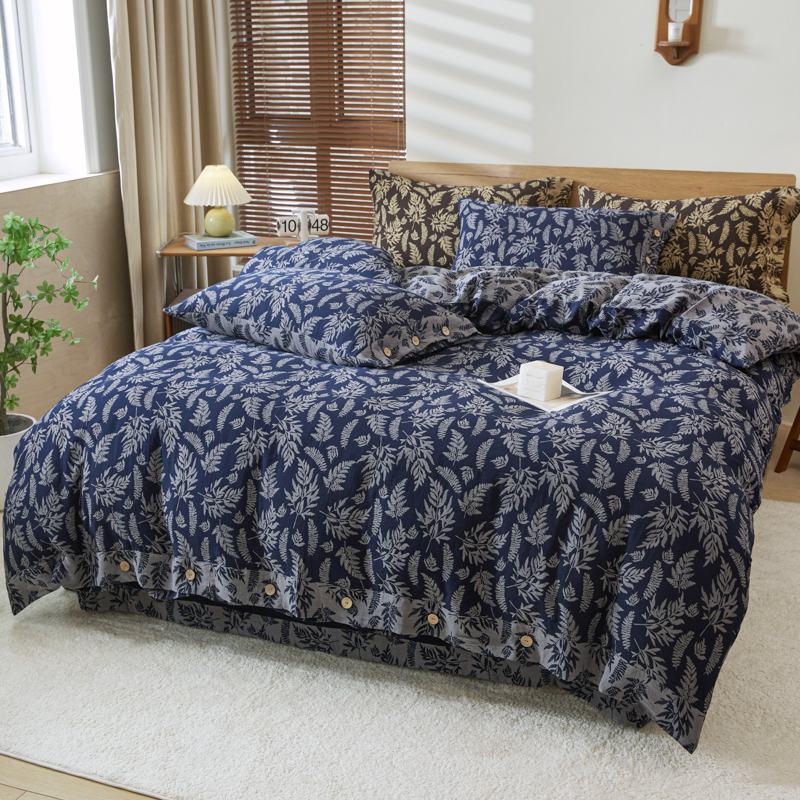 商品名称:2025新款全棉色织双层纱纽扣款四件套 扶苏-深兰