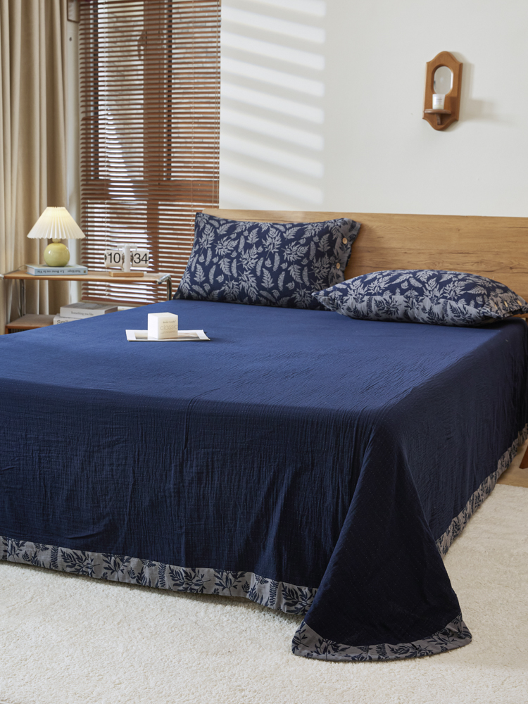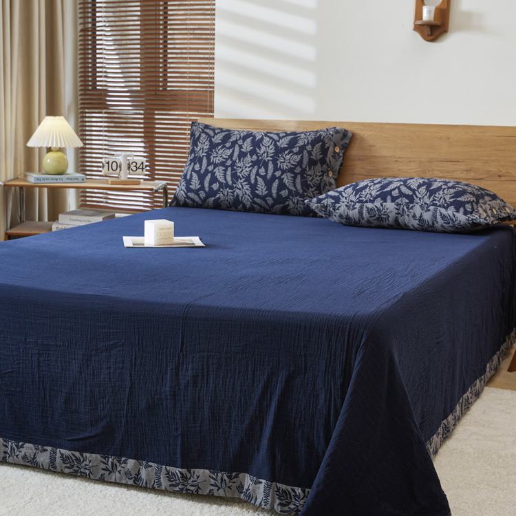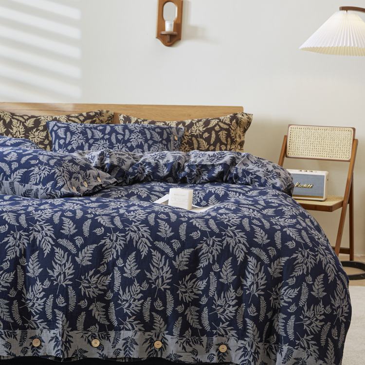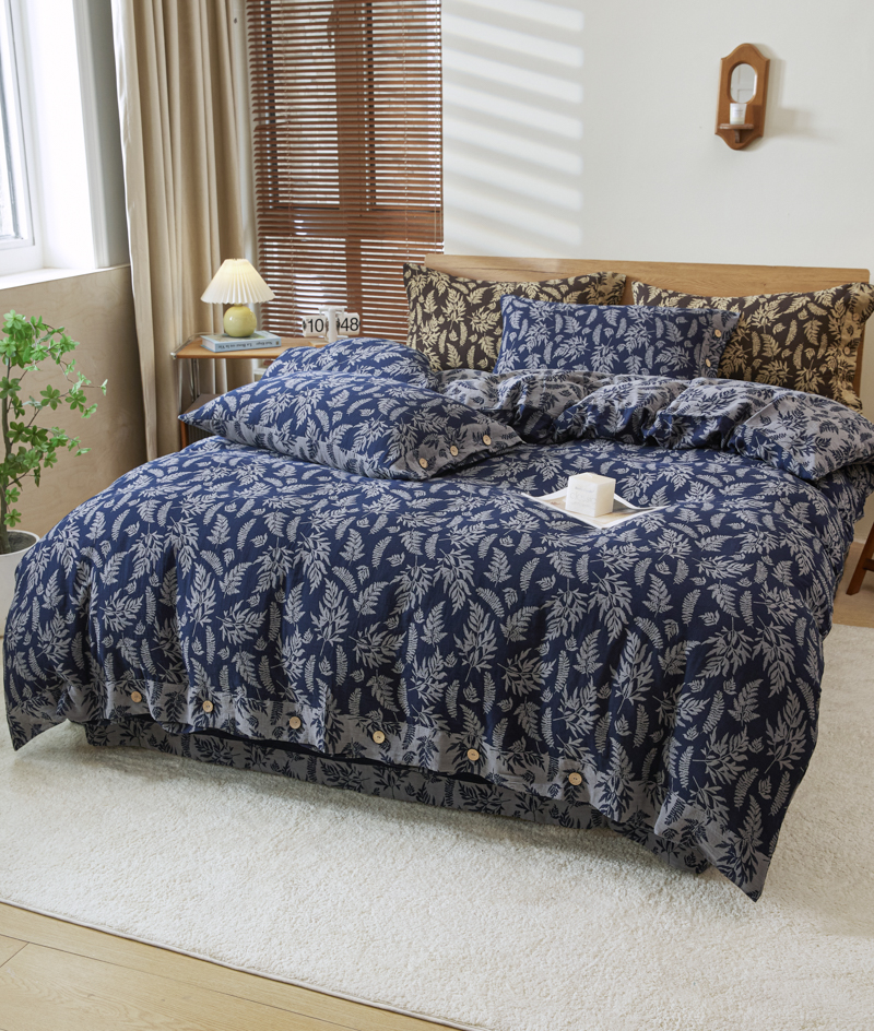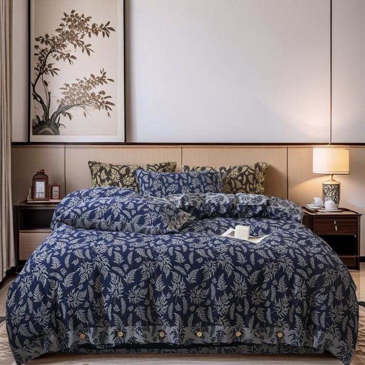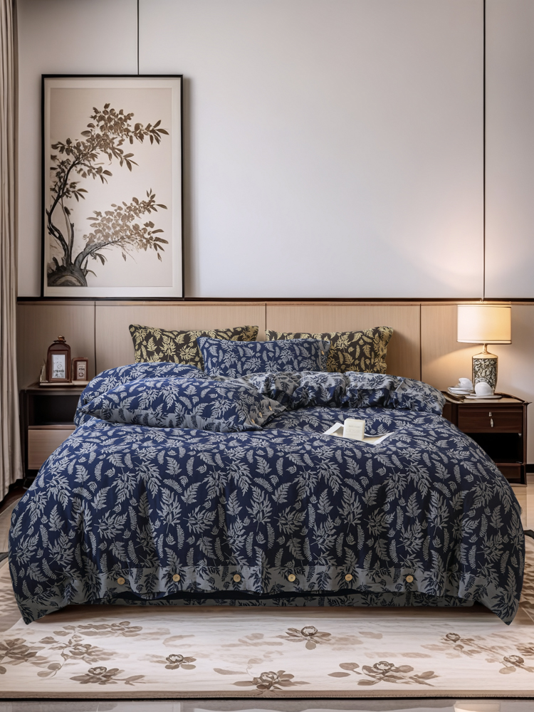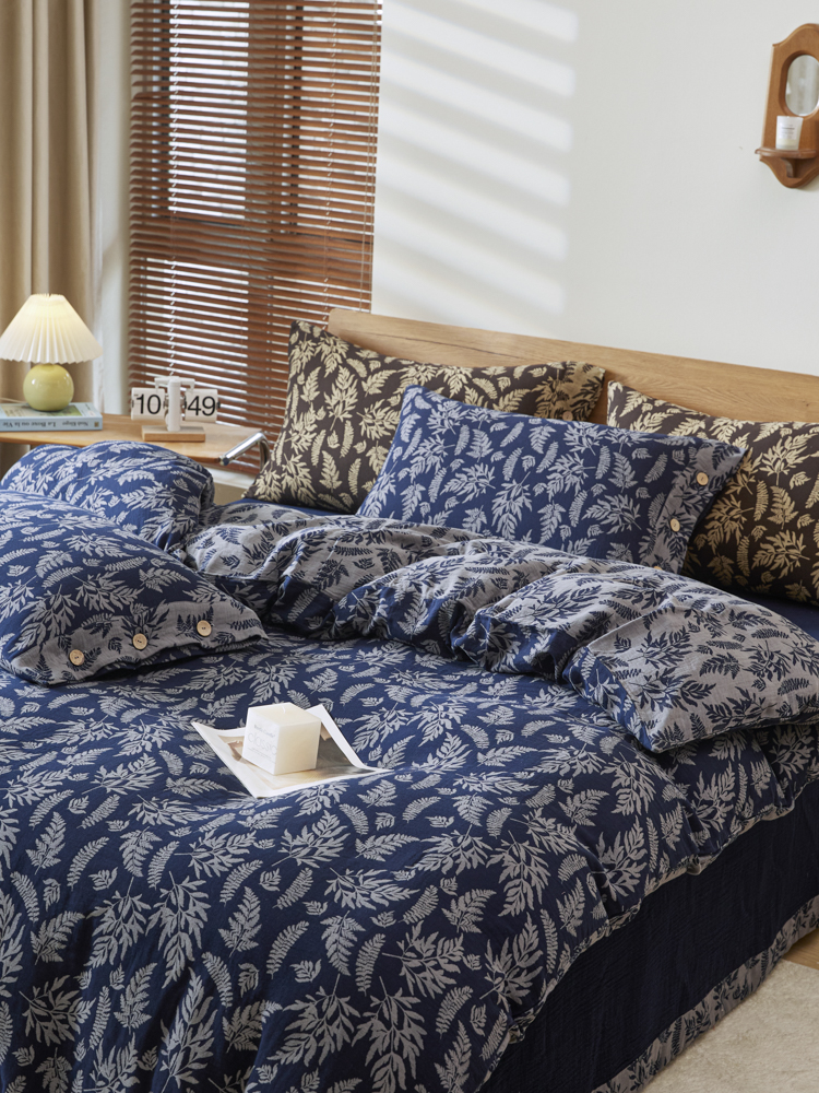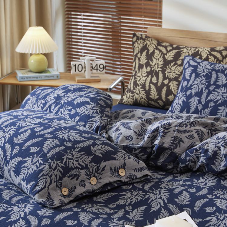 商品名称:2025新款全棉色织双层纱纽扣款四件套 扶苏-深兰