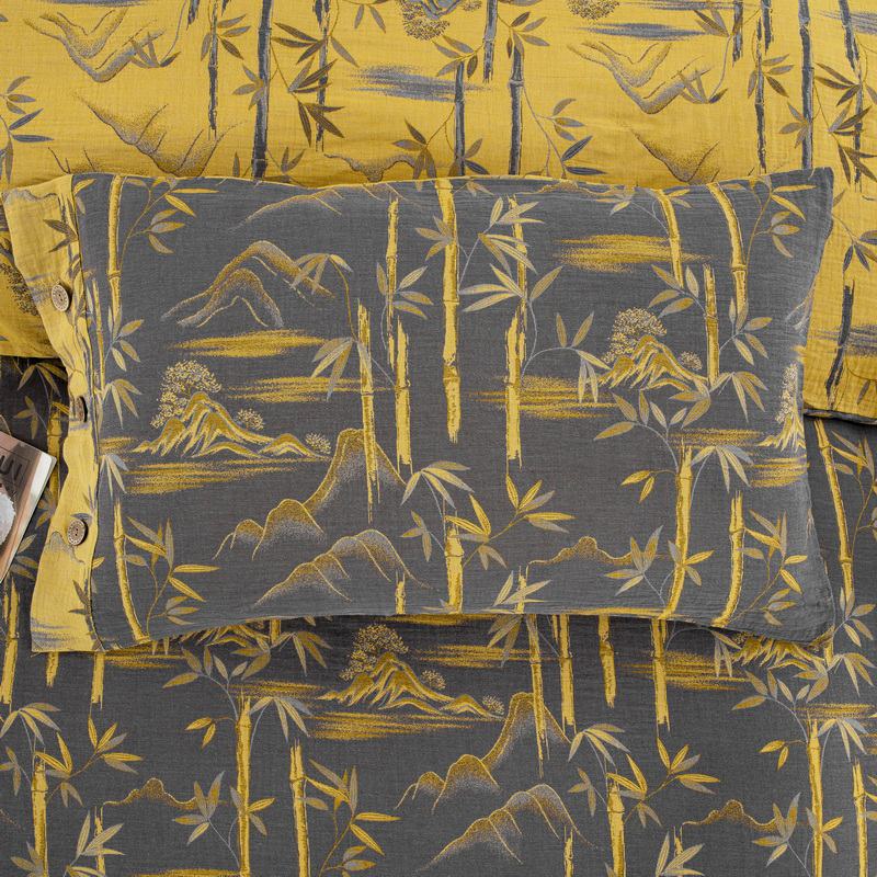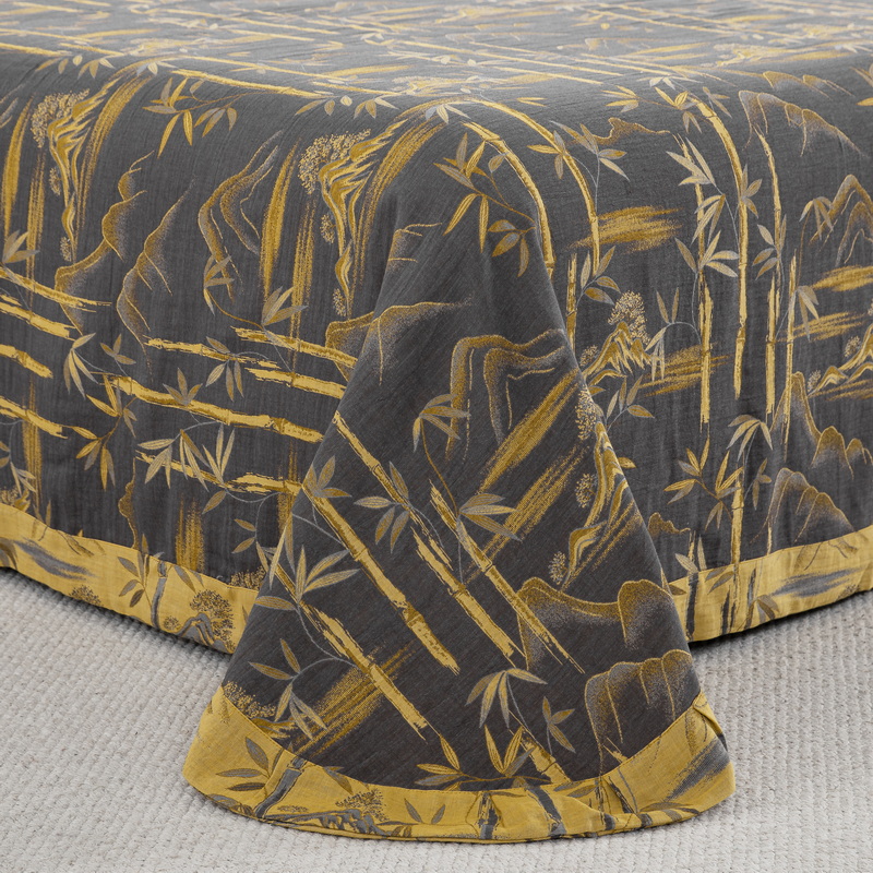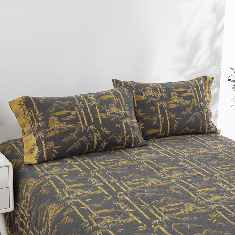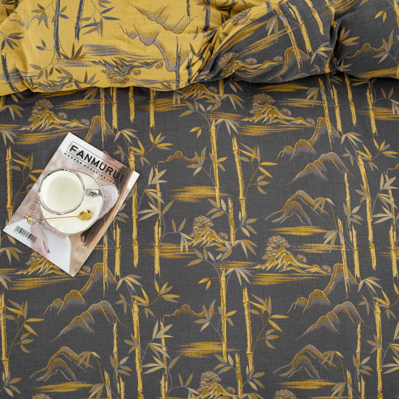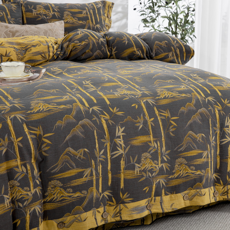 2025新款全棉色织双层纱纽扣款四件套 竹报平安-黑金