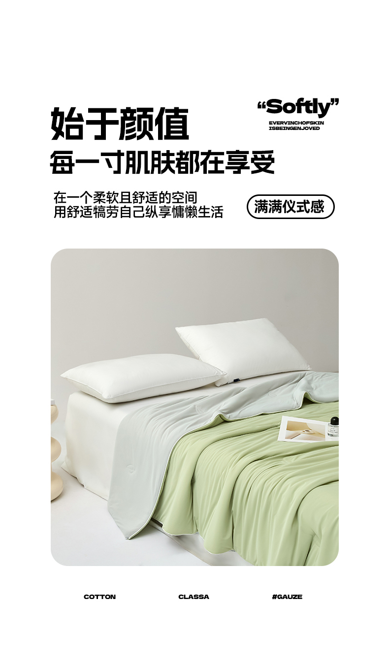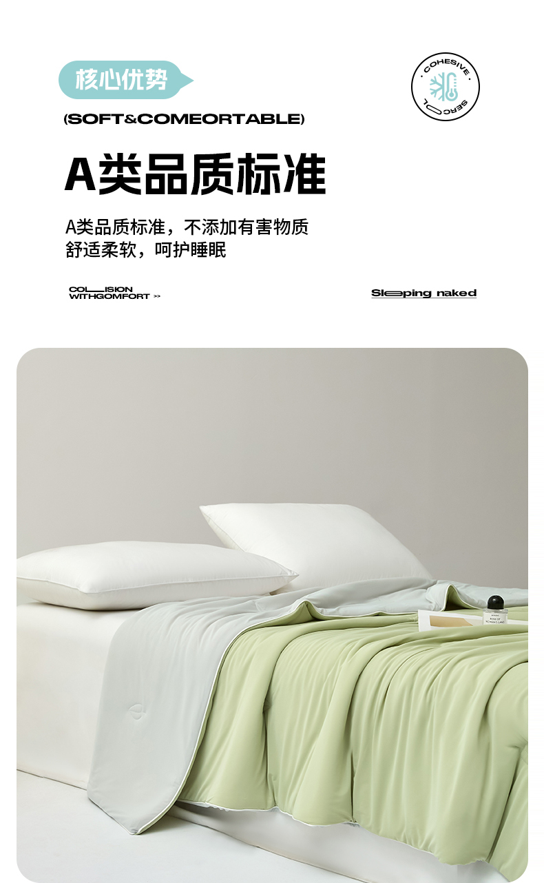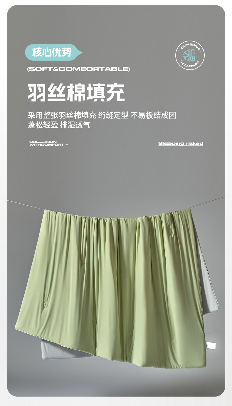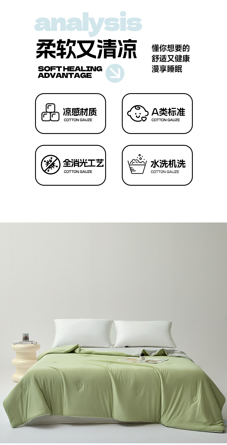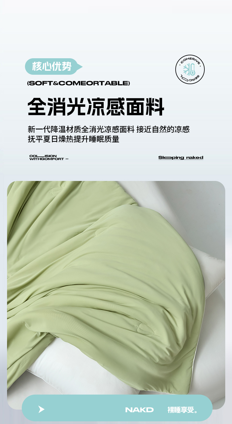 商品名称:欧邦 2025新款全消光冰皮凉感锦氨夏被 双拼-绿灰