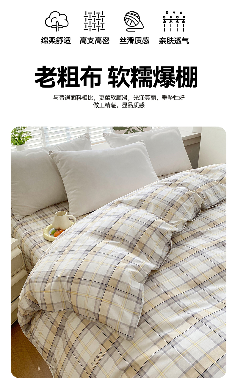 商品名称:凯磊2025新款老粗布印花四件套 暖格舒居