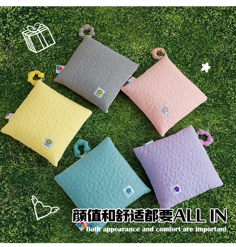 (总)2025新款无印风手提款开心兔系列抱枕被,开心兔粉色,开心兔蓝色,开心兔香草色,开心兔烟灰色