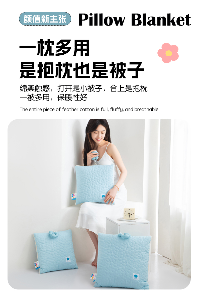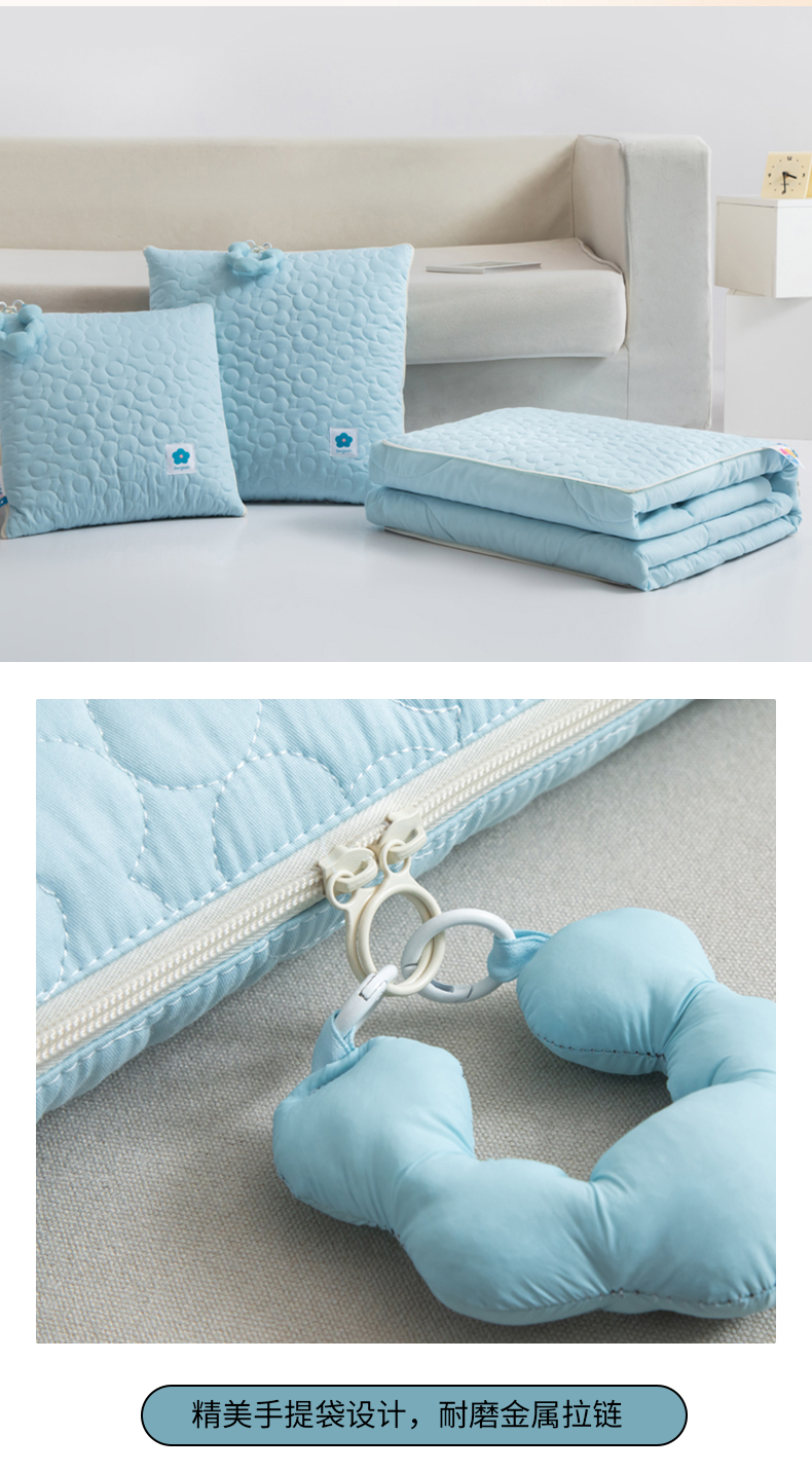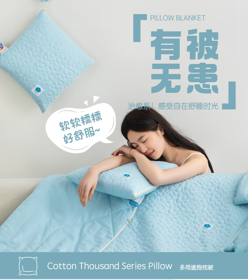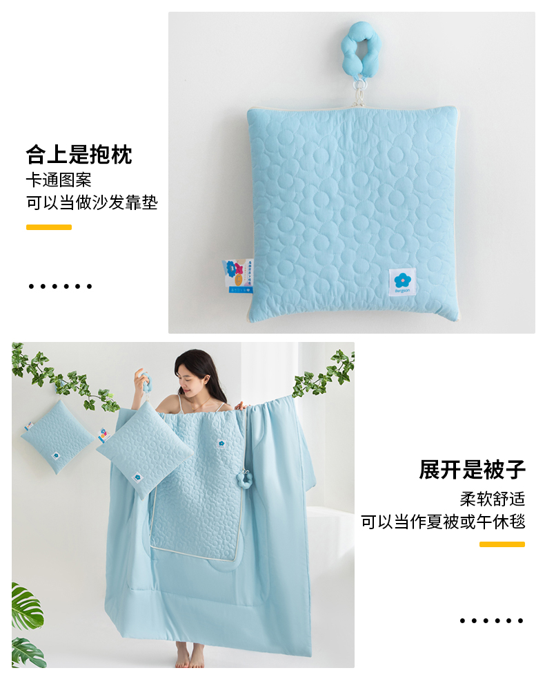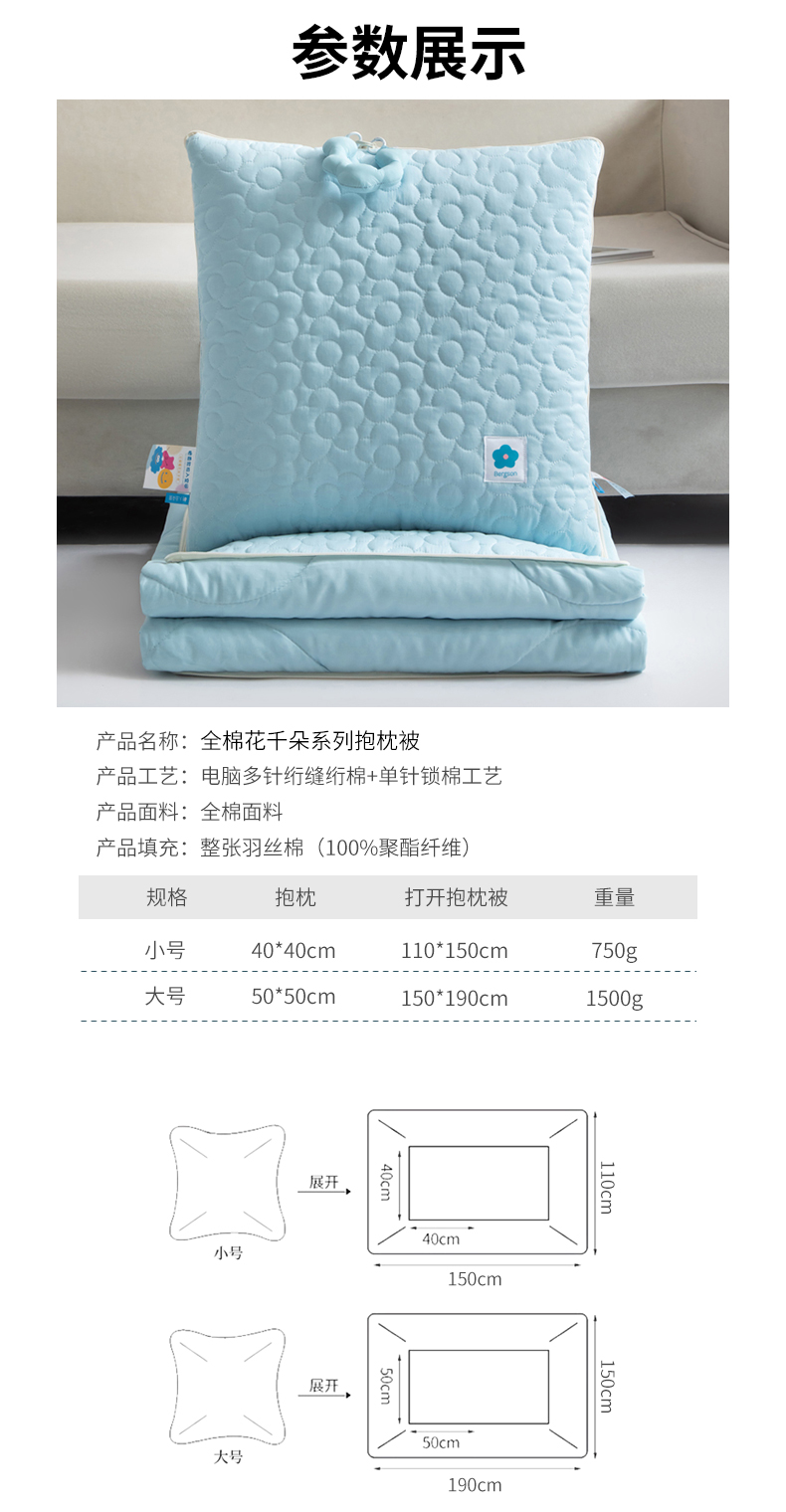 商品名称:雷娜家居 2025新款全棉花千朵系列抱枕被 天蓝色