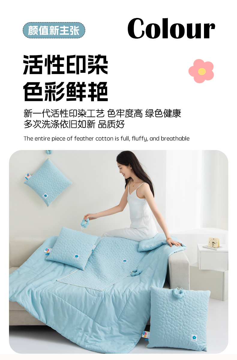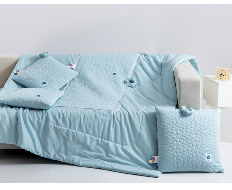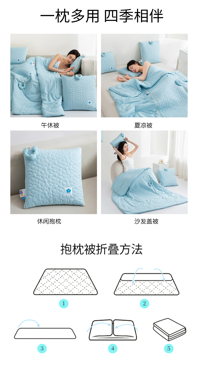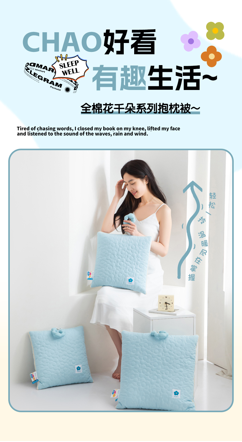 商品名称:雷娜家居 2025新款全棉花千朵系列抱枕被 天蓝色