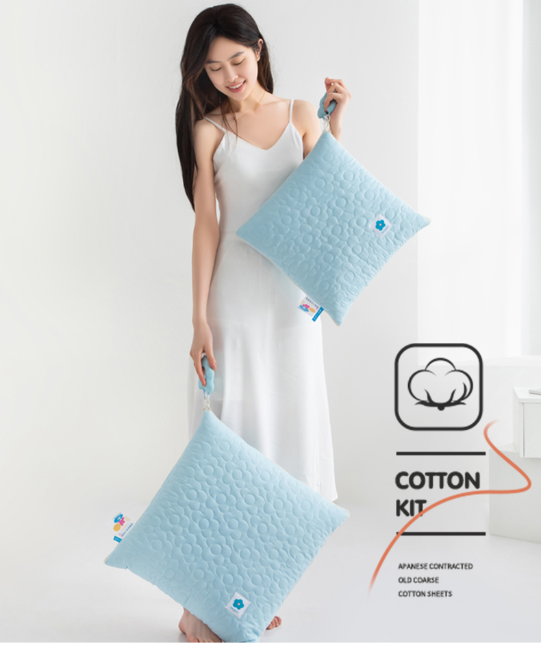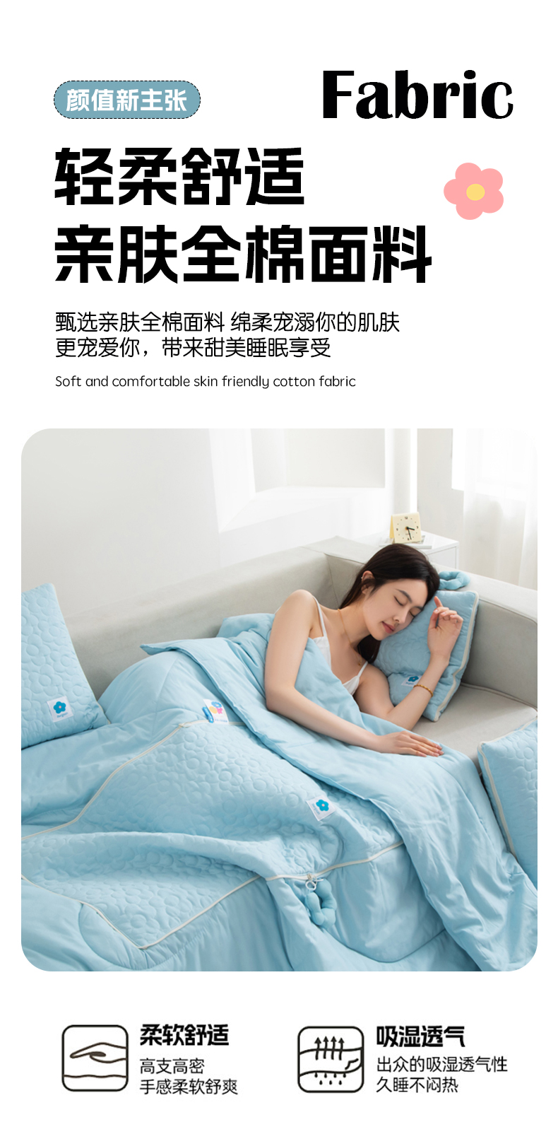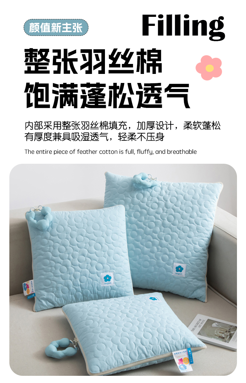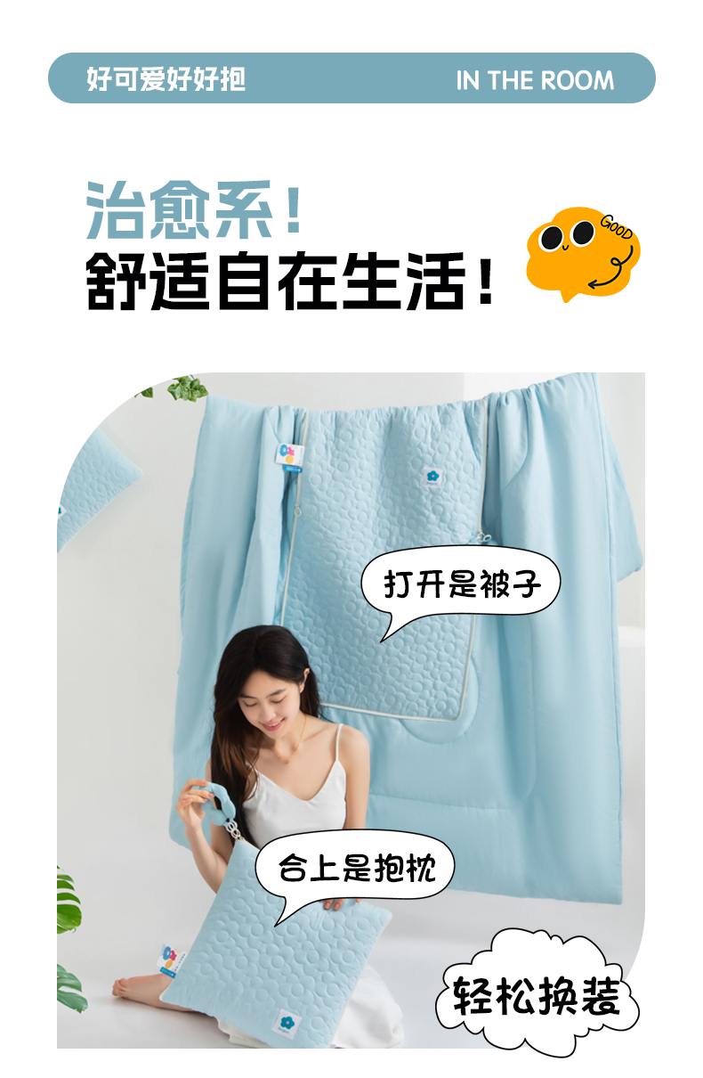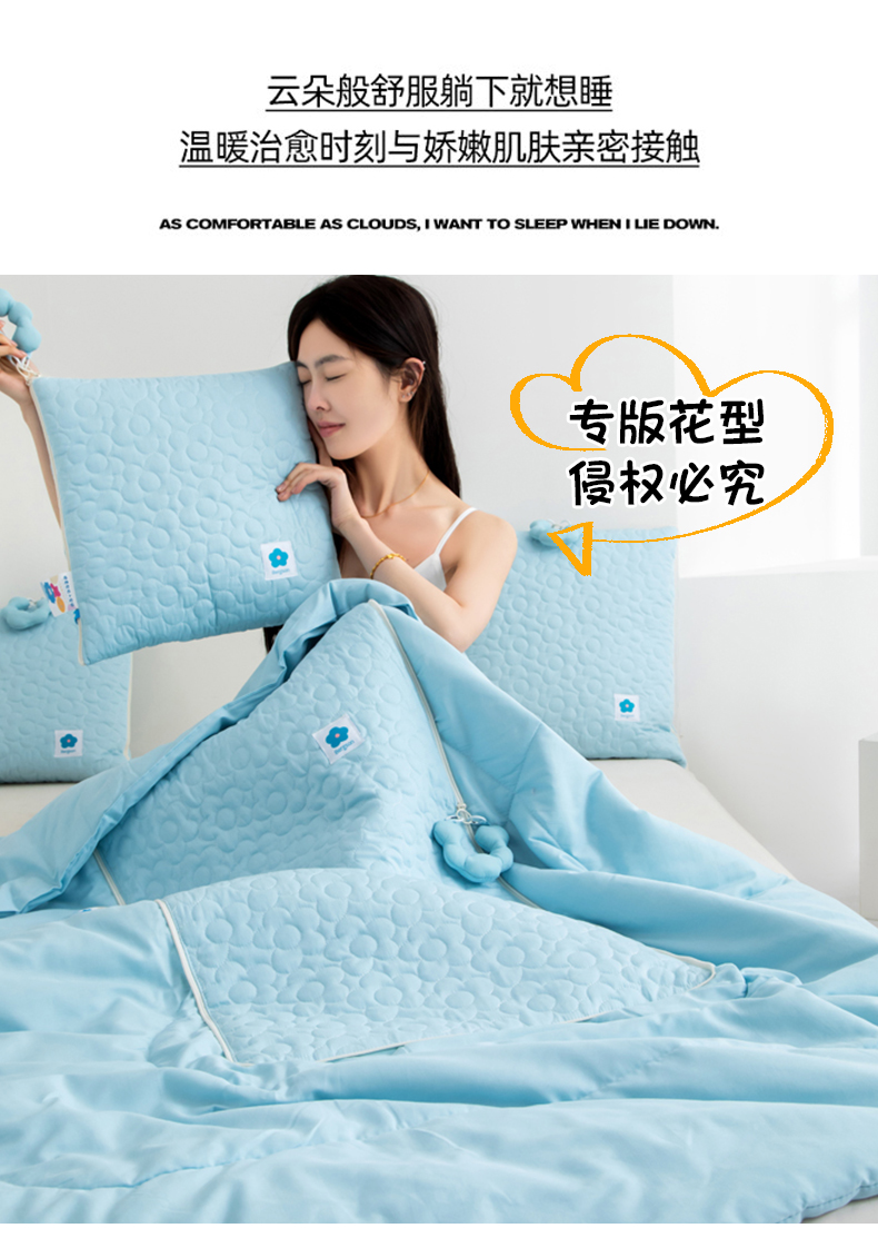 商品名称:雷娜家居 2025新款全棉花千朵系列抱枕被 天蓝色