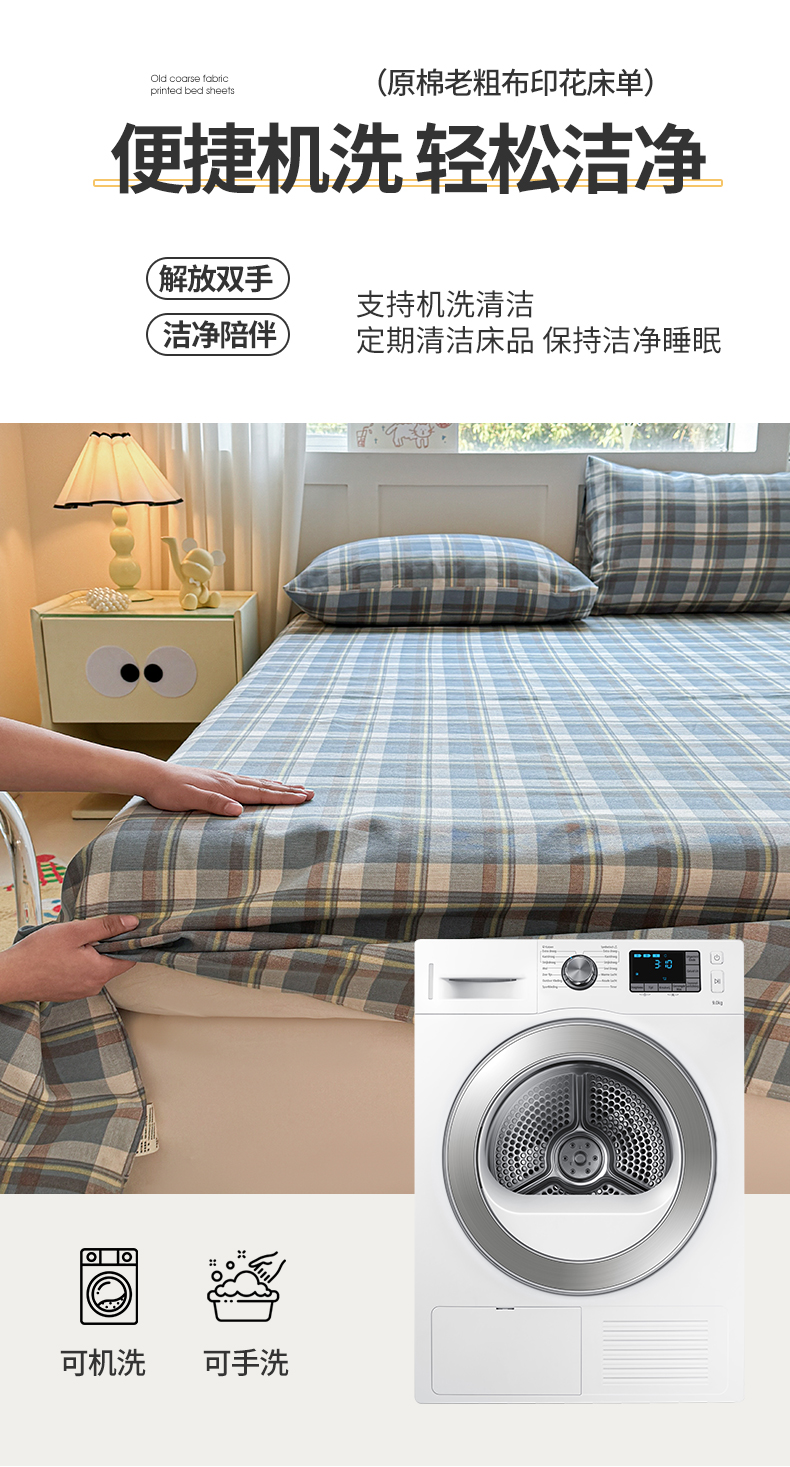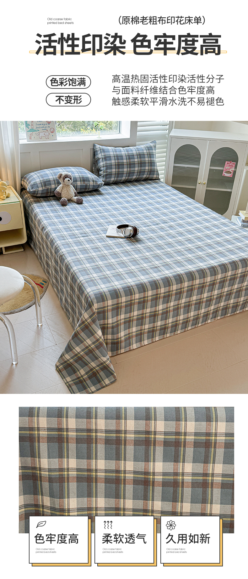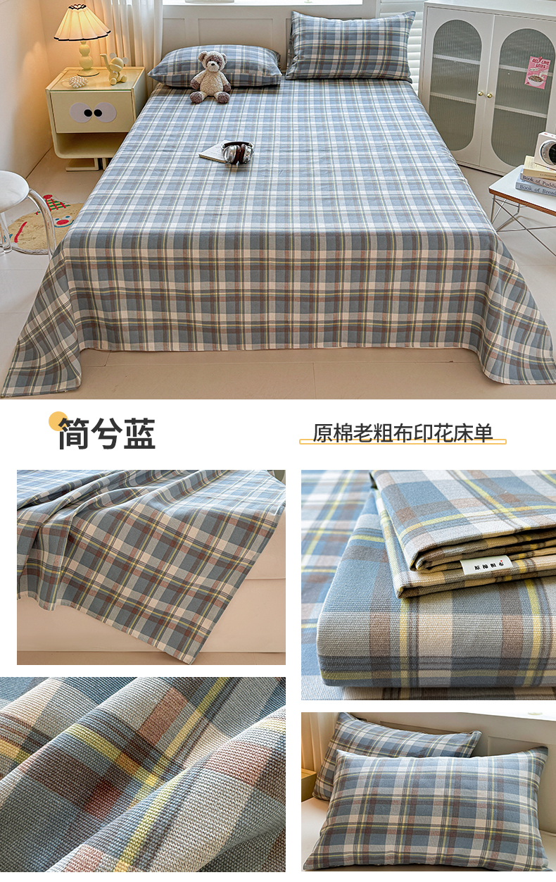 晓时候 2025原棉老粗布床单凉席三件套软凉席子单床单2025新款老粗布床单 简兮蓝