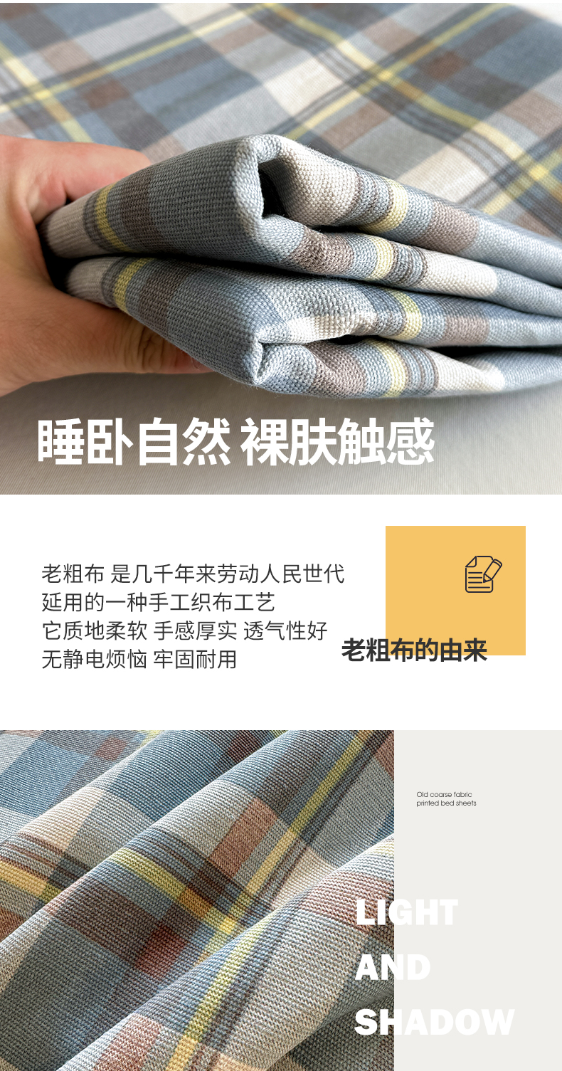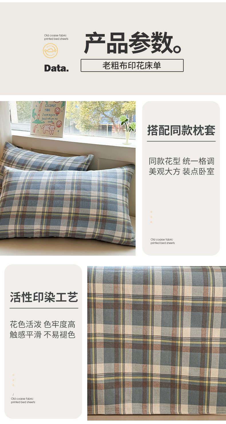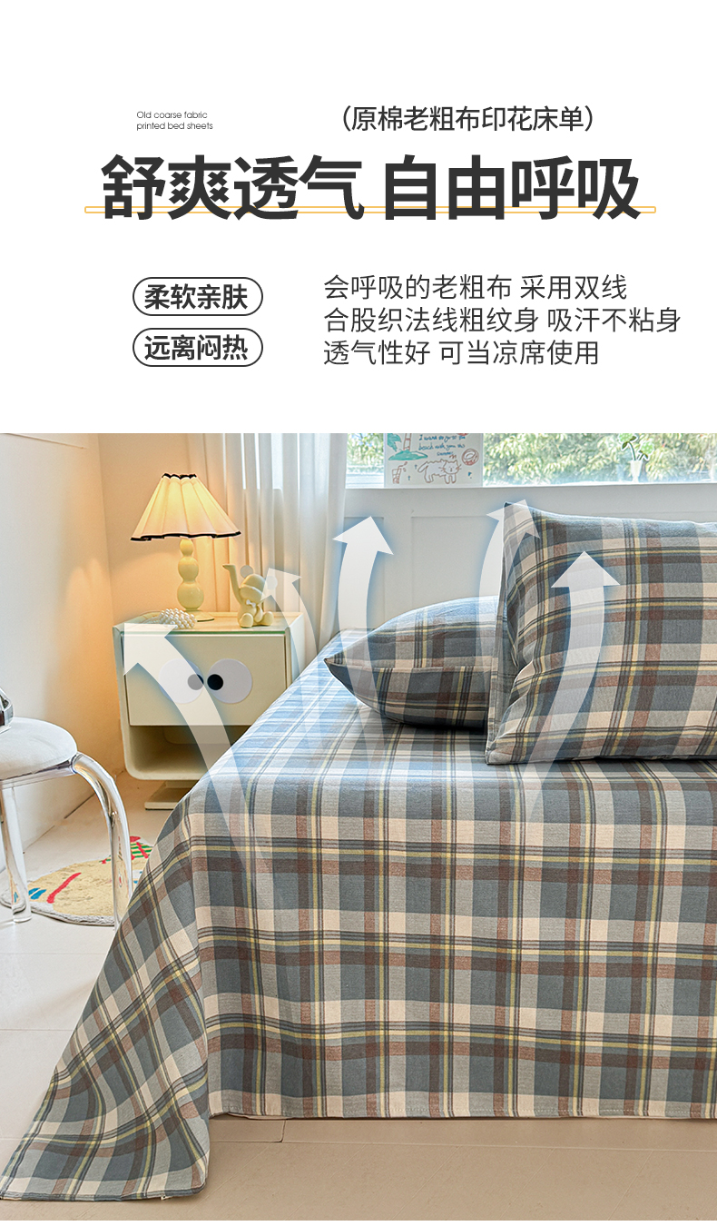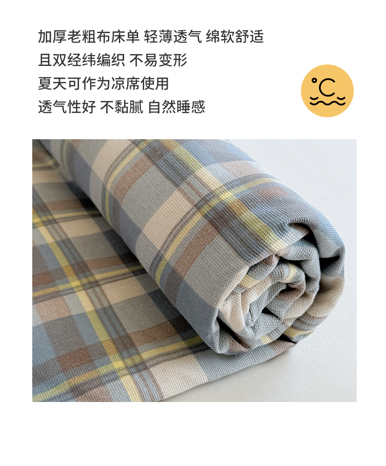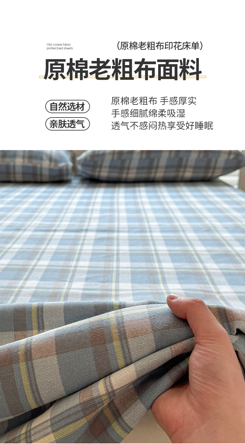 • 91家纺网 家纺一手货源 找家纺 晓时候 2025原棉老粗布床单凉席三件套软凉席子单床单 简兮蓝