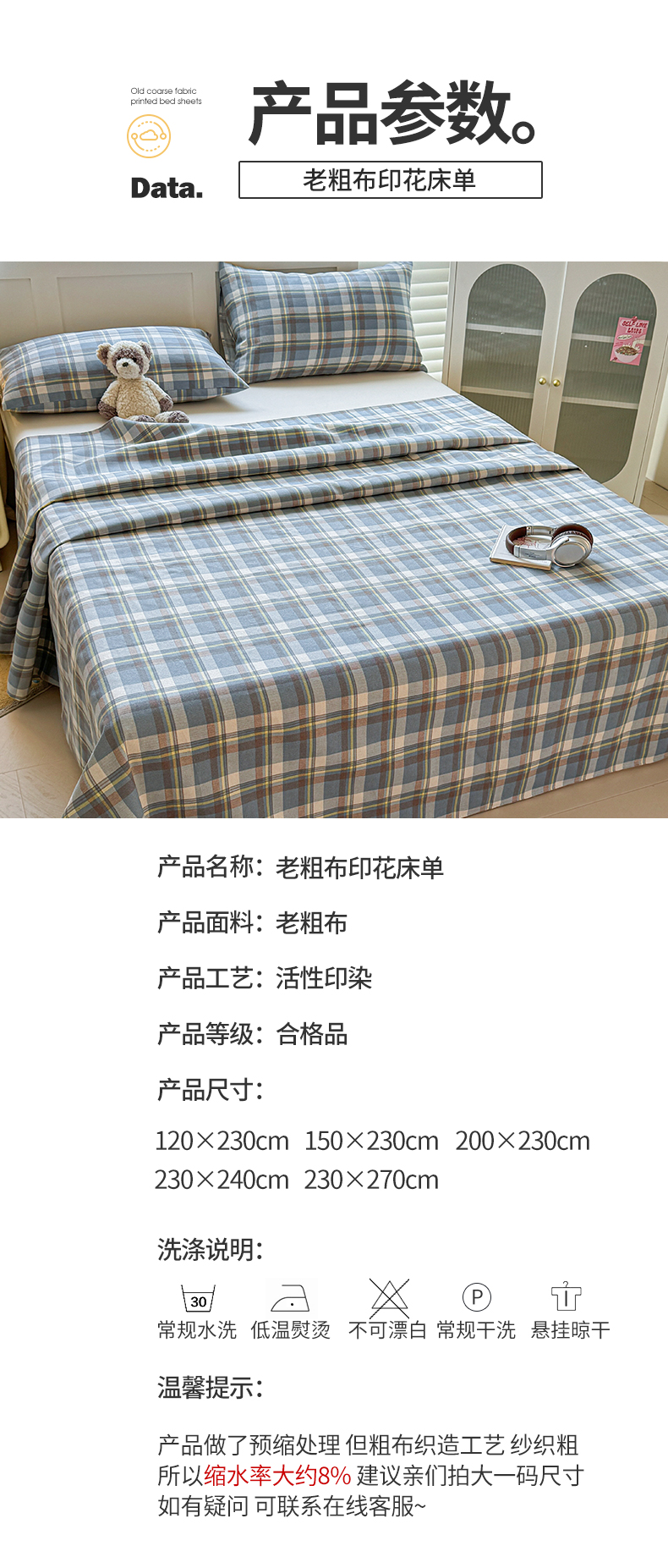 当前位置: 91家纺网 > 商品网购 > 床上用品 > 床单 > 晓时候 2025原棉老粗布床单凉席三件套软凉席子单床单2025新款老粗布床单 简兮蓝