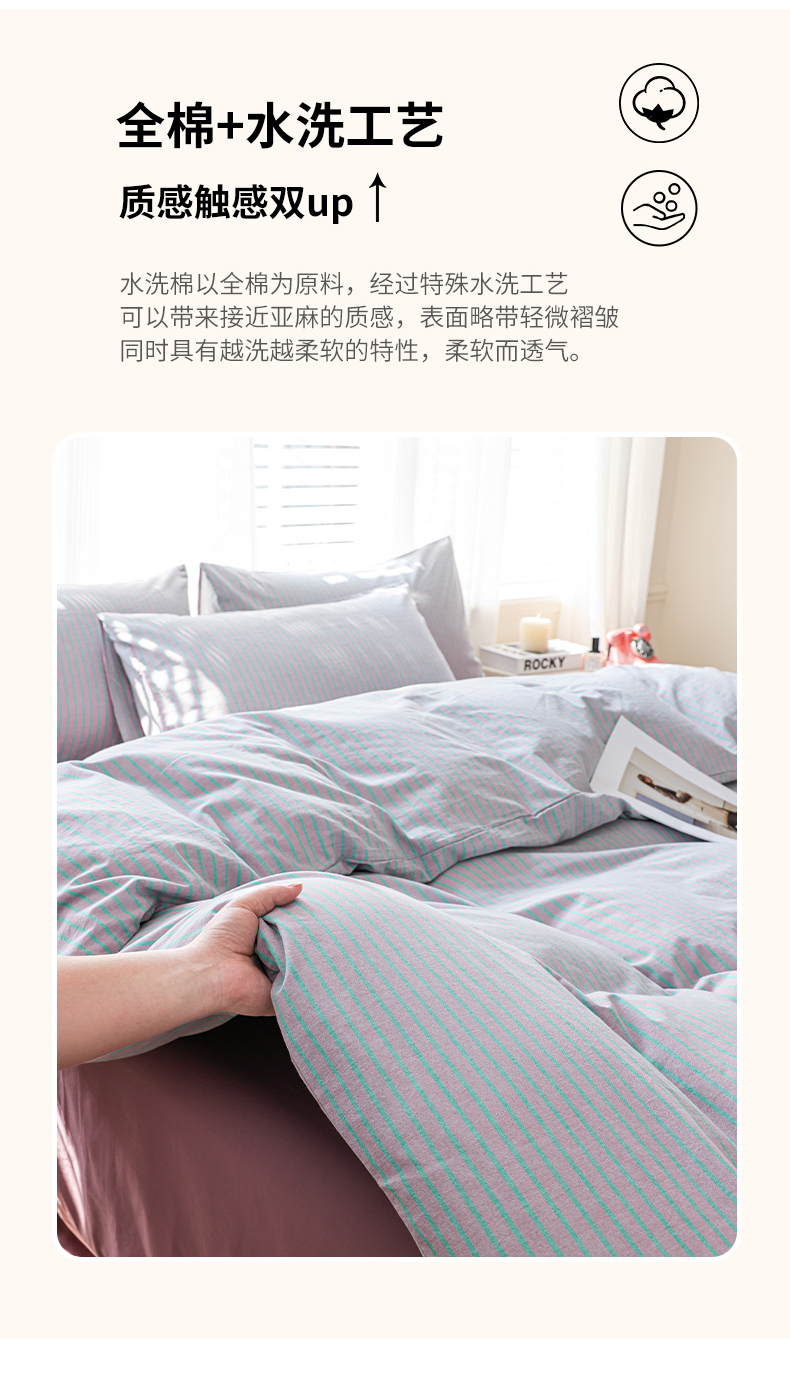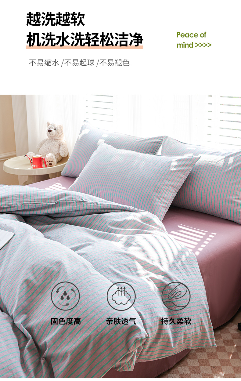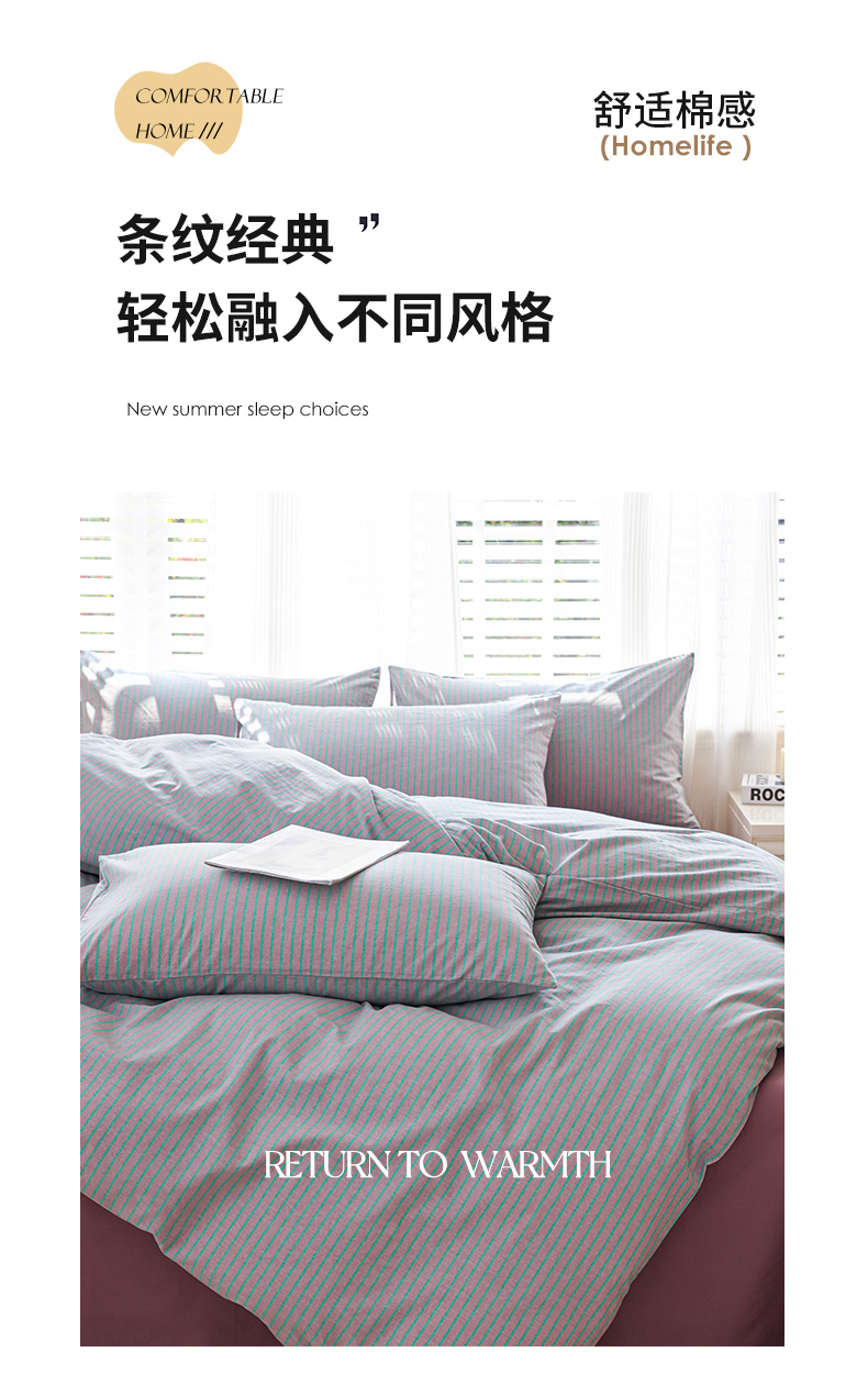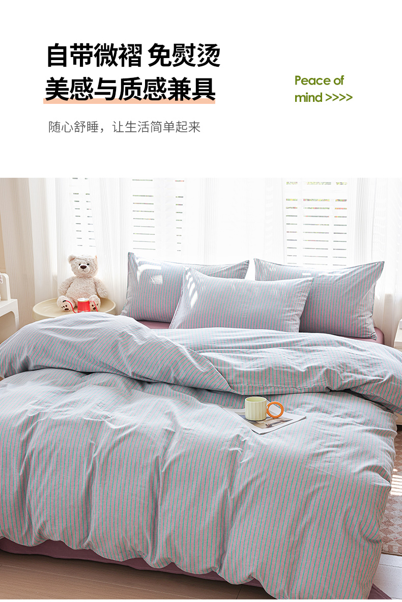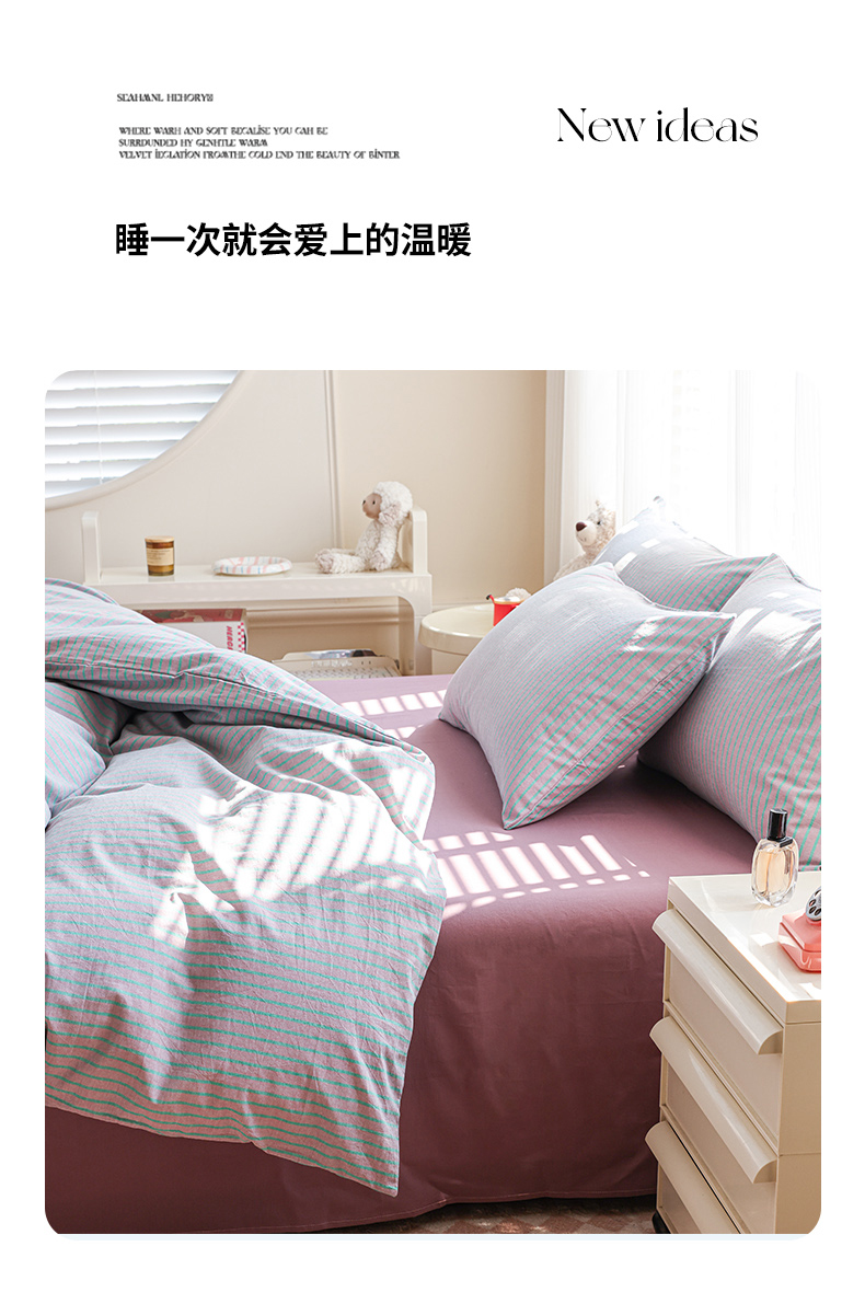 当前位置: 91家纺网 > 商品网购 > 床品套件 > 四件套 > 全棉普通四件套 > 柠萌家居 2025年新款色织条纹水洗棉全棉四件套 粉紫条