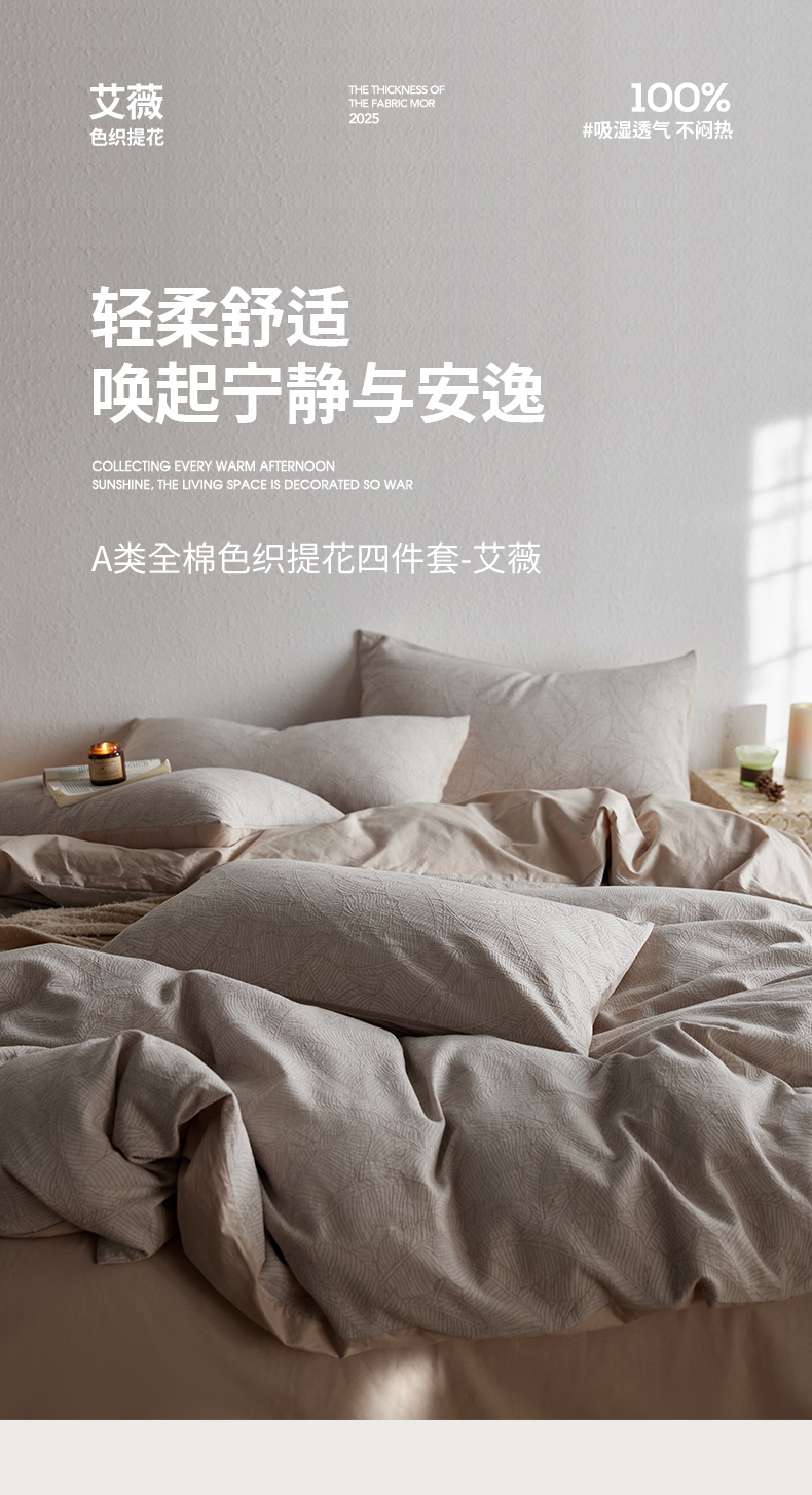 (总)千朵森 2025新款全棉纯棉色织提花磨毛四件套-秋思,秋思—粉漾,秋思—简雅,秋思—栖梦,秋思—叶影,秋思—织眠灰,秋思—织眠棕