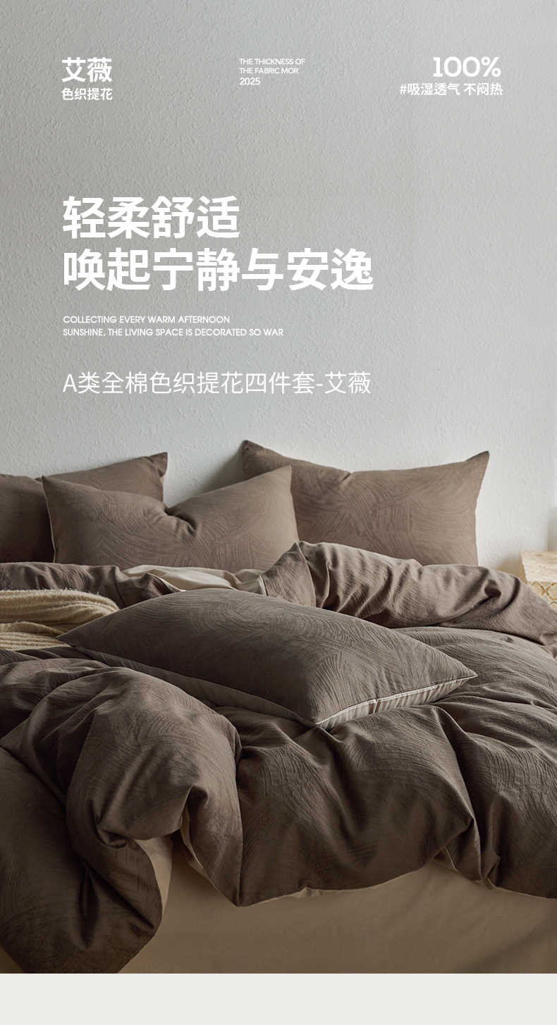 (总)千朵森 2025新款全棉纯棉色织提花磨毛四件套-秋思,秋思—粉漾,秋思—简雅,秋思—栖梦,秋思—叶影,秋思—织眠灰,秋思—织眠棕