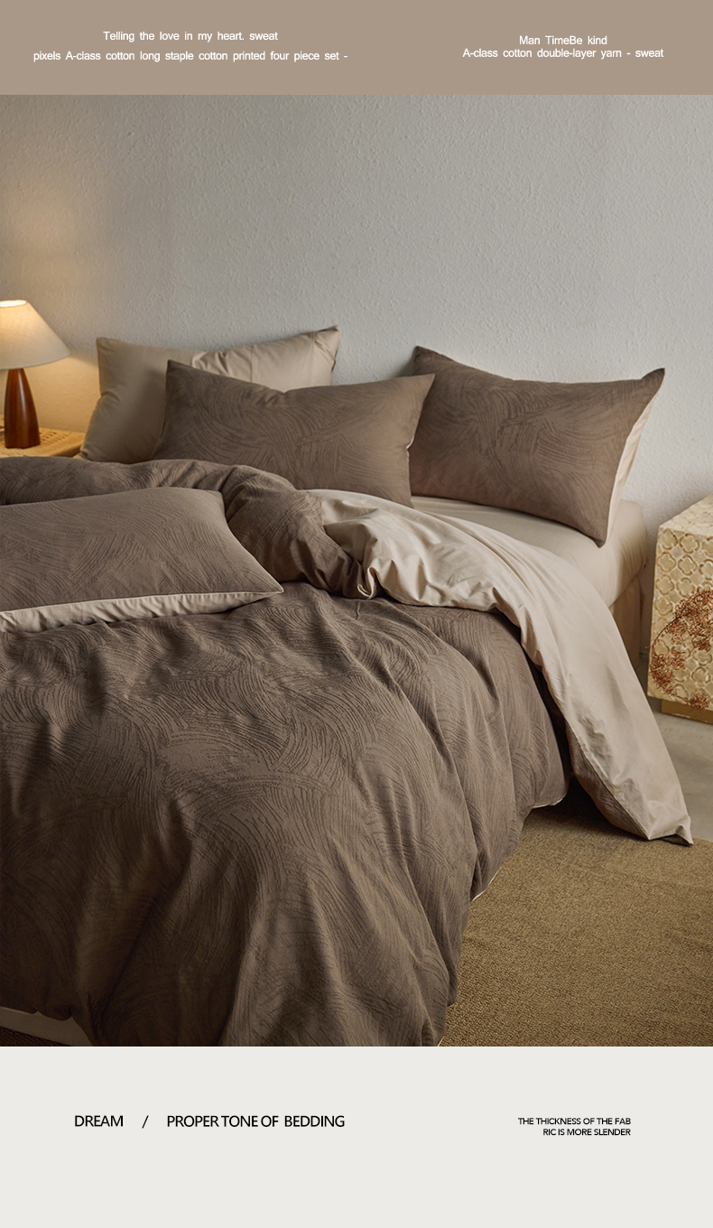 千朵森 2025新款全棉色织提花四季款四件套-艾薇 艾薇-燕麦咖