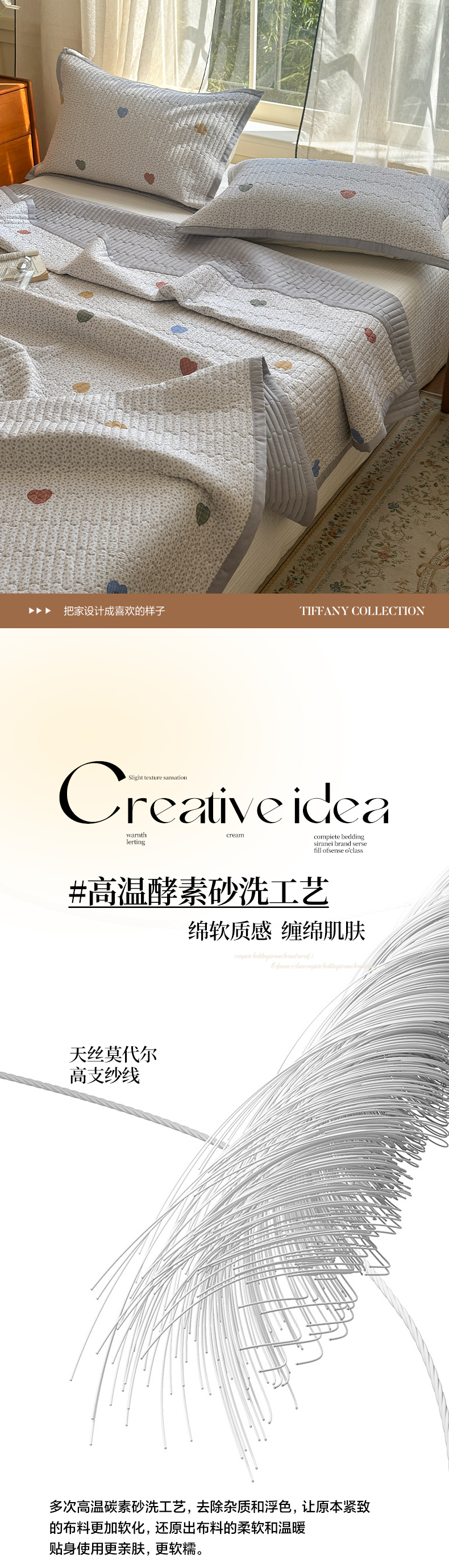• 91家纺网 家纺一手货源 找家纺 美优兰 2025春夏新款双面天丝高温砂洗床盖 多彩甜心