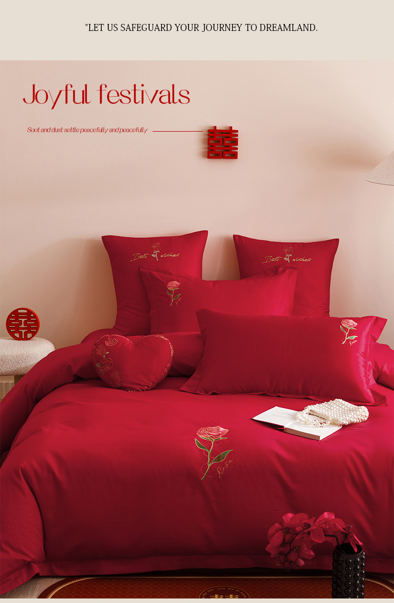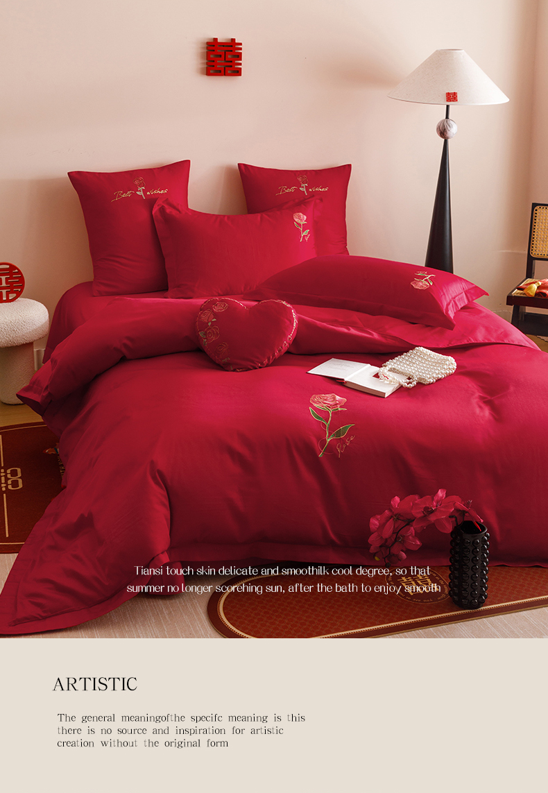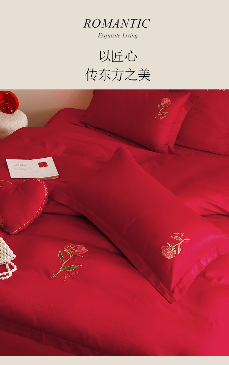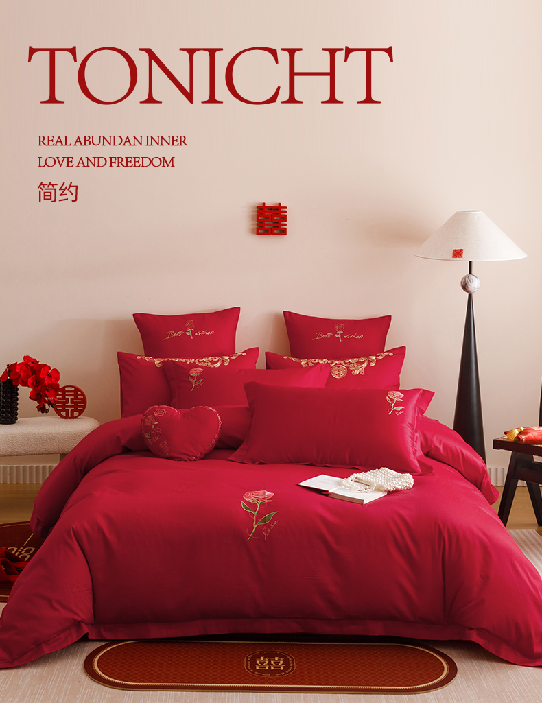 当前位置: 91家纺网 > 商品网购 > 床品套件 > 四件套 > 婚庆四件套 > 东方合美(原:皇家传奇) 2025婚庆小红书纯棉系列 简约