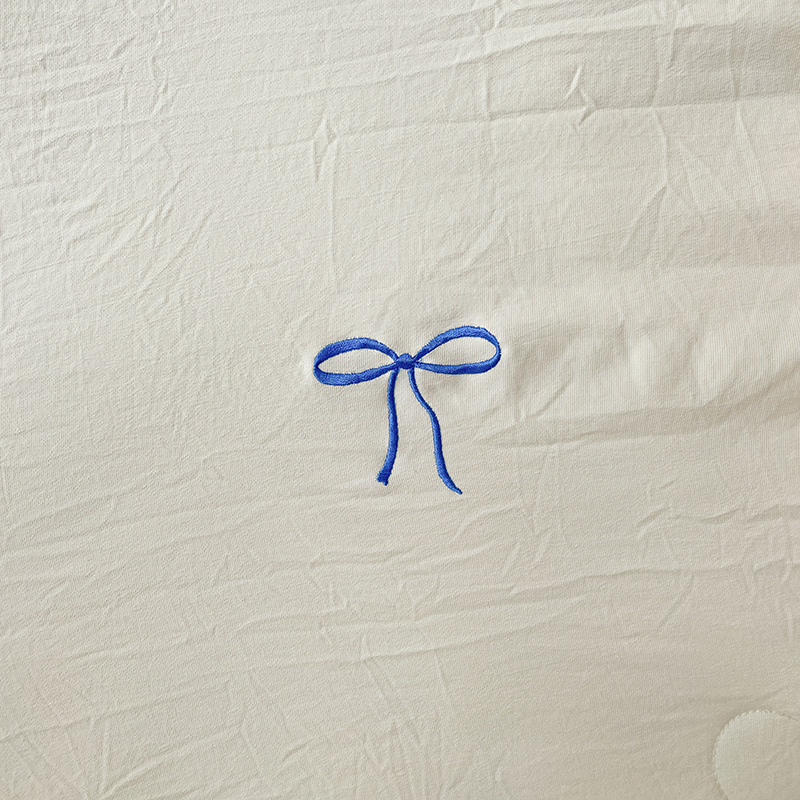 商品名称:2025新款绣花双层纱针织棉夏被床盖四件套全棉夏被四件套 蝴蝶结蓝