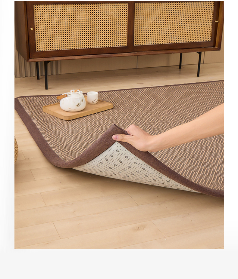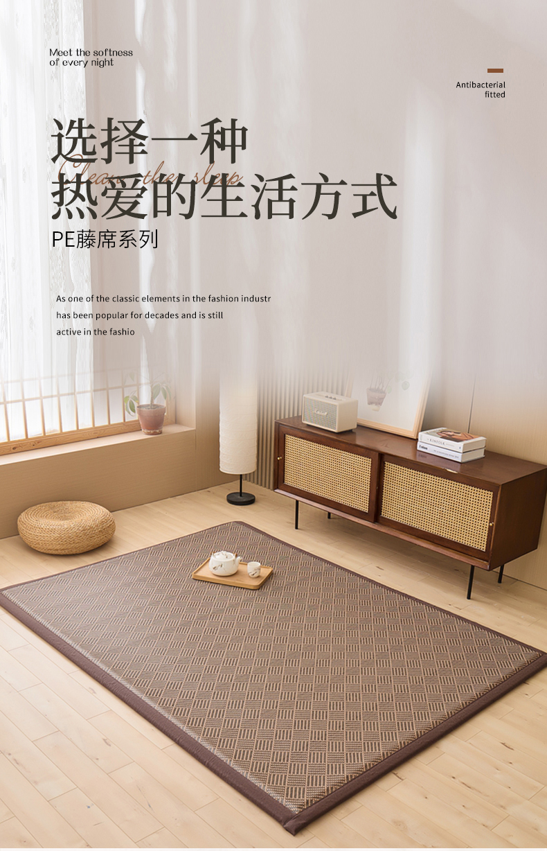 (总)绒艺席业 2025新款PE藤席地垫,饼干花 白玉,饼干花 灰色,饼干花 咖色,饼干花 绿色,灰色,咖色,斜纹编织 白玉,斜纹编织 咖,菱形格-咖色