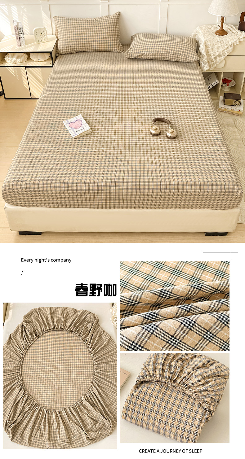 2025新款全棉水洗棉套件-单床笠 春野咖
