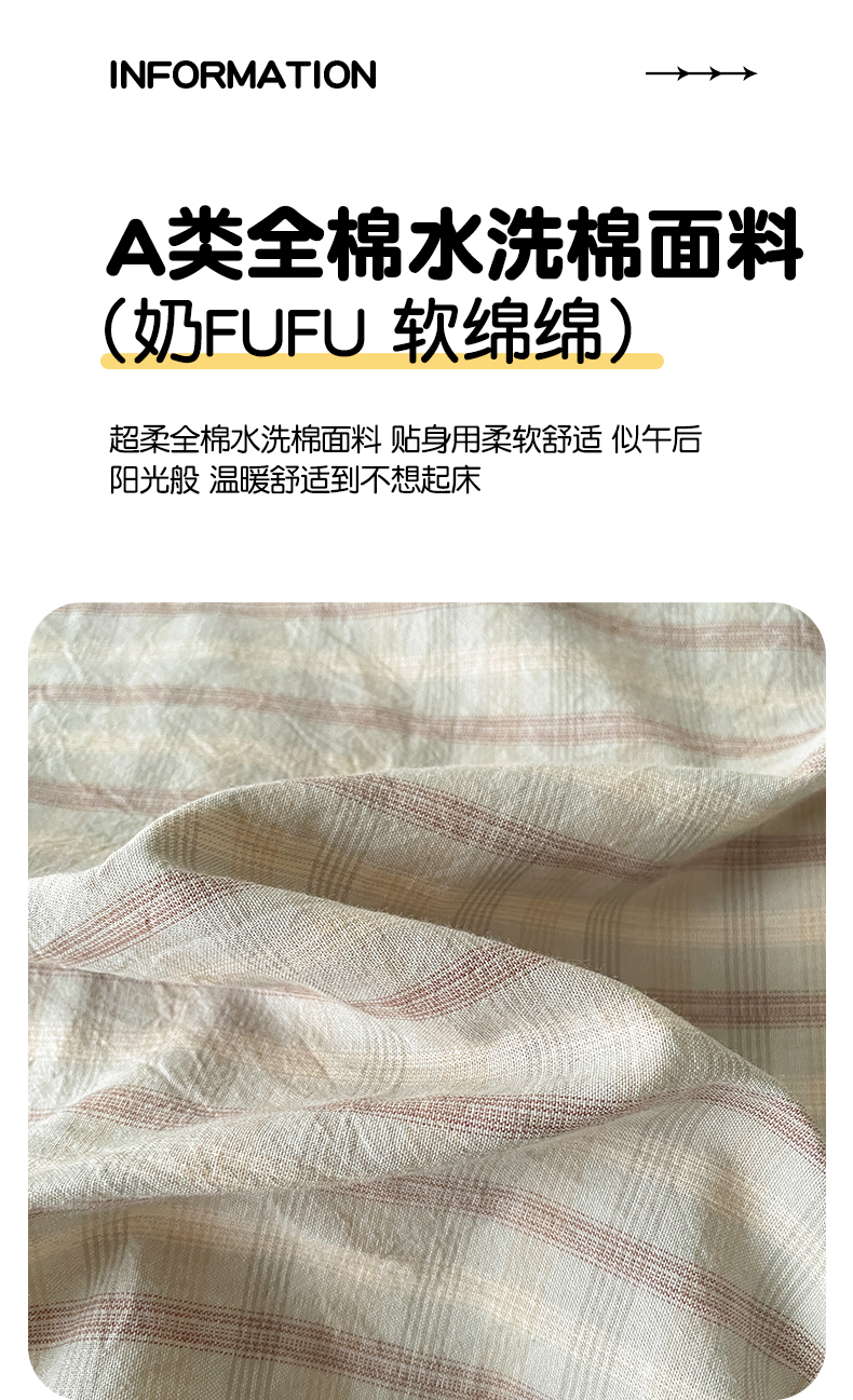 (总)大柏树 2025新款全棉水洗棉套件-床笠四件套,艾莎绿小格,春野咖,春野兰,春野玉,绿紫中格,洛伊粉咖小格,莫妮卡,诺卡,日落红,日落灰,云素红,云岫粉咖,云岫绿咖