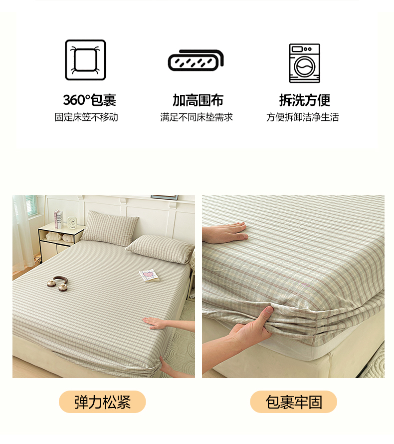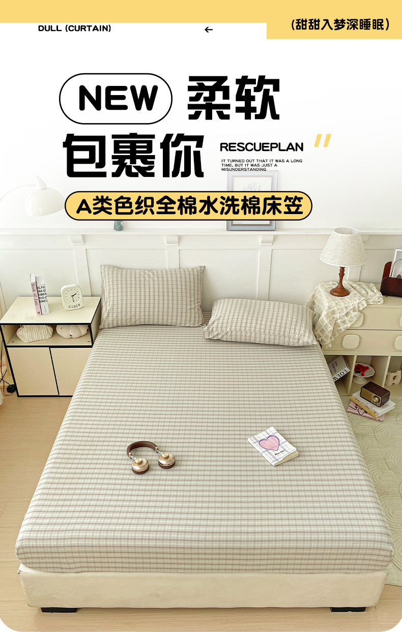 商品名称:2025新款全棉水洗棉套件-单床笠 日落灰